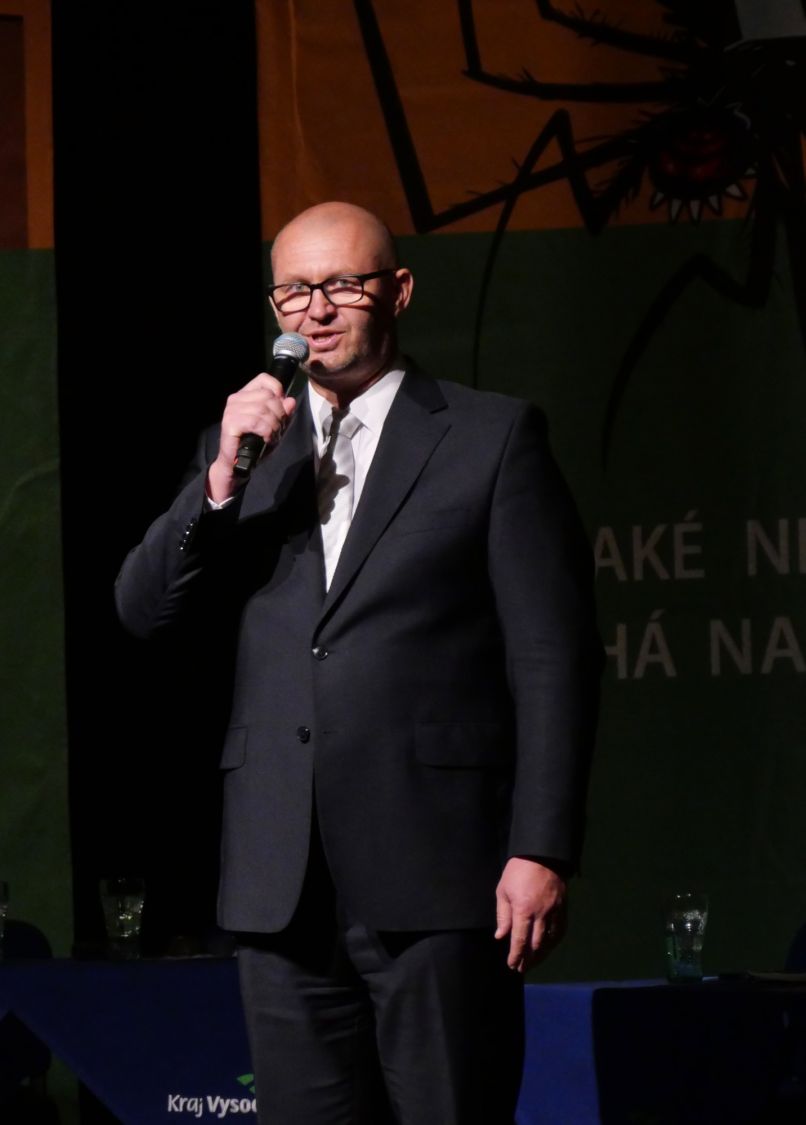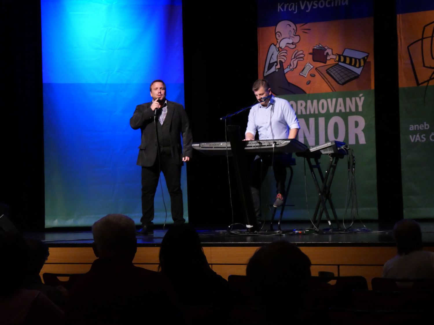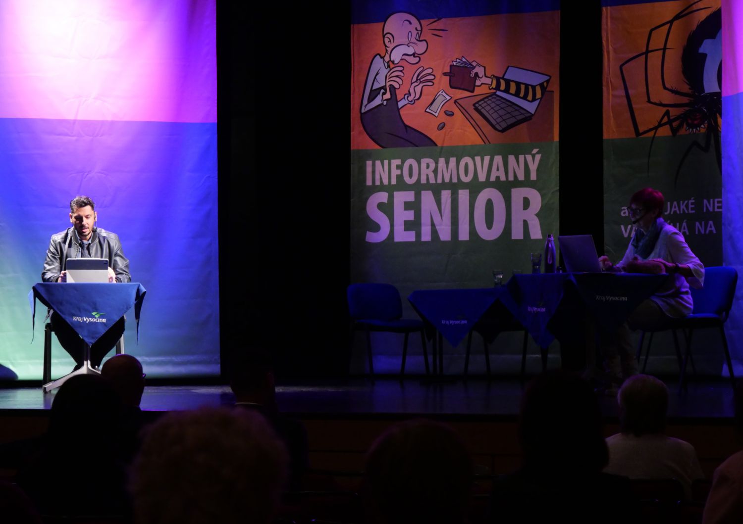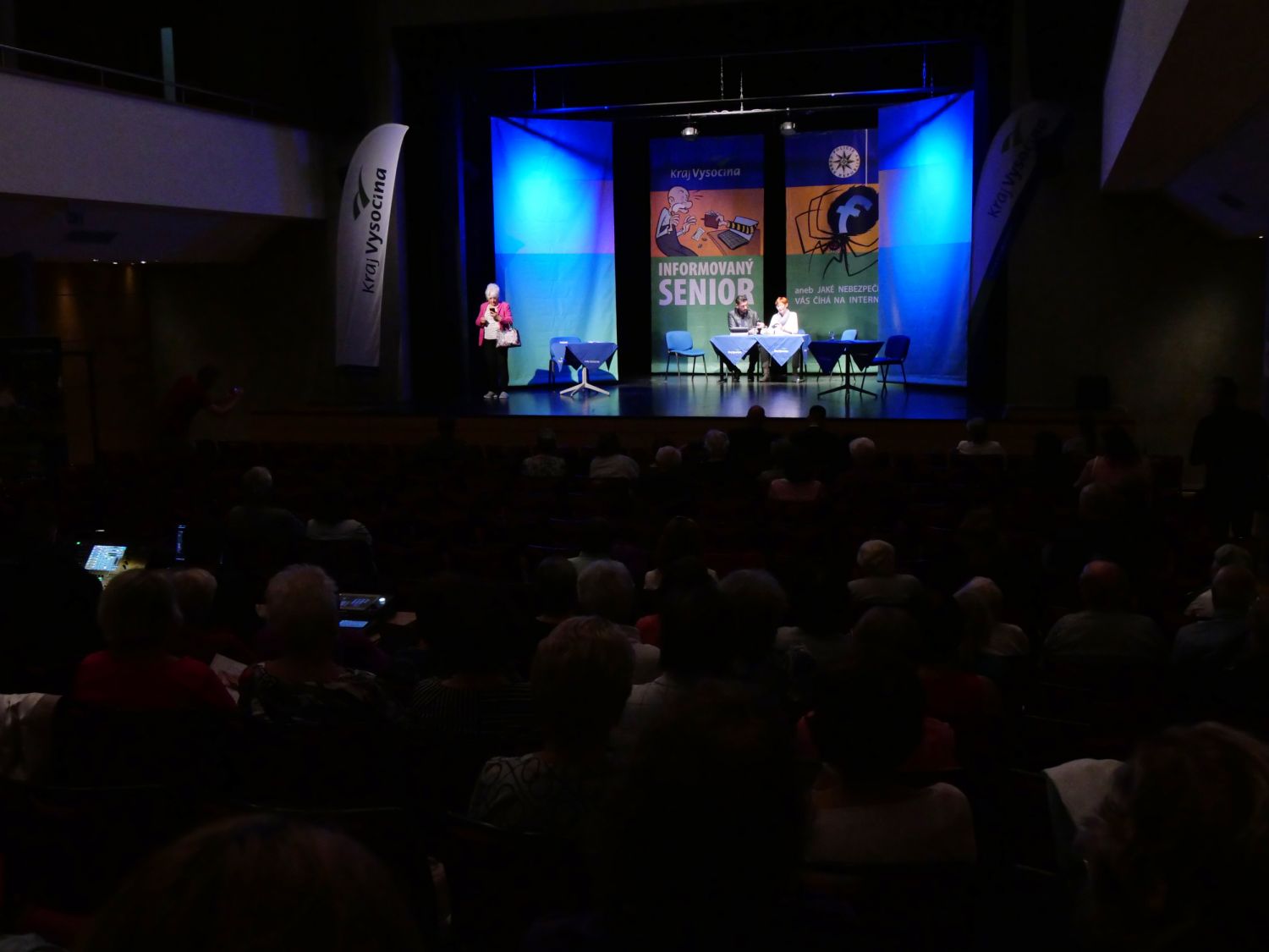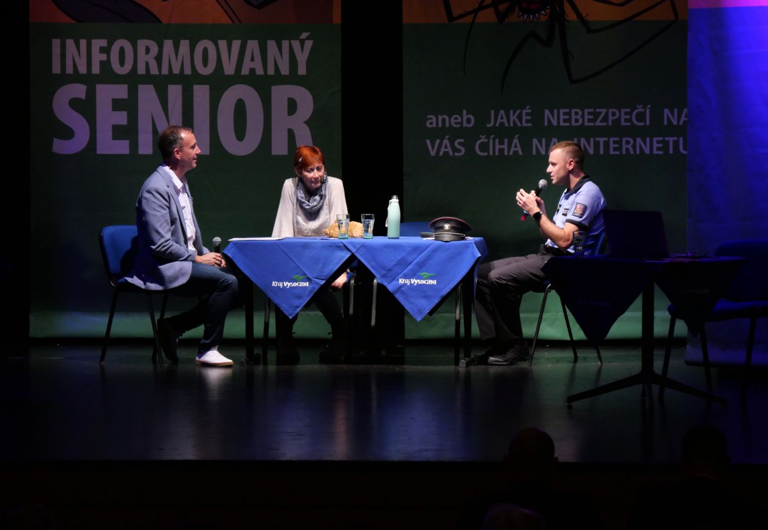 Úvodního slova se chopil moderátor, který na pódiu přivítal starostu města Alexandrose Kaminarase a radního Kraje Vysočina pro sociální věci Jana Tourka. Ti upozornili na některé platformy, kde k podvodům často dochází, vyzdvihli důležitost semináře a poděkovali přítomným za účast na něm.