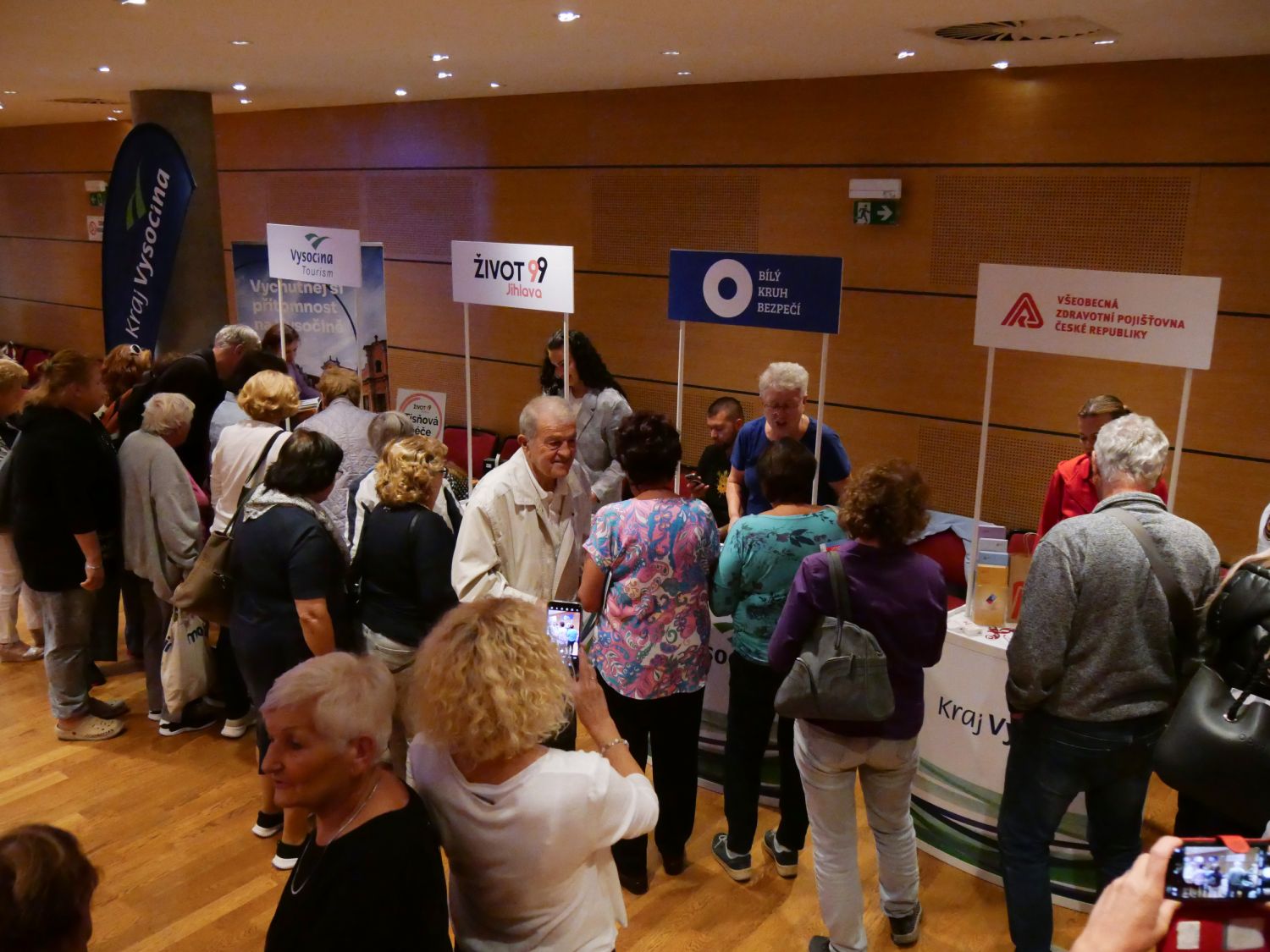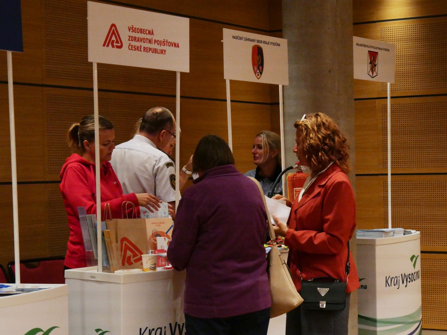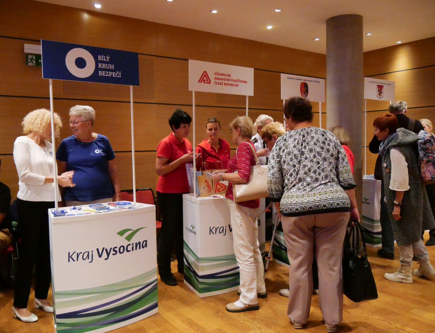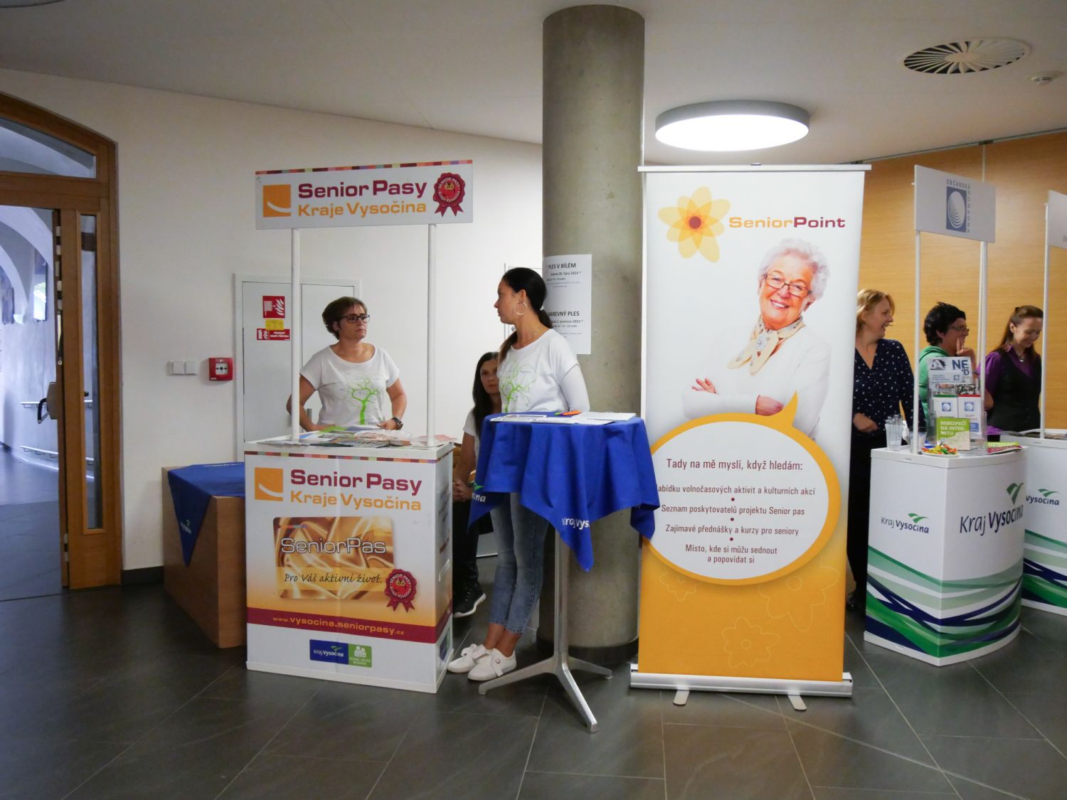 V dvacetiminutové pauze mohli účastníci semináře navštívit jednotlivé stánky s propagačními materiály. Lidem se představily Domov pro seniory VM, Sociální služby města VM, Senior pasy Kraje Vysočina, Občanská poradna, Krajské ředitelství policie Kraje Vysočina, Hasičský záchranný sbor Kraje Vysočina, Všeobecná zdravotní pojišťovna ČR, Bílý kruh bezpečí, Život 99 Jihlava, Vysočina Tourism a Úřad práce ČR.