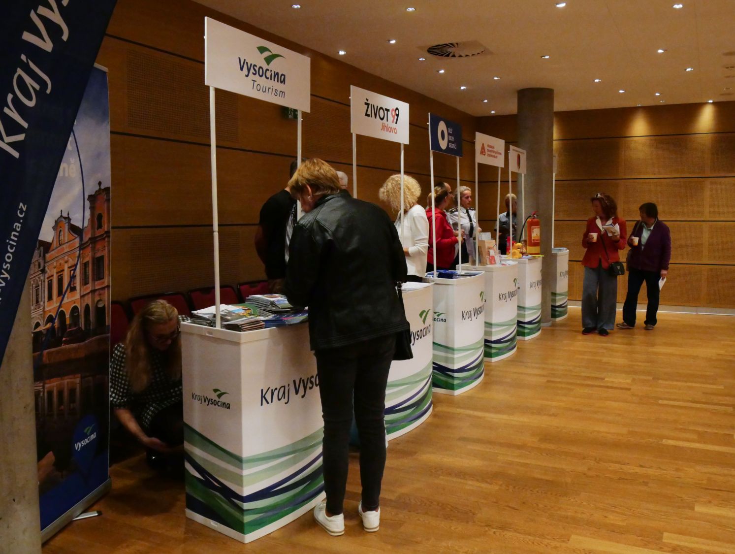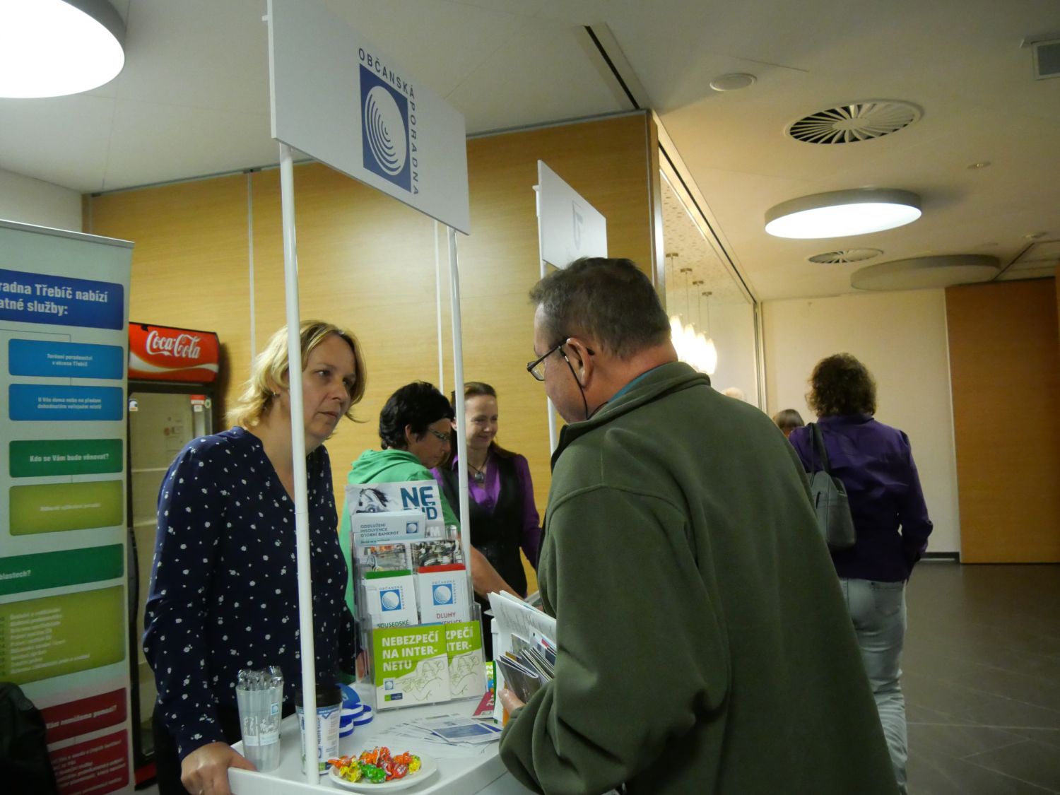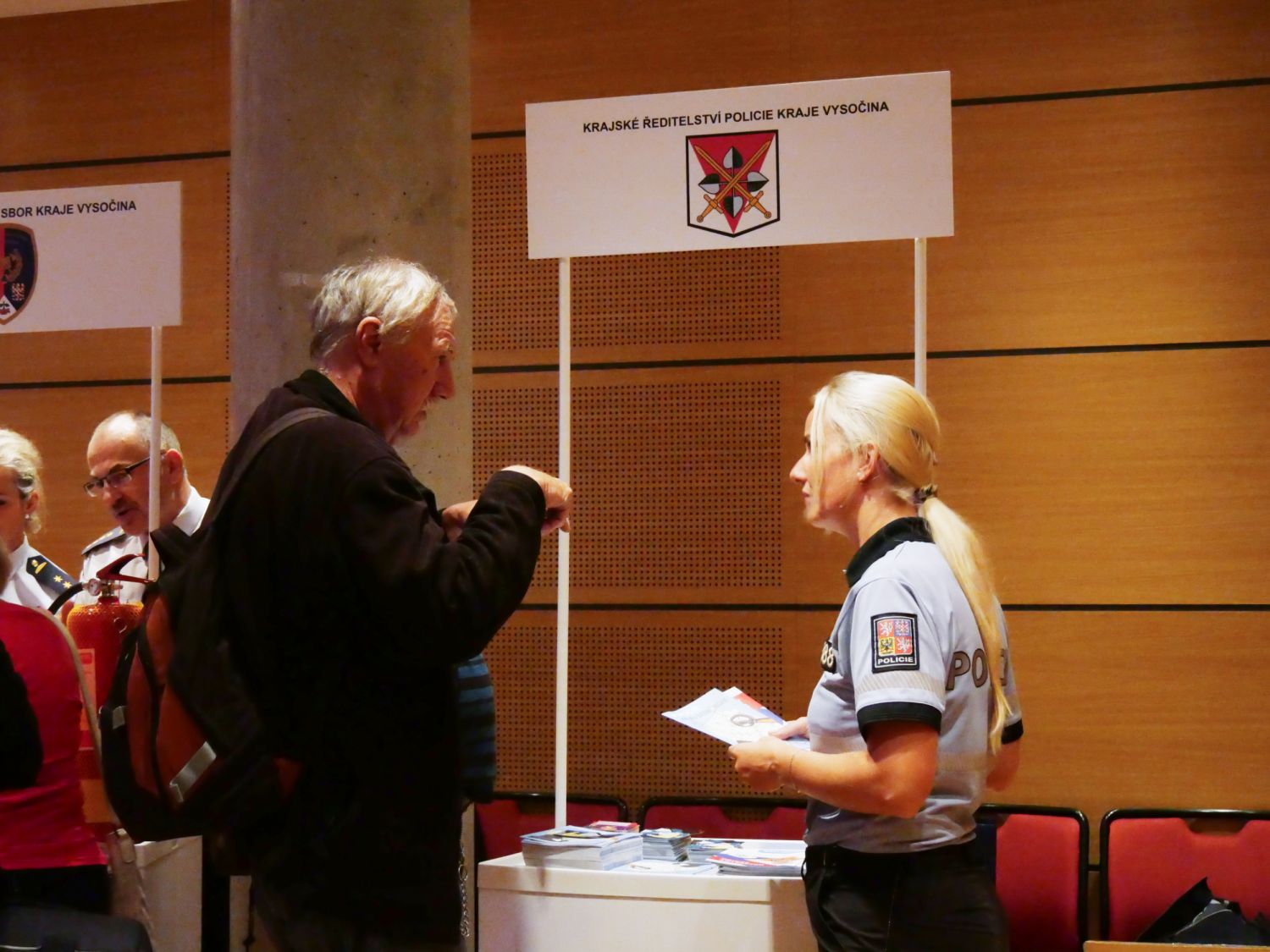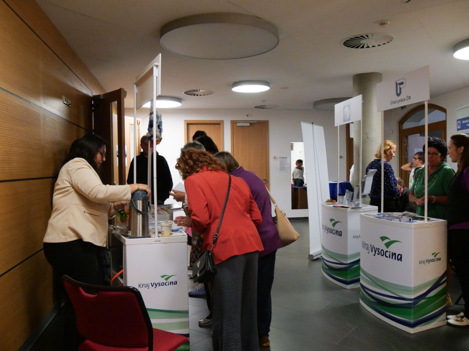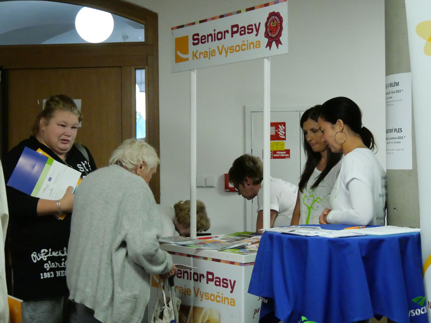V dvacetiminutové pauze mohli účastníci semináře navštívit jednotlivé stánky s propagačními materiály. Lidem se představily Domov pro seniory VM, Sociální služby města VM, Senior pasy Kraje Vysočina, Občanská poradna, Krajské ředitelství policie Kraje Vysočina, Hasičský záchranný sbor Kraje Vysočina, Všeobecná zdravotní pojišťovna ČR, Bílý kruh bezpečí, Život 99 Jihlava, Vysočina Tourism a Úřad práce ČR.