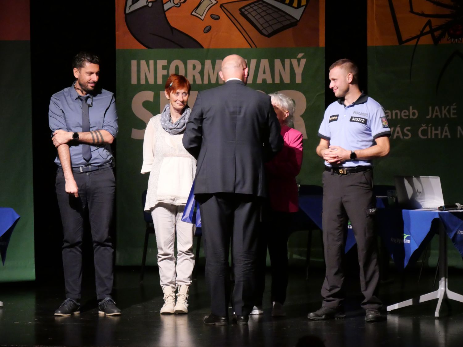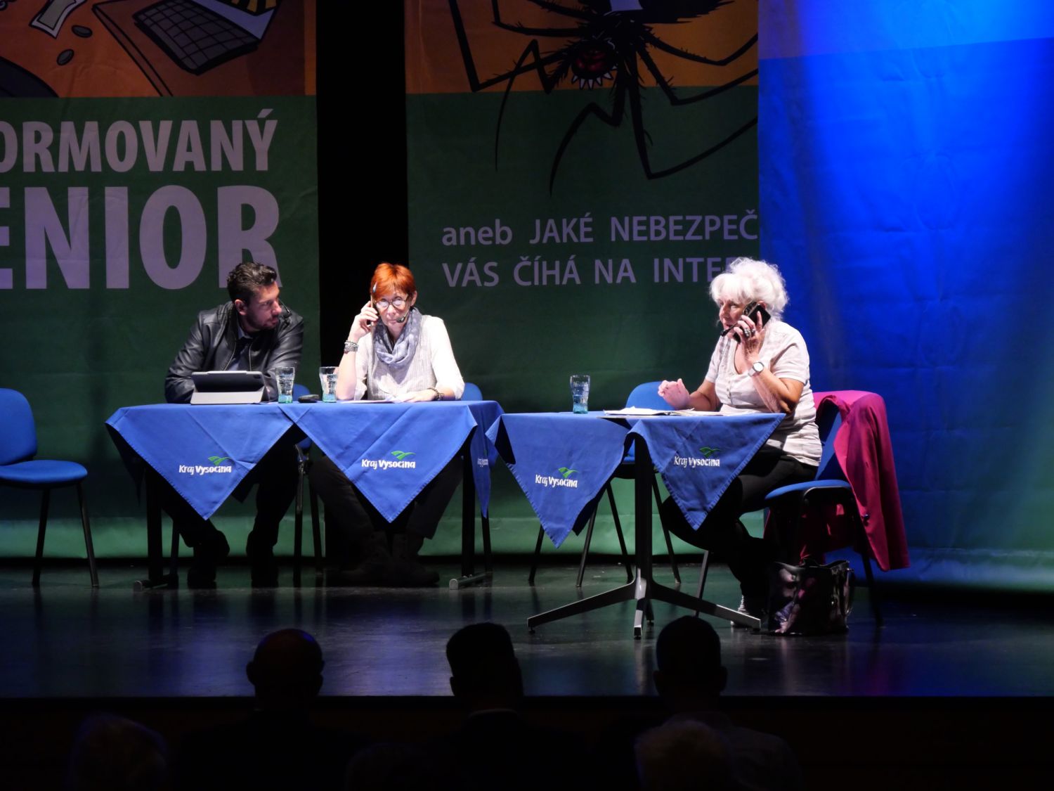 Připraveny byly tři vtipné divadelní scénky, které ukazovaly konkrétní případy podvodů jako neověřené „investice" do Bitcoinů, seznámení přes internet s cizincem a pravidelné zasílání peněz dotyčnému nebo falešné telefonáty z banky.