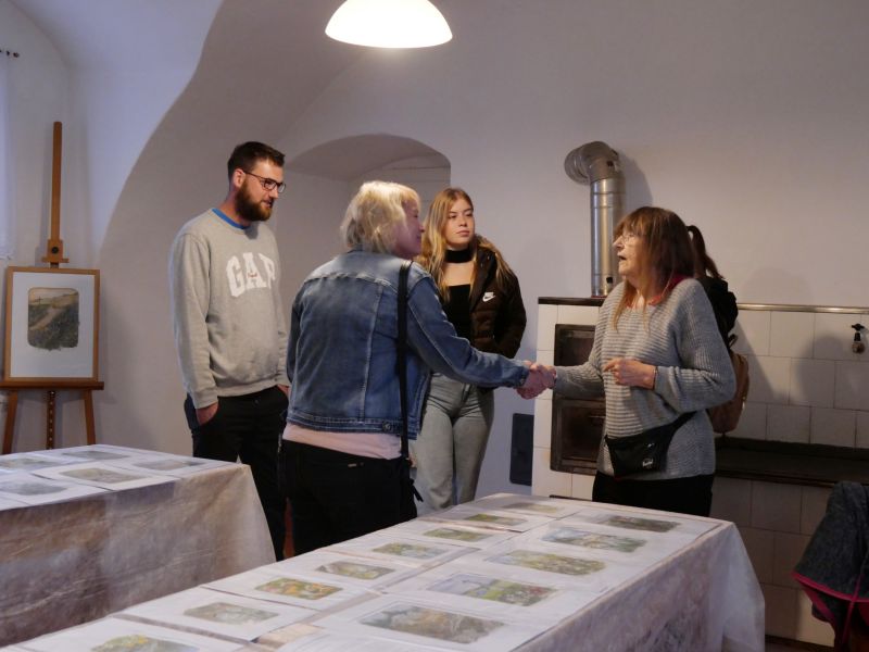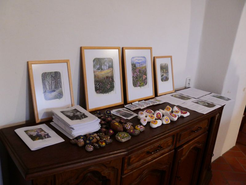 Sál fary v Budišově zaplnila svými poetickými kresbami malířka, grafička a ilustrátorka Lidmila Anna Dohnalová. Návštěvníci si mohli její obrázky zakoupit, mnozí si odnášeli třeba i malovaný kamínek pro štěstí, obrázky s příběhem nebo semínka lučního kvítí v malovaném obalu.