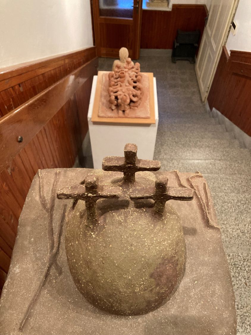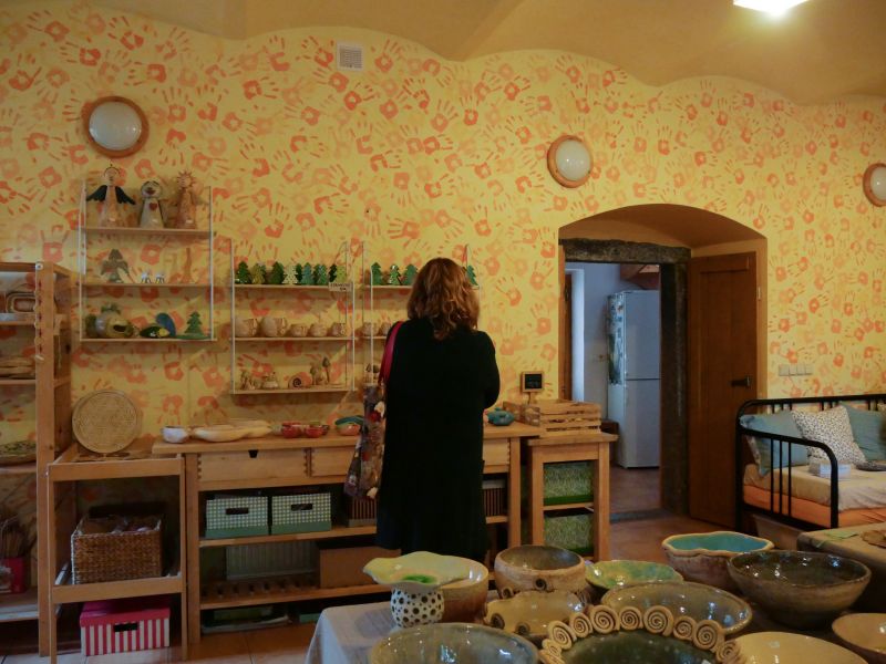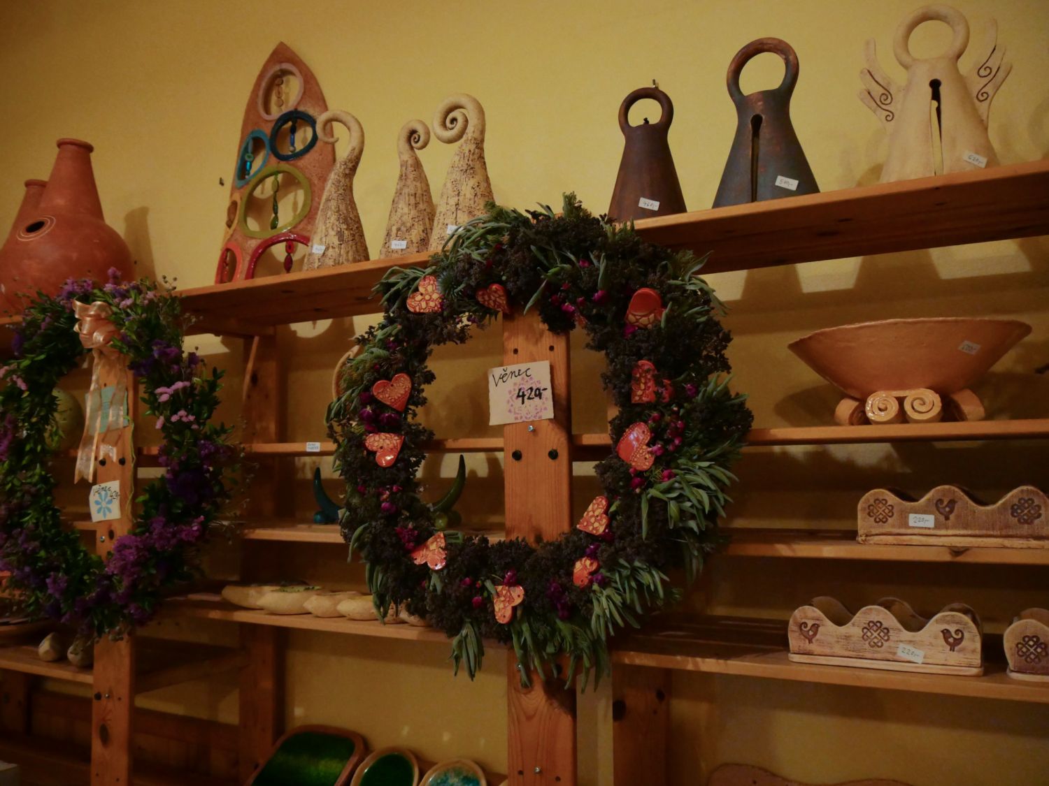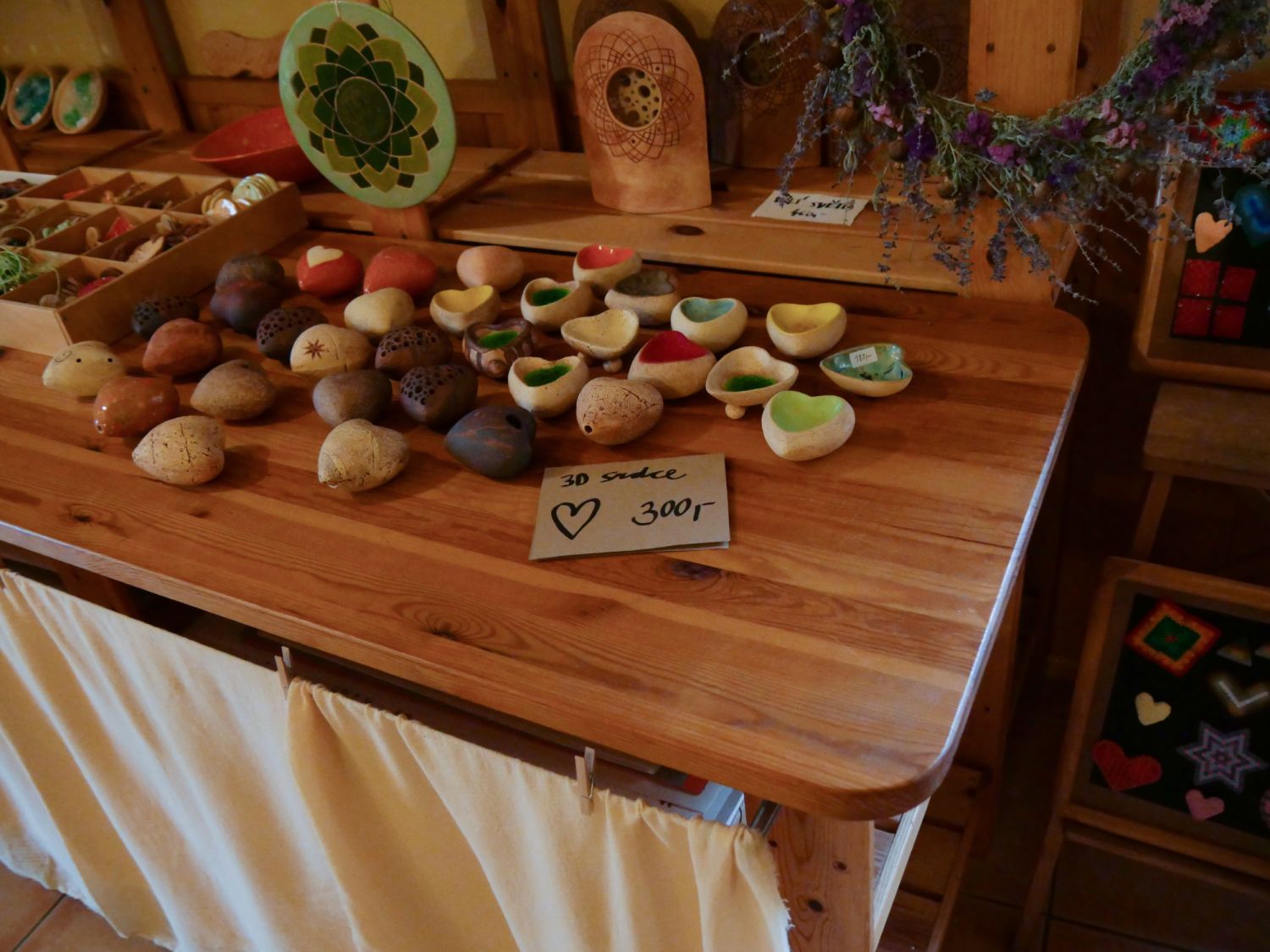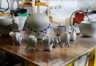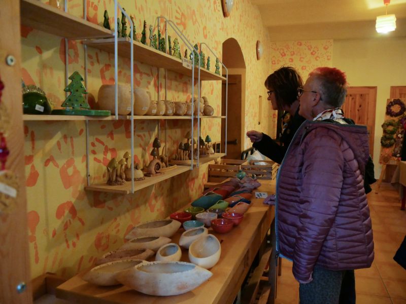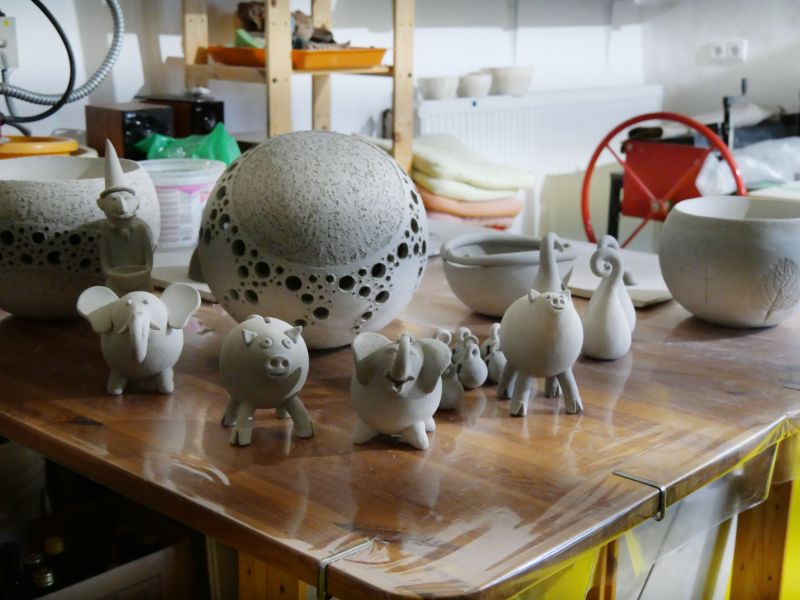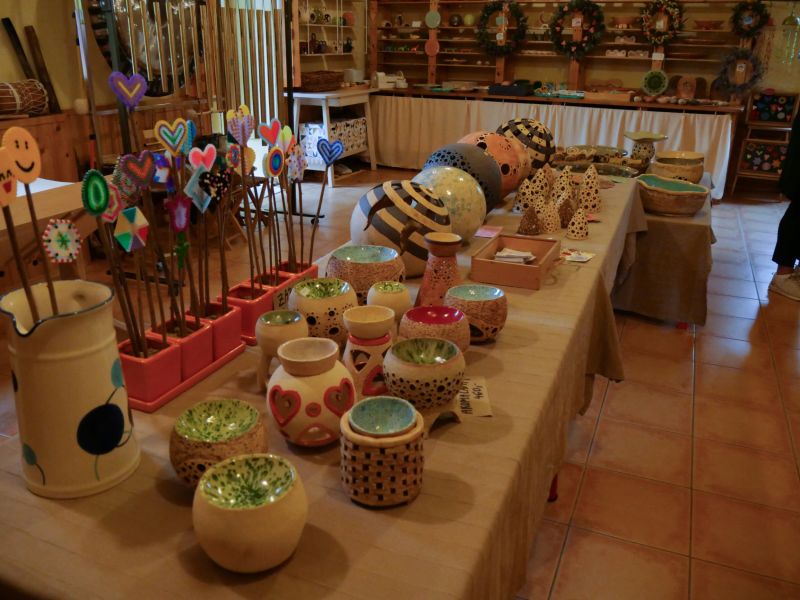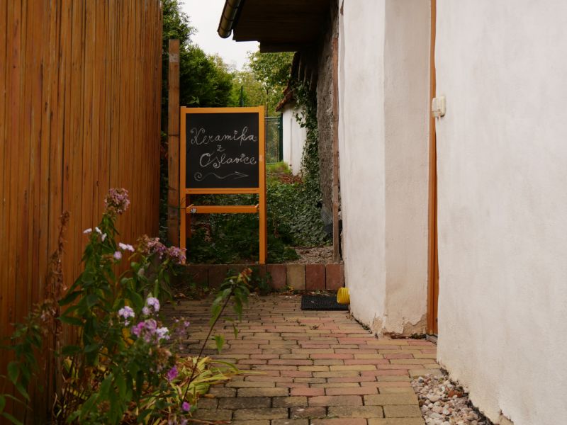 Keramická dílna v Oslavici nabízela práce manželů Hikešových, a to nejen keramické plastiky na zahradu, ale třeba i užitnou nebo dekorační keramiku zdobenou korálky a podobně.
