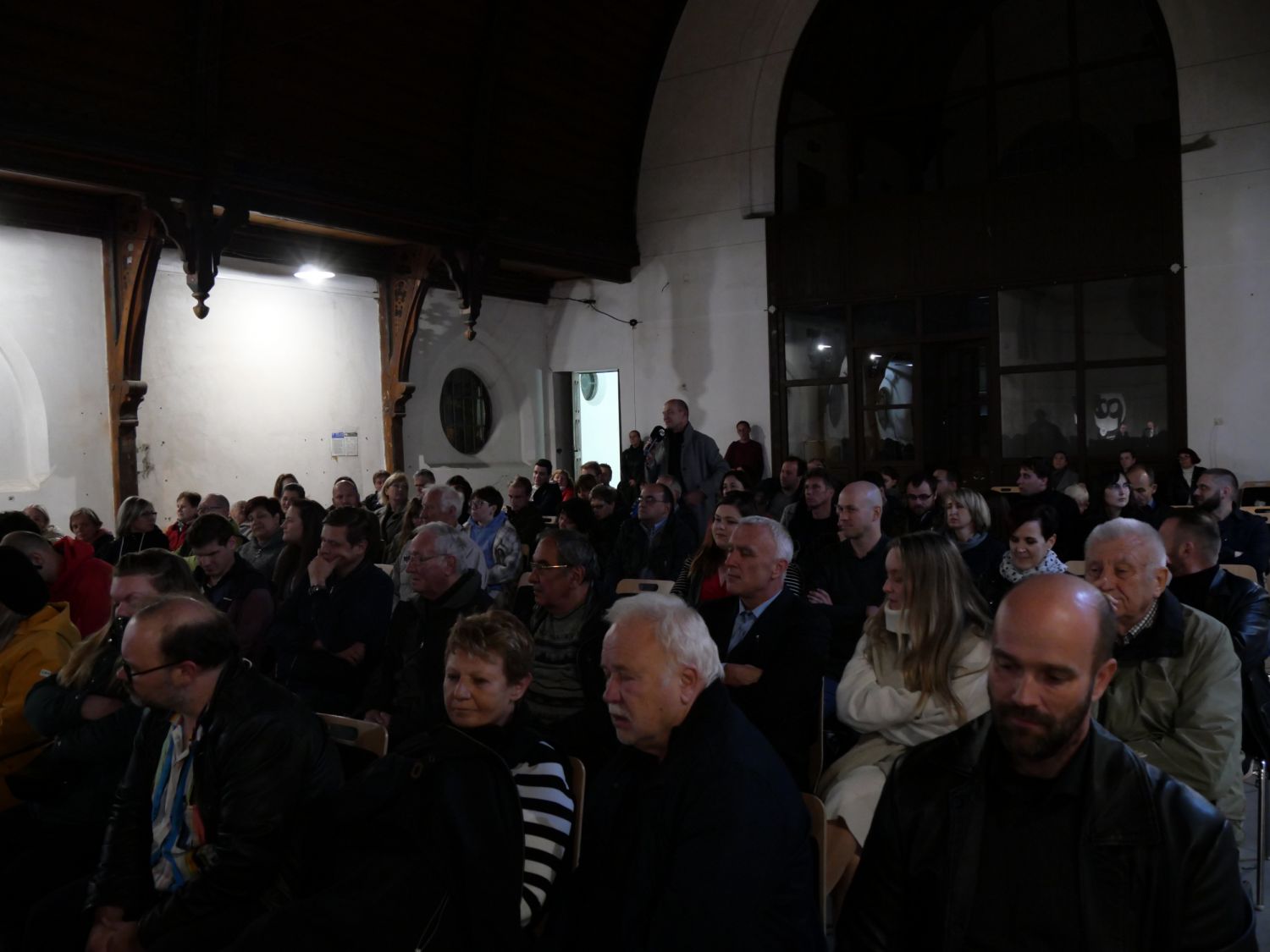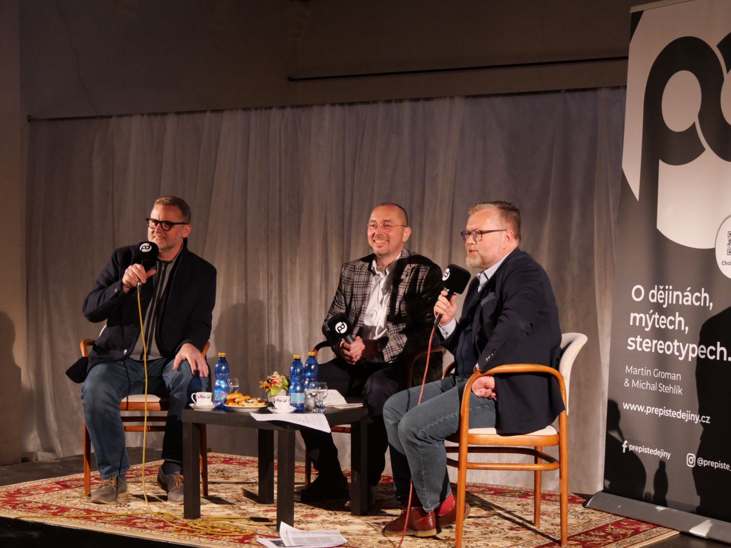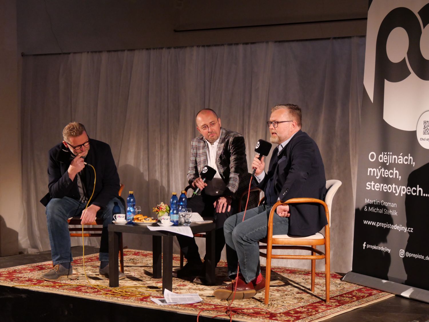Šlo o druhou veřejnou akci, která ve vyklizené synagoze během krátké doby proběhla. Její návštěvníky neodradila ani zima, ani velmi skromné až strohé zázemí, jež zatím synagoga nabízí. Setkání s tvůrci podcastu, historikem a slovakistou Michalem Stehlíkem a novinářem a publicistou Martinem Gromanem, si nenechaly ujít desítky lidí. Sjeli se i zájemci ze širokého okolí. Všichni si se zájmem vyslechli povídání o židovské historii Velkého Meziříčí, která byla tématem populárního podcastu. Jeho autoři si tentokrát přizvali do debaty hosta Alberta Kubištu a společně posluchačům nastínili vývoj židovských dějin ve městě od počátků až do smutného konce ve dvacátém století. Zazněly informace o významu židovské obce, budování ghetta, rozdílném přijímání židů měšťany a vrchností, hilsneriádě, výtržnostech ve městě, významných rodácích či třeba vzpomínka Antonie Wachtlové z Velkého Meziříčí na transporty v roce 1942.