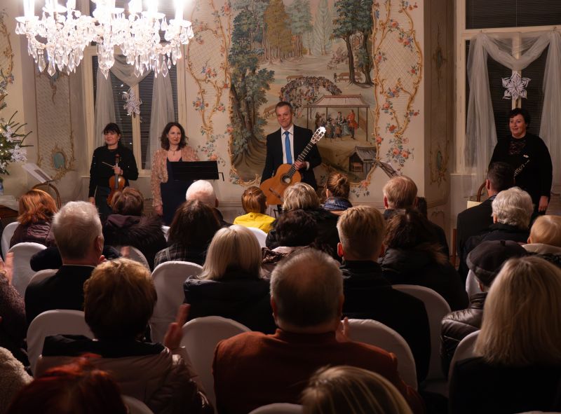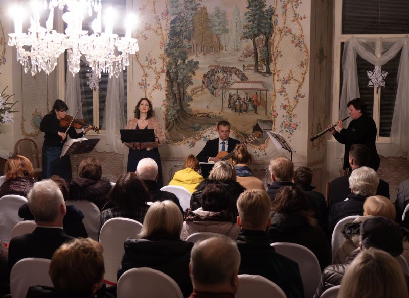 V nedělní podvečer se na velkomeziříčském zámku konal Zámecký adventní koncert. Hostem byla čtveřice umělců ve složení Olga Vit Krumpholzová (soprán), Dagmar Virtová (housle), Gabriela Plachá (hoboj) a Petr Štěpán (kytara). Jejich uskupení se nazývá Musica Festiva.