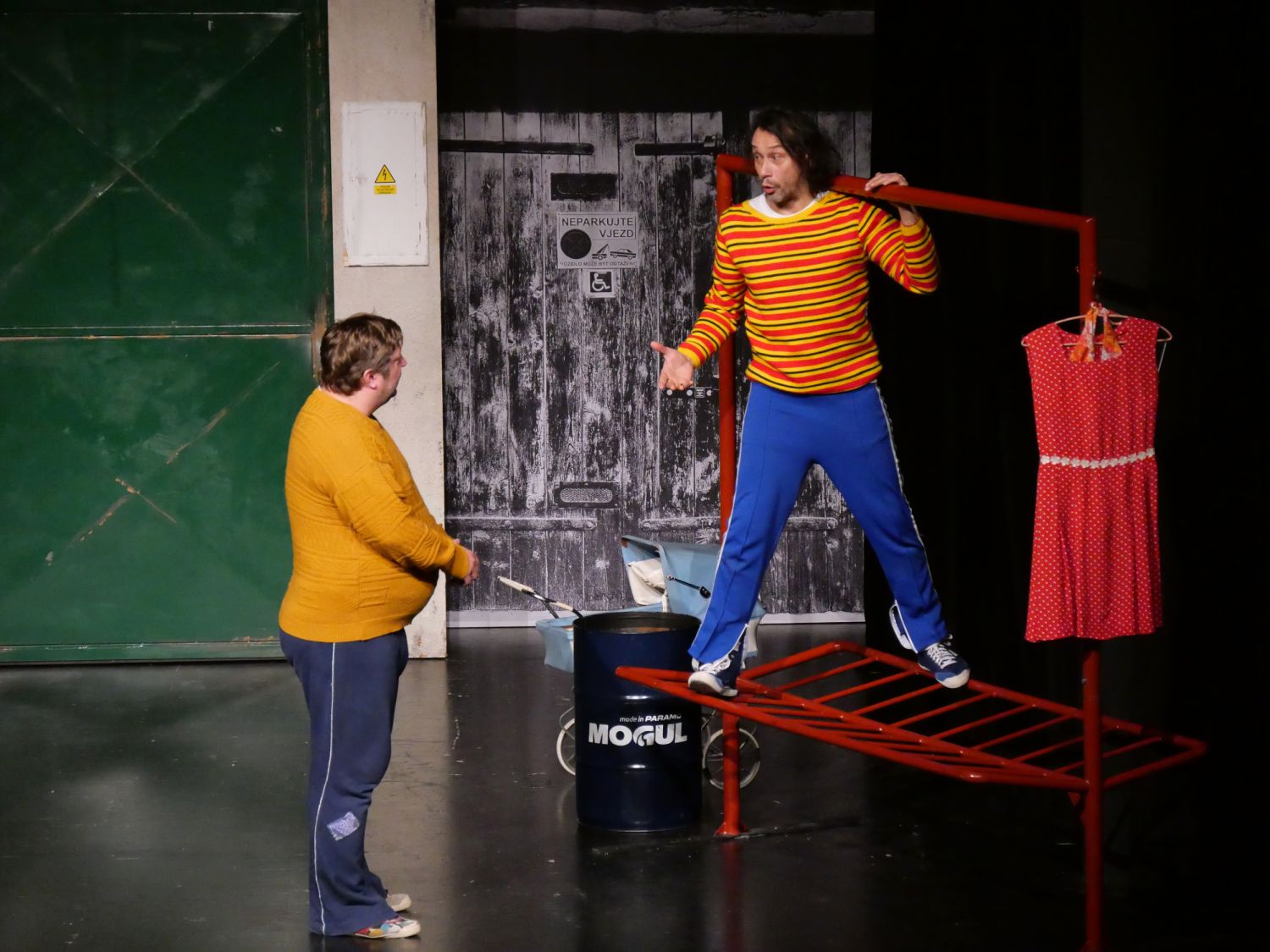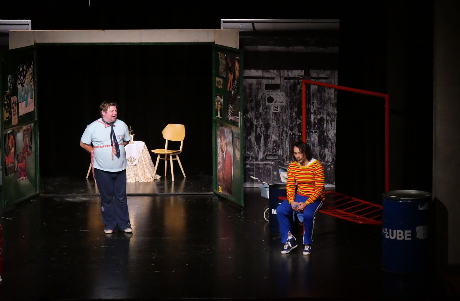 V představení nechyběla mladá láska ke kamarádce ze sídliště, která však nebyla opětovaná. Liška s Isteníkem se pravidelně zmiňovali o známých místech, jak oni říkají „v Mezu", o hezkých studentkách z hotelovky, které se opalují nahoře bez na střeše, či o letní koupačce „na Lalůvce".