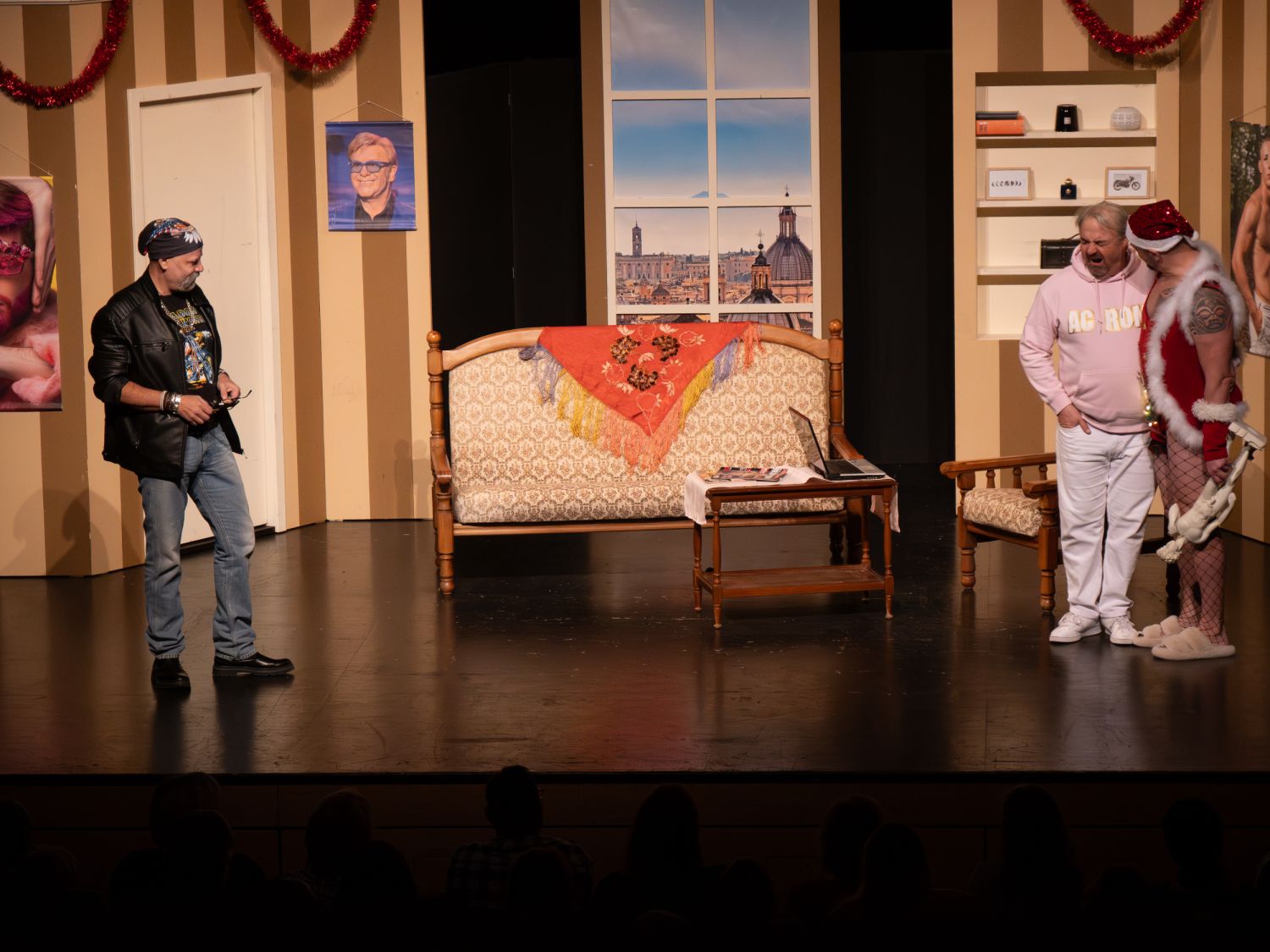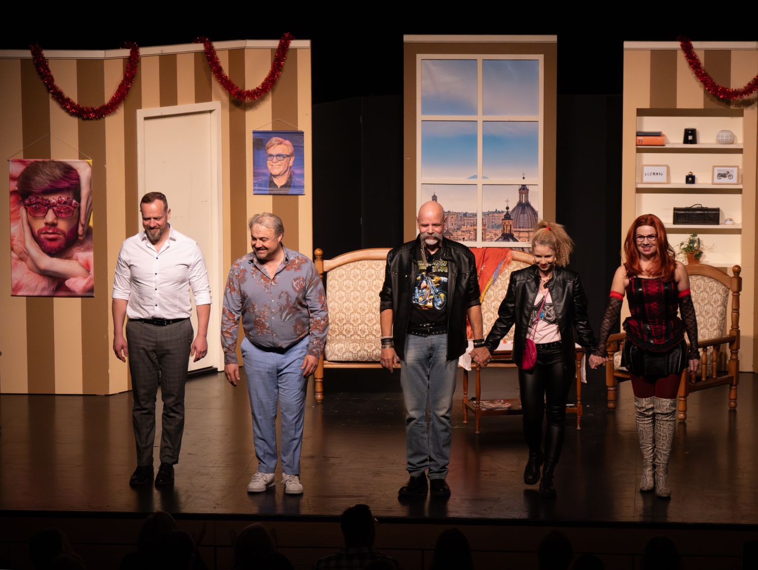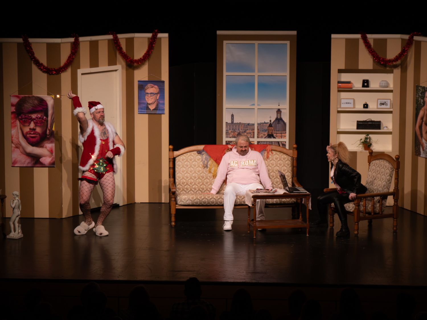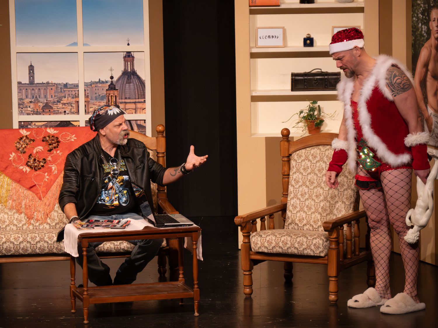 V peprné groteskní komedii Na Vánoce budu gay, kterou včera zhlédli diváci v Jupiter clubu, se v hlavních mužských rolích předvedli Martin Zounar a Filip Blažek (Peppino).