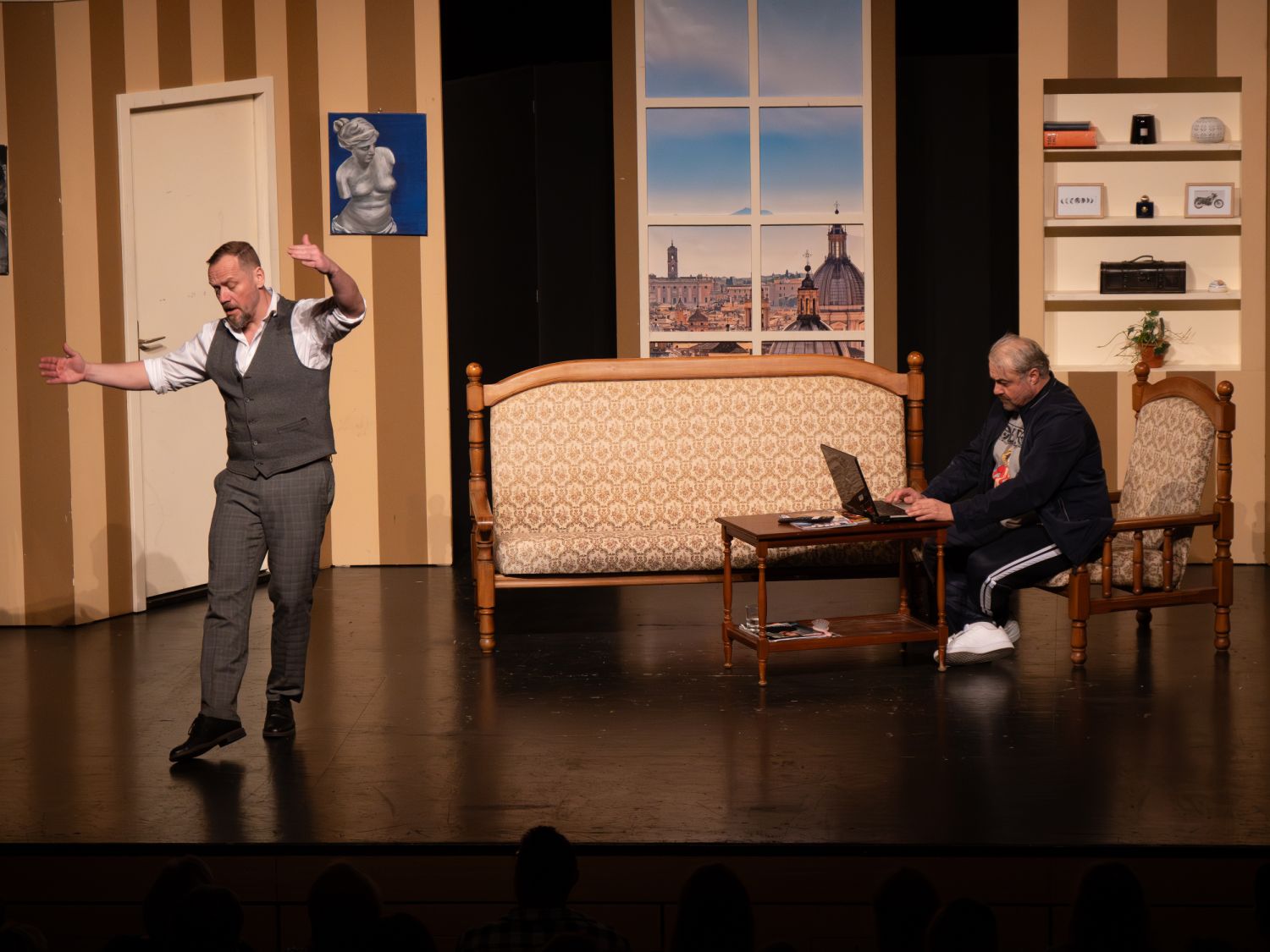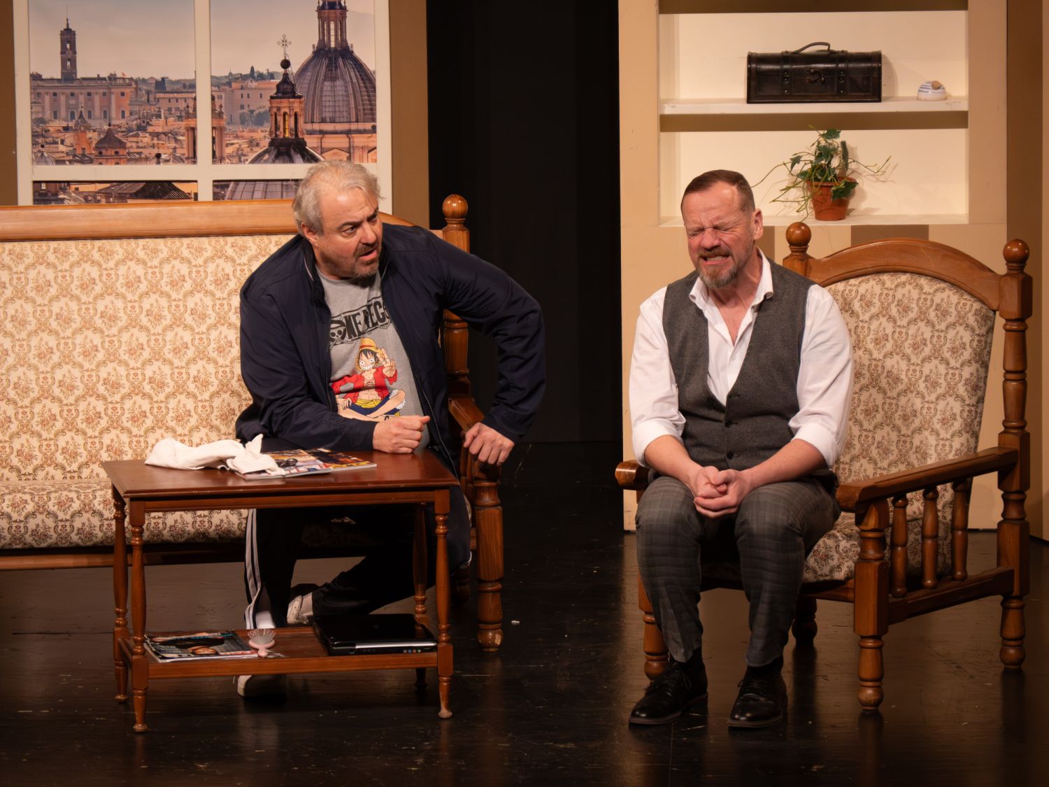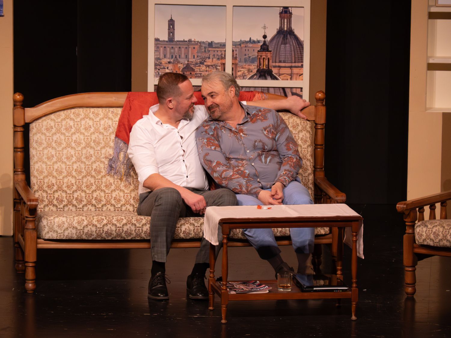 V peprné groteskní komedii Na Vánoce budu gay, kterou včera zhlédli diváci v Jupiter clubu, se v hlavních mužských rolích předvedli Martin Zounar a Filip Blažek (Peppino).