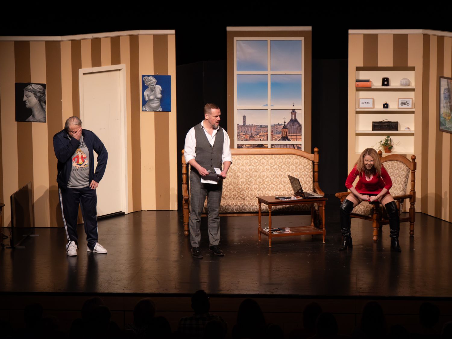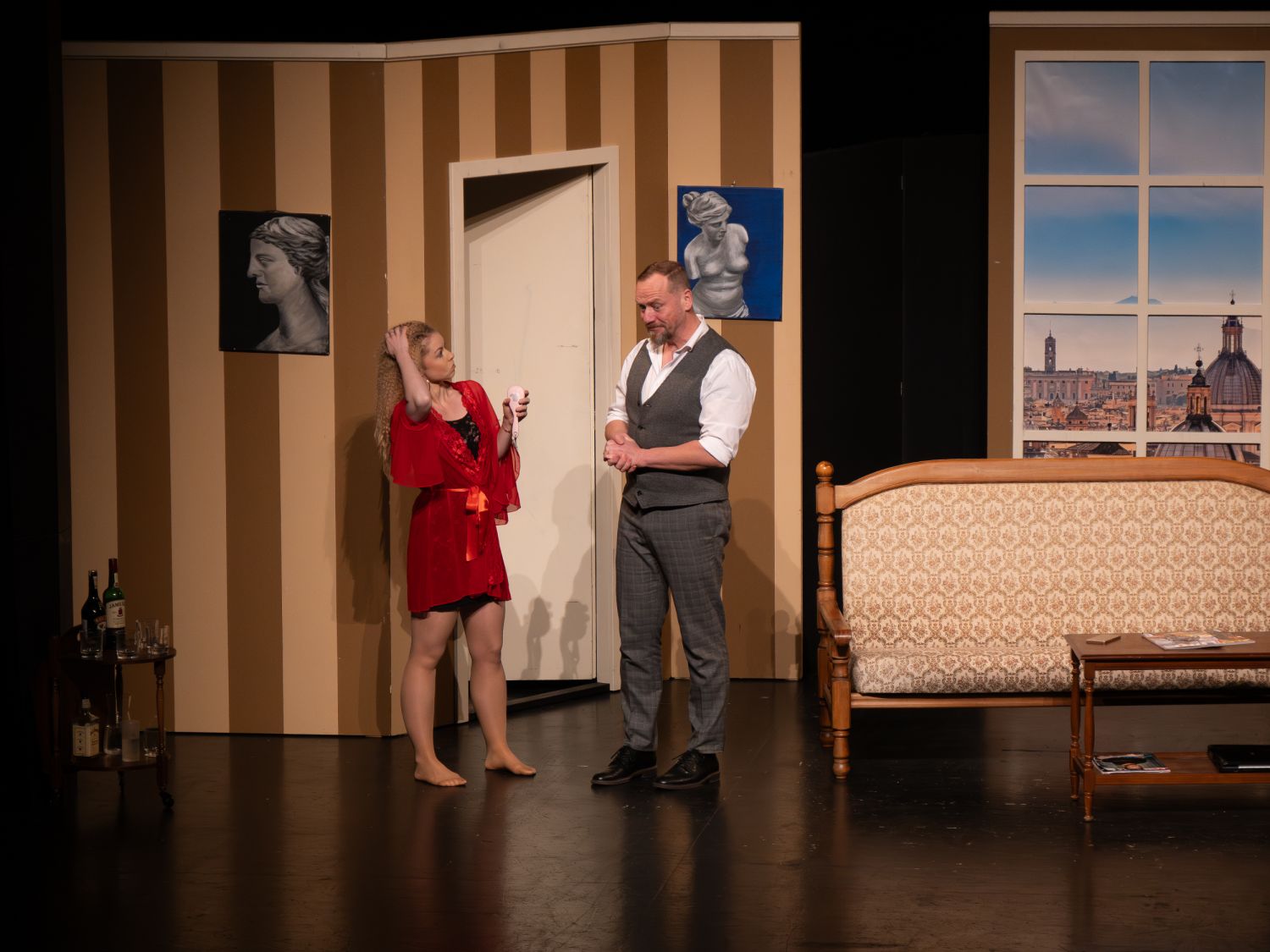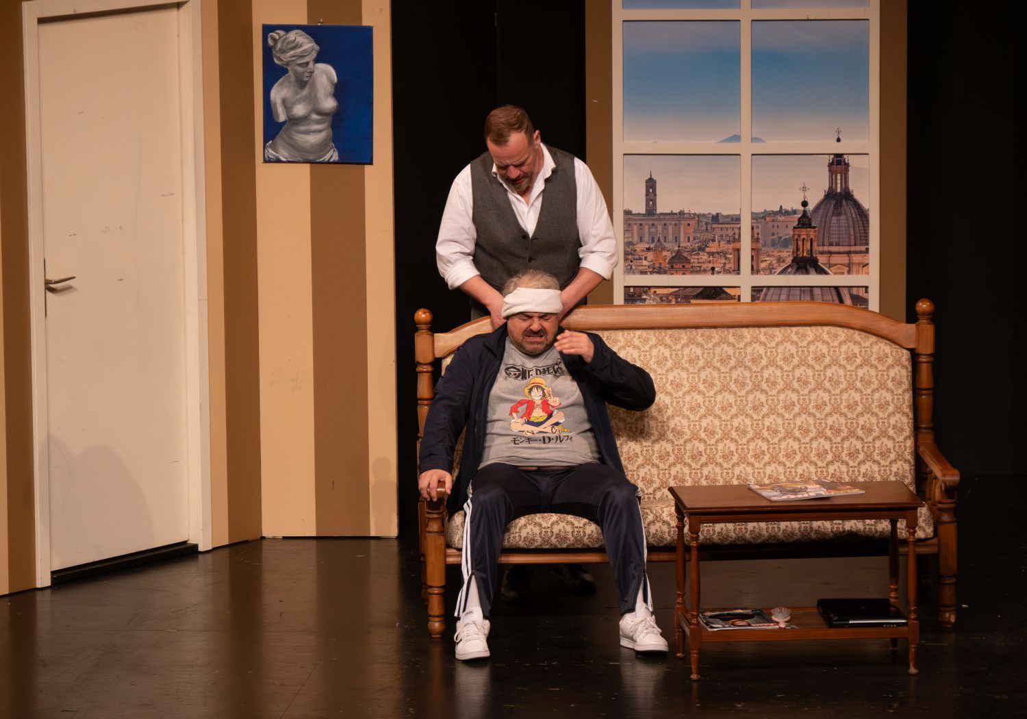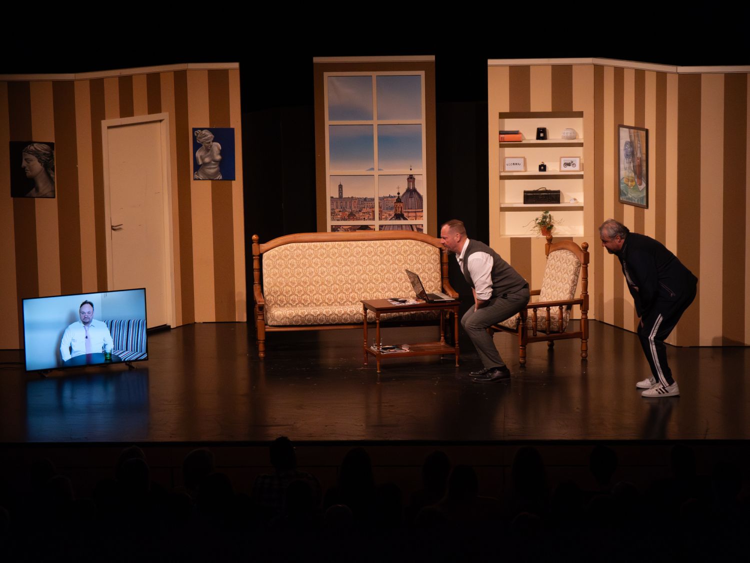 V peprné groteskní komedii Na Vánoce budu gay, kterou včera zhlédli diváci v Jupiter clubu, se v hlavních mužských rolích předvedli Martin Zounar a Filip Blažek (Peppino).