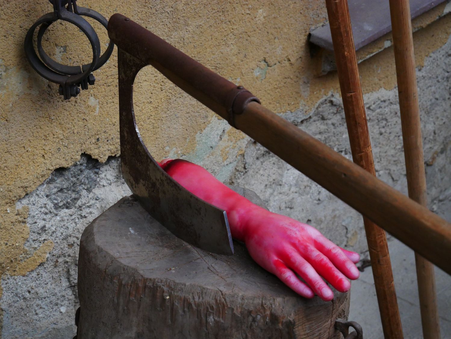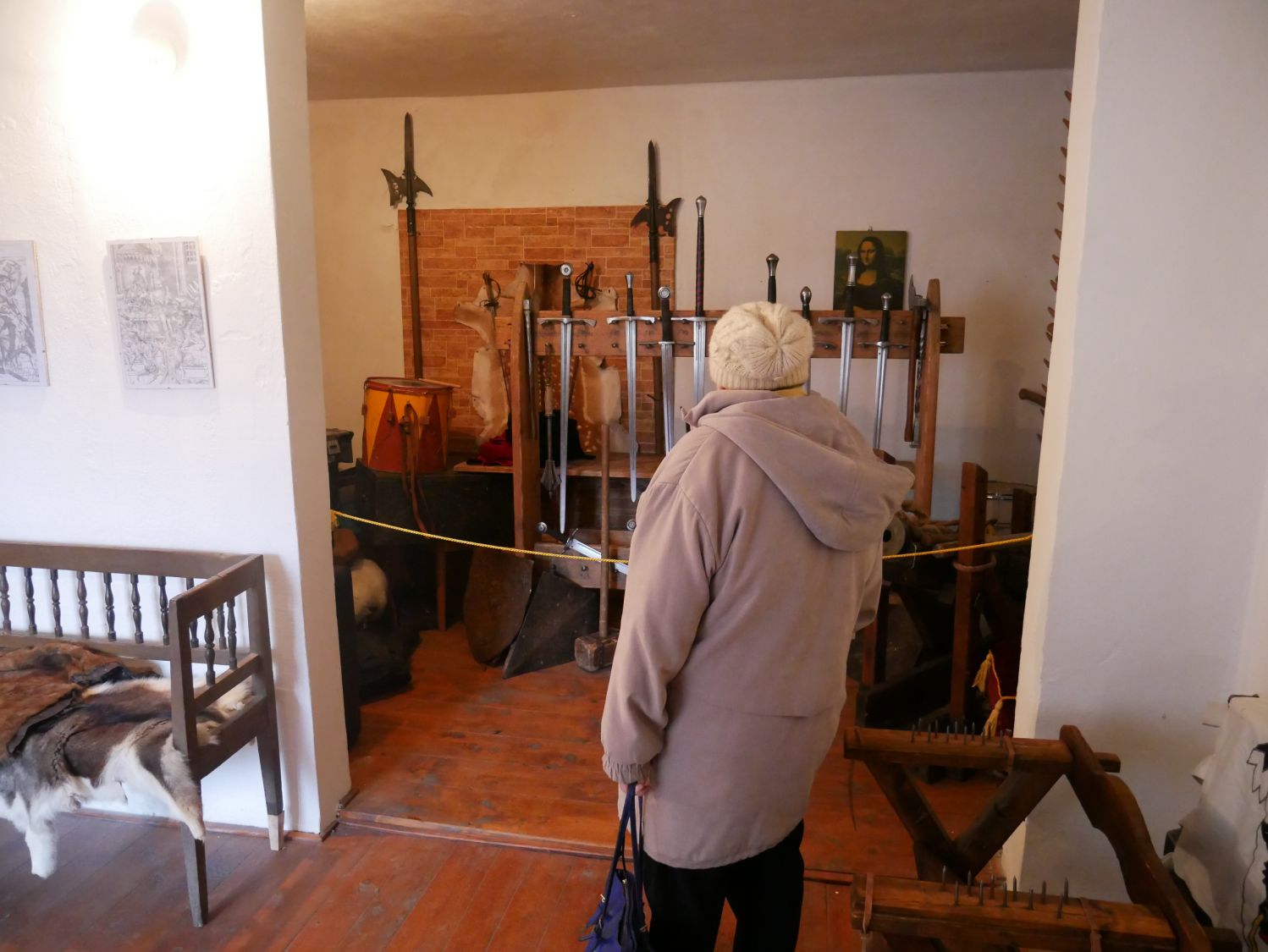Uvnitř katovny hřála kamínka a bylo tam hodně příjemně. K vidění byla cela řada středověkých zbraní a také spousta mučicích nástrojů, tedy výrobních prostředků zdejšího kata.