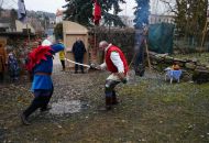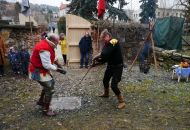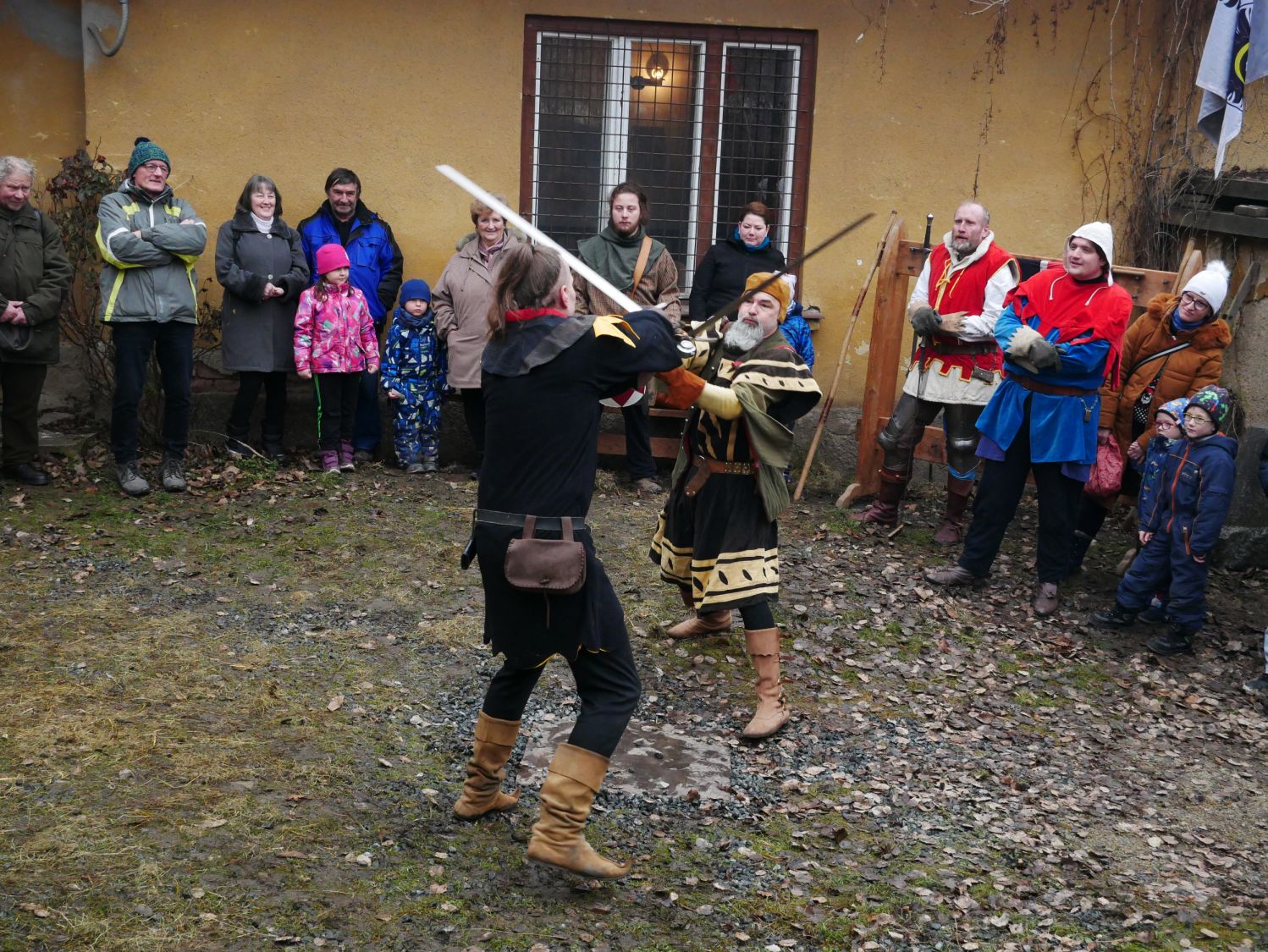 Divácky atraktivní byly samozřejmě ukázky šermířského umění. K vidění tak byly chrabré výkony středověkých rytířů, kteří mistrně ovládali svoje mnohými boji prověřené zbraně. Nejen kvalitními meči se bojovalo, k vidění byly i souboje dlouhými dřevěnými zbraněmi, krátce řečeno klacky. A nebylo všechno tak vážné, jak by se mohlo na první pohled zdát, nechyběla notná dávka humoru.