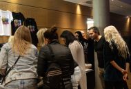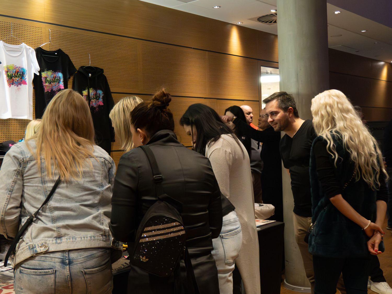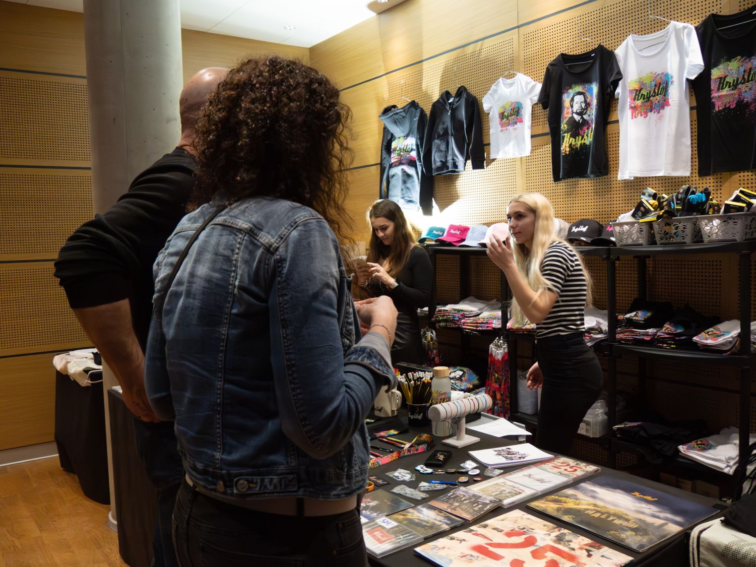 Nechyběl zde ani stánek s merchem, kde bylo možné zakoupit například trička, mikiny, batůžky, náramky, bločky, šňůrky na klíče, skleničky a podobně.