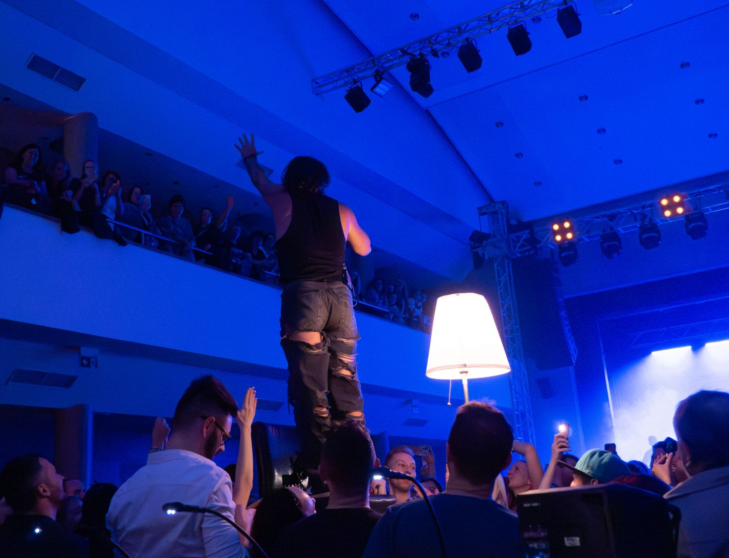 Kolem deváté hodiny se Krajčo projel sálem na barové židli s lampičkou a dostal se tak blíže ke svým fanouškům.