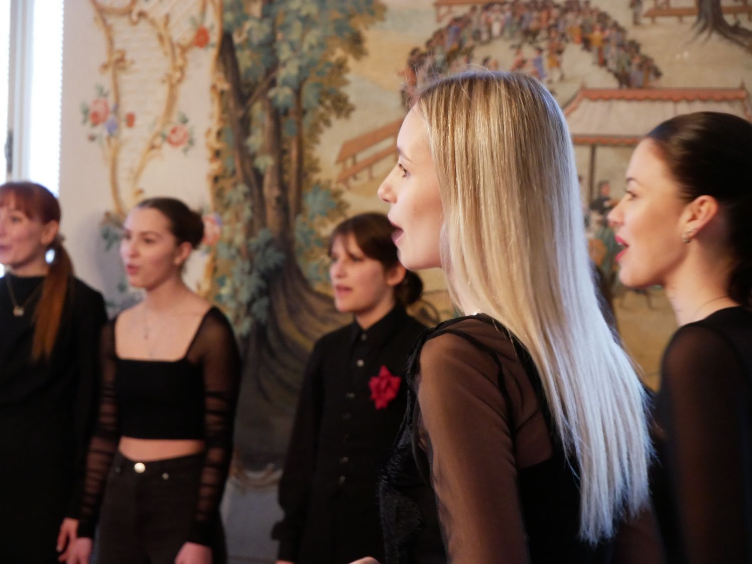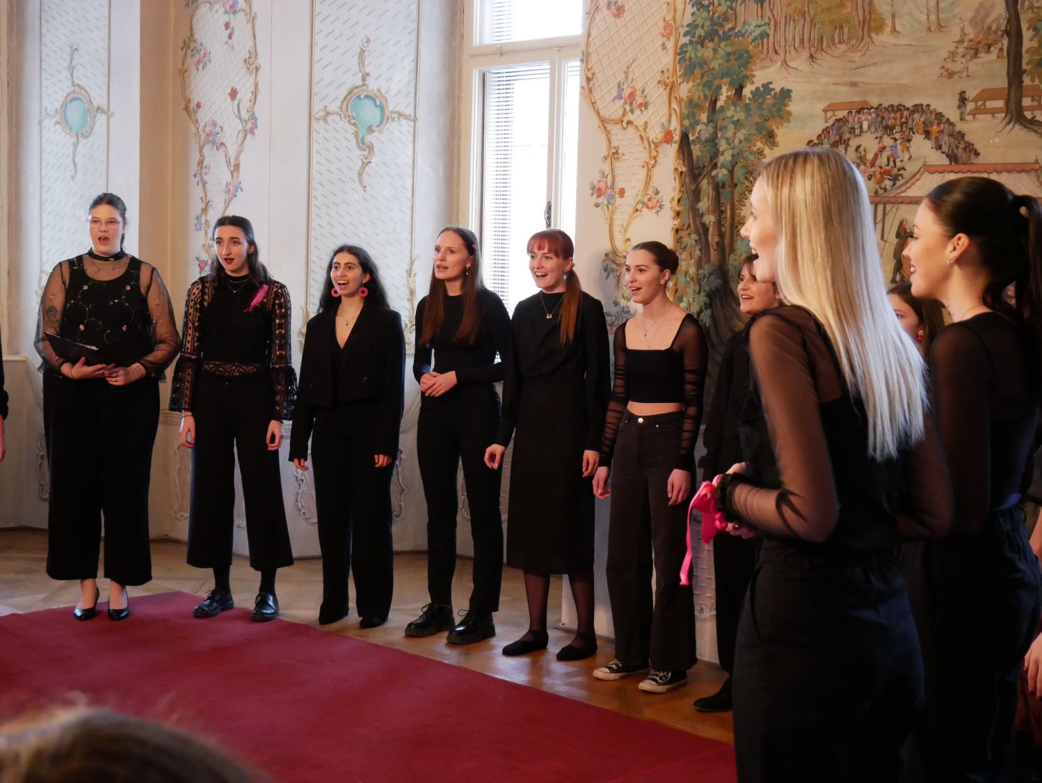 Vernisáž, která se konala v pátek 22. března v 17 hodin v jídelně velkomeziříčského zámku, osvěžil svým vystoupením pěvecký soubor Harmonia Ladies.