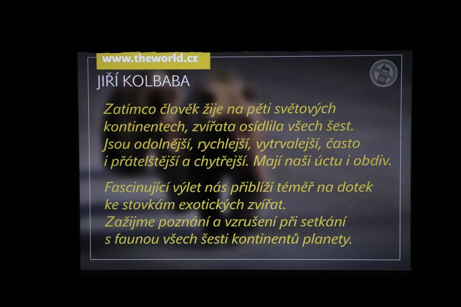 Jiří Kolbaba provedl žáky základních škol dobrodružstvím při cestování po různých zemích. Zmínil se například o Madagaskaru, Galapágách, Africe, Anktarktidě, Kostarice...