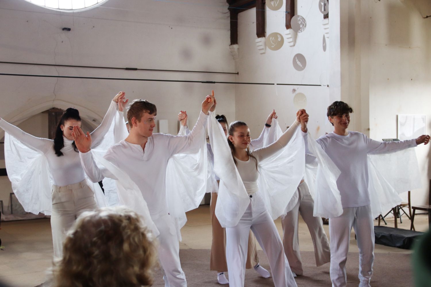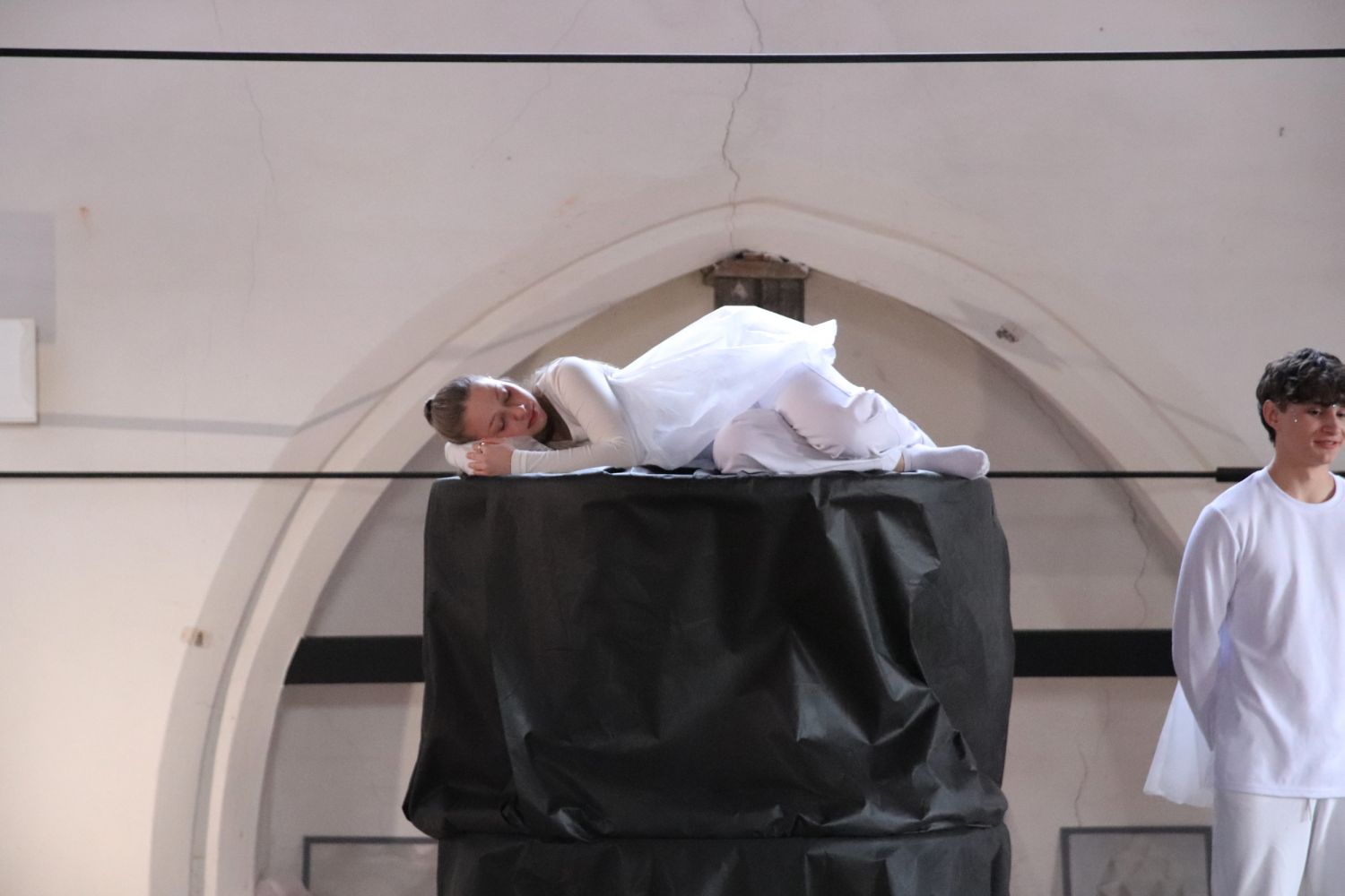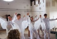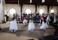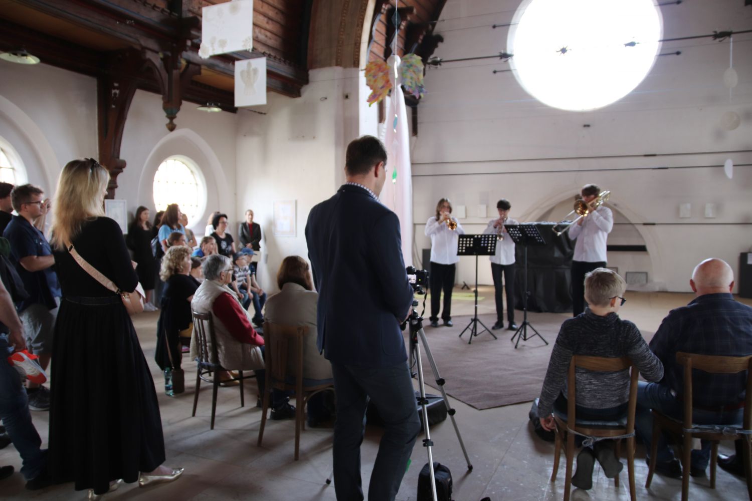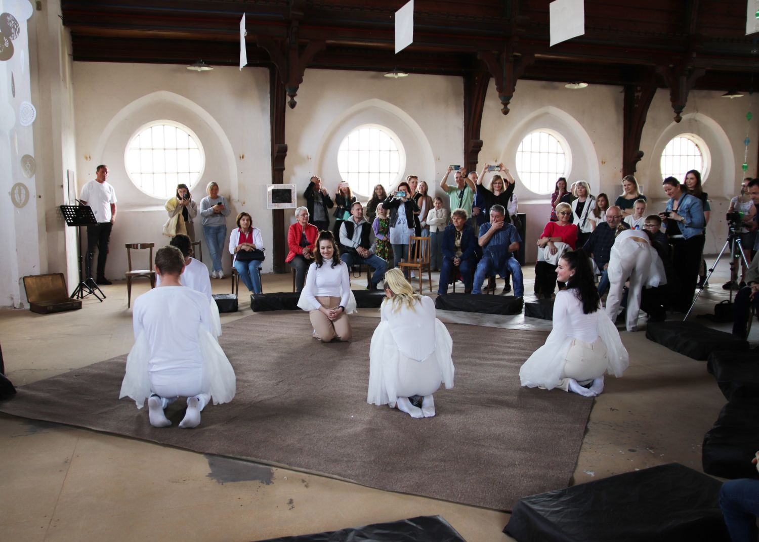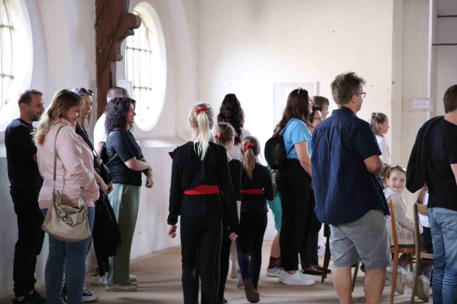 Sobotní odpoledne patřilo v nové synagoze vernisáži výstavy Andělé a démoni. Zahájilo ji taneční vystoupení dobra a zla v podání místní sportovní gymnastiky Sokol a studentů 3. ročníku vyššího gymnázia. Následovalo pár písní od chlapeckého dechového tria.