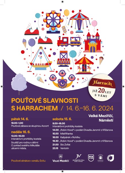 O víkendu 14. až 16. června Velké Meziříčí opět ožije pouťovými slavnostmi. Přinesou zábavu dětem i dospělým. Zazní hudba v podání kapel Sto zvířat, Mistříňanka, Kašpárek v rohlíku a Ventolina, bude tanec se skupinou Accort, divadelní představení Robin Hood, soutěž pro děti, komentované prohlídky kostela, kolotoče a samozřejmě dobré jídlo i pití. Veškeré dění se odehraje v centru města – na náměstí, Staré poště i ve Svitu.