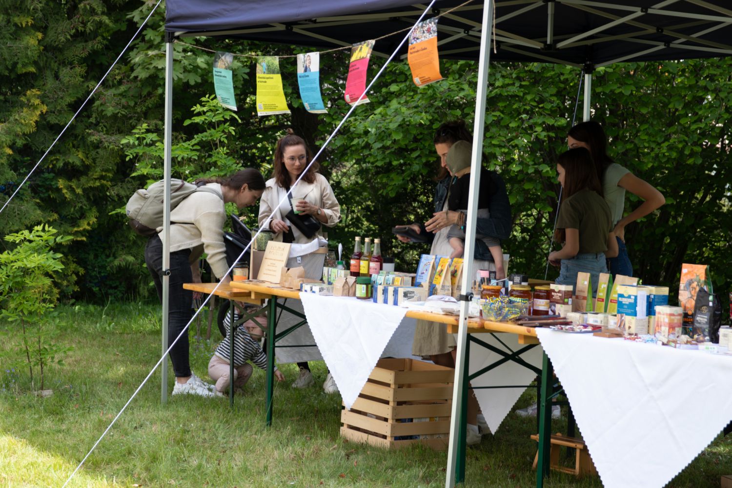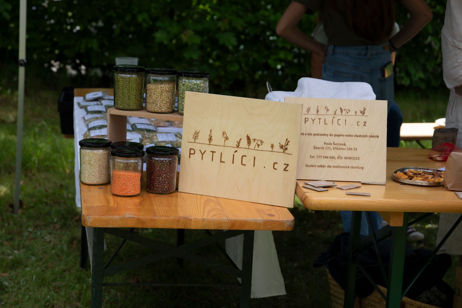 K zakoupení byly různé fairtrade bio potraviny do papírových či vlastních obalů, bylinky, čaje, káva, med, sirupy... Osvěžit se bylo možné také točenou bezinkovou limonádou a pivem. Nechyběl ani stánek s kávou a vaflemi.