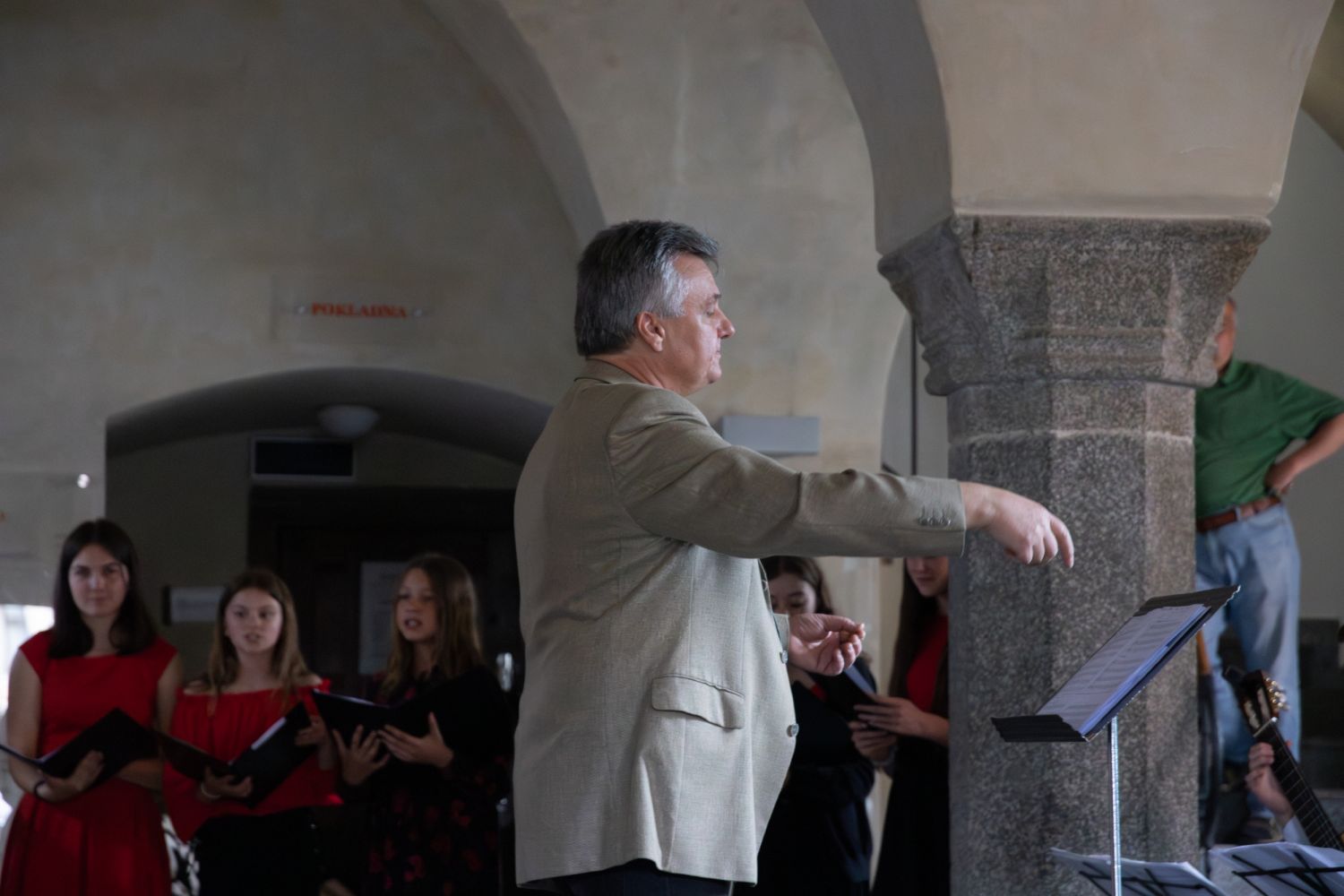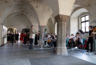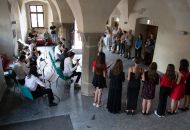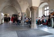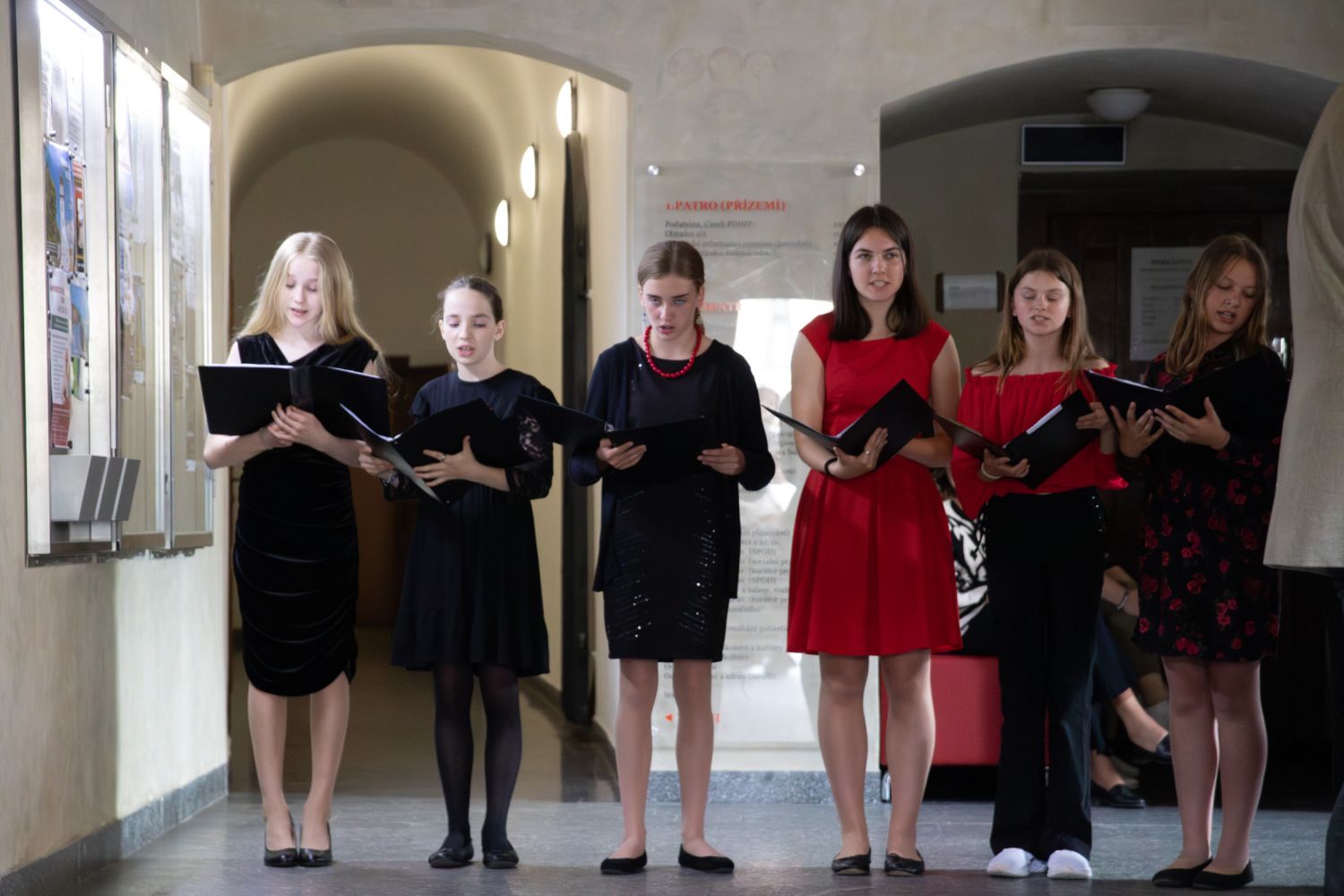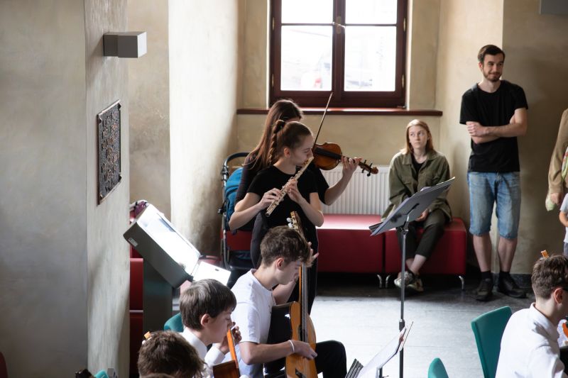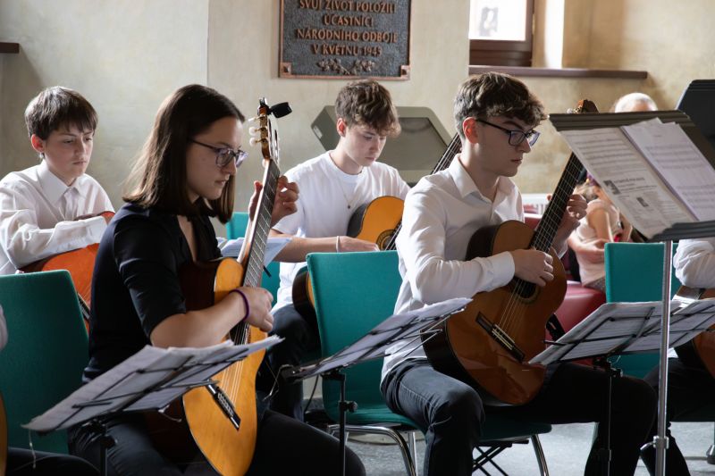 Žáci umělecké školy vystoupili ve vestibulu radnice, v průchodu Svitu, před i za budovou jejich školy.