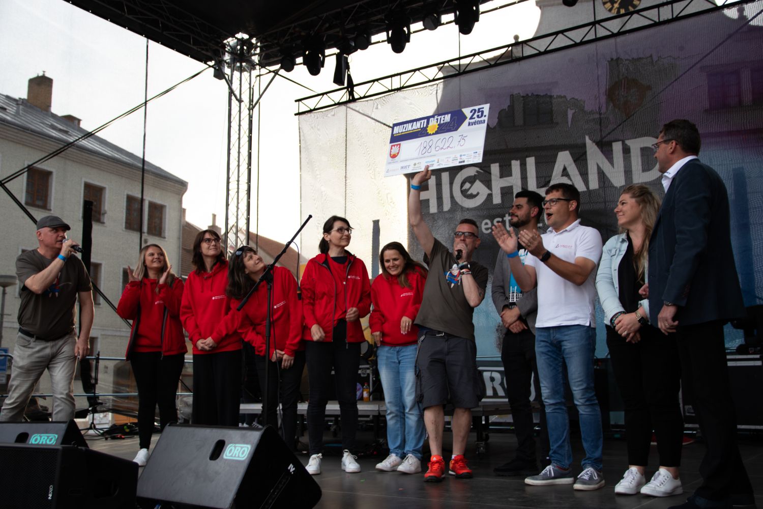 První šek v hodnotě 188 622 korun byl předán kolem sedmé hodiny, tedy po skončení show Buty. Předposlední koncert dne patřil Highlandu v čele s Eduardem Rovenským, bývalým členem velkomeziříčské Poetiky. Jako na předchozích pár ročnících i letos večer zakončili muzikanti Ukulele Troublemakers, kdy v polovině jejich hraní předali organizátoři charitě i šek druhý, tentokrát v hodnotě 100 502 korun. Celkem se tedy pro projekt Doma je doma vybralo 289 124 korun.