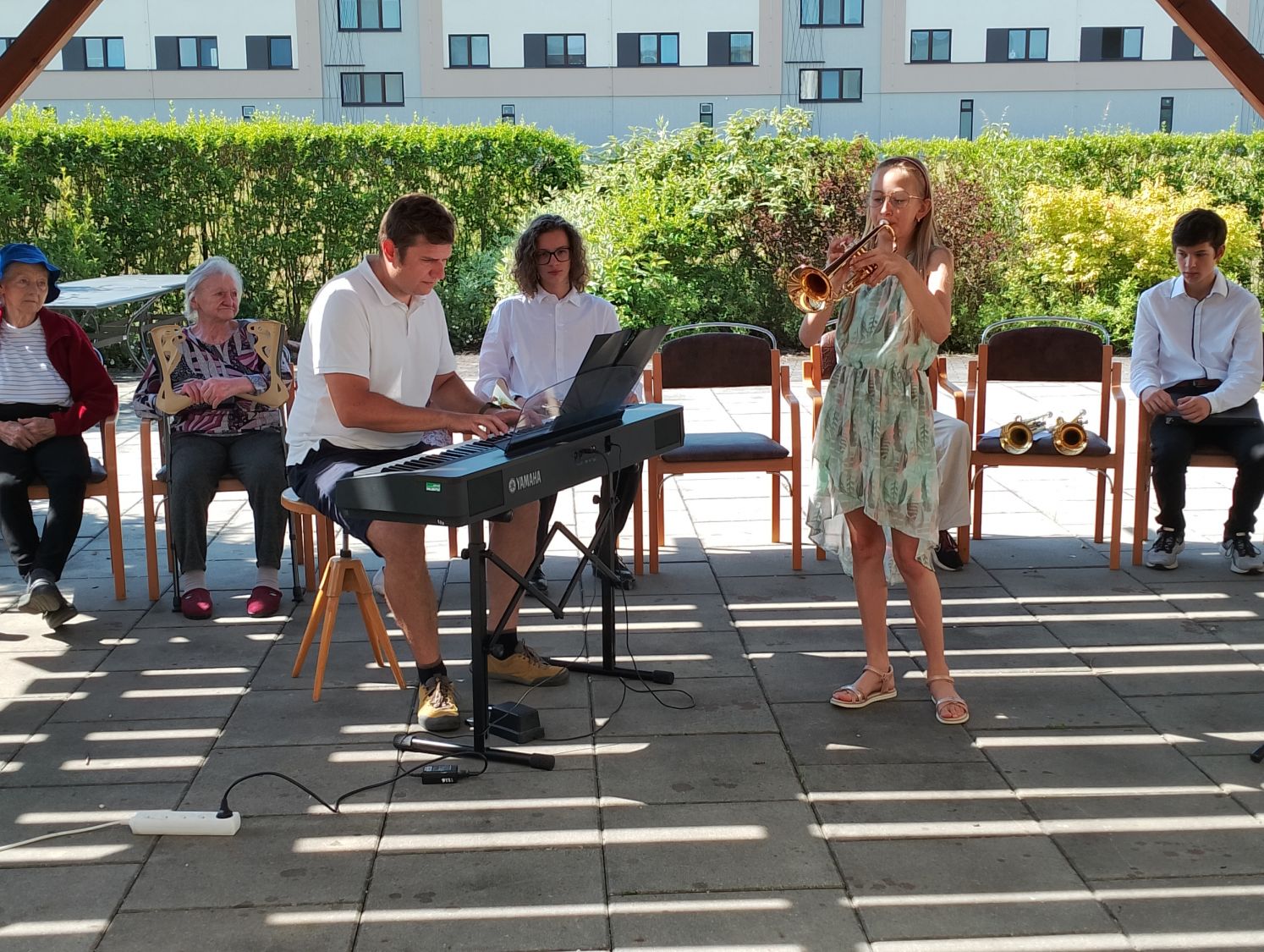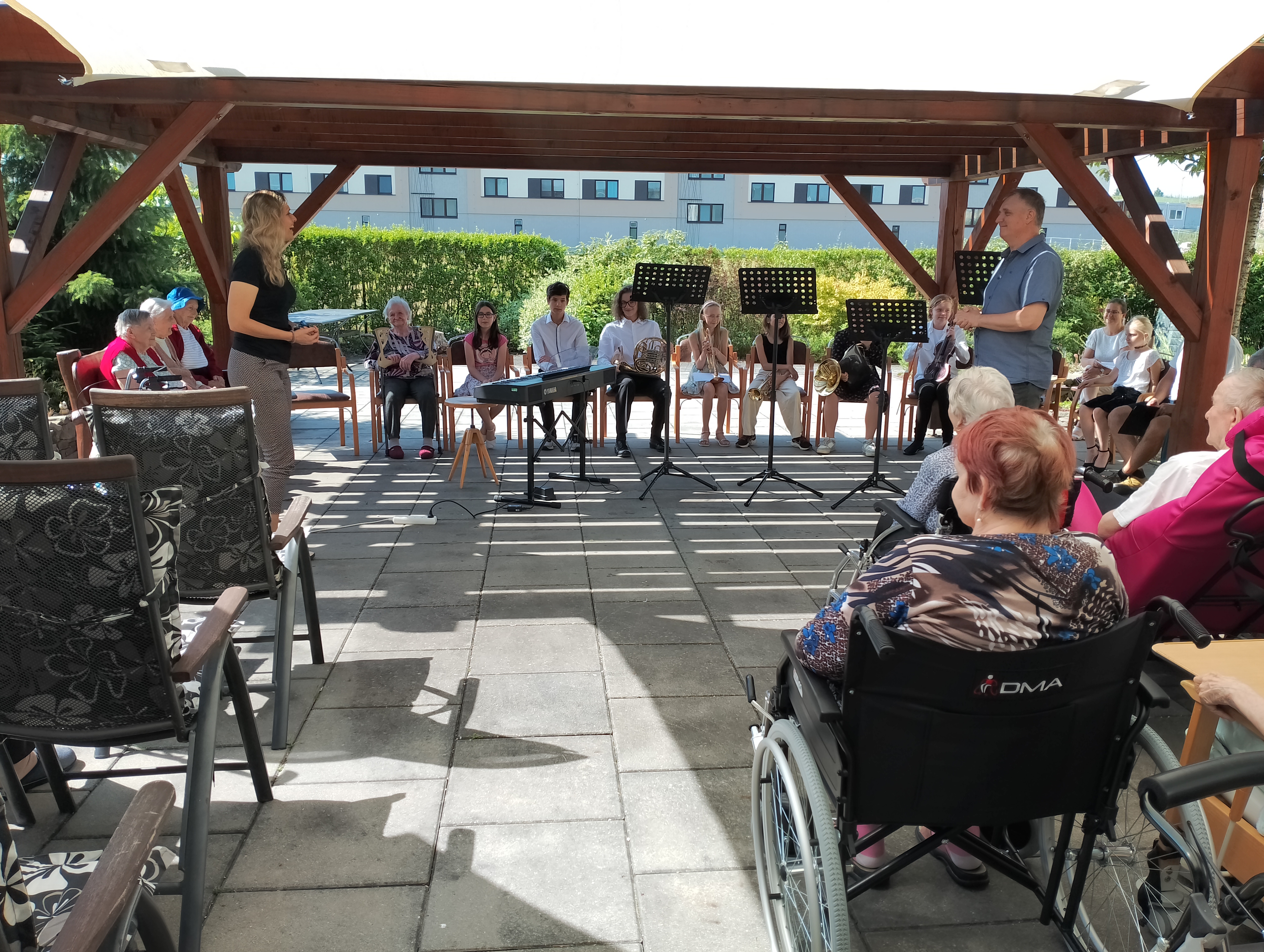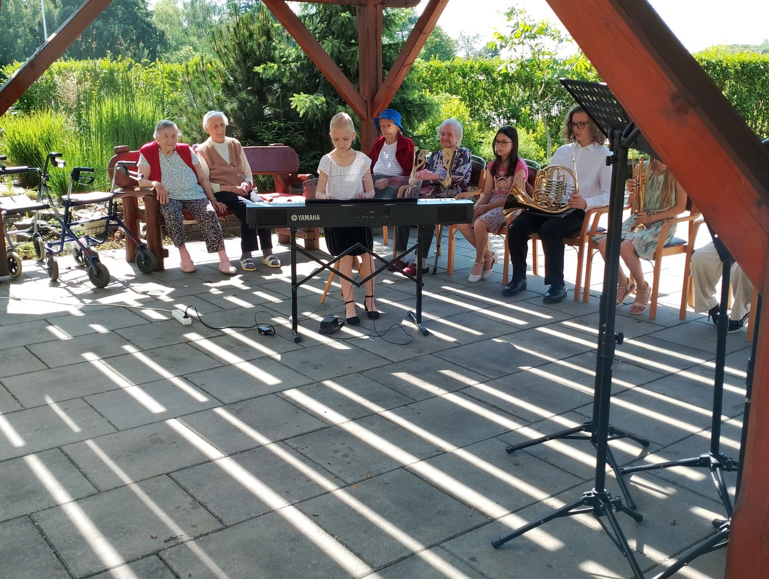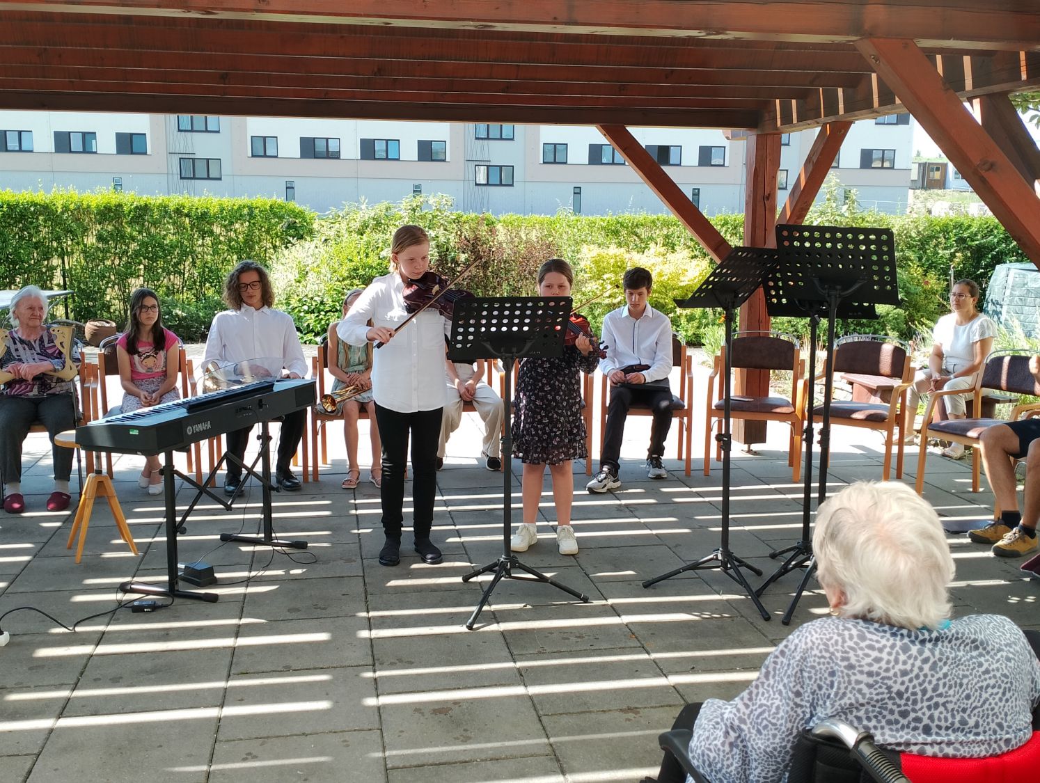 Ve středu 19. 6. zahráli žáci naší ZUŠ babičkám a dědečkům v domově pro seniory. Vystoupení se neslo v příjemné atmosféře venkovních prostor domova a naši žáci svými melodiemi potěšili nejen klienty, ale i personál.