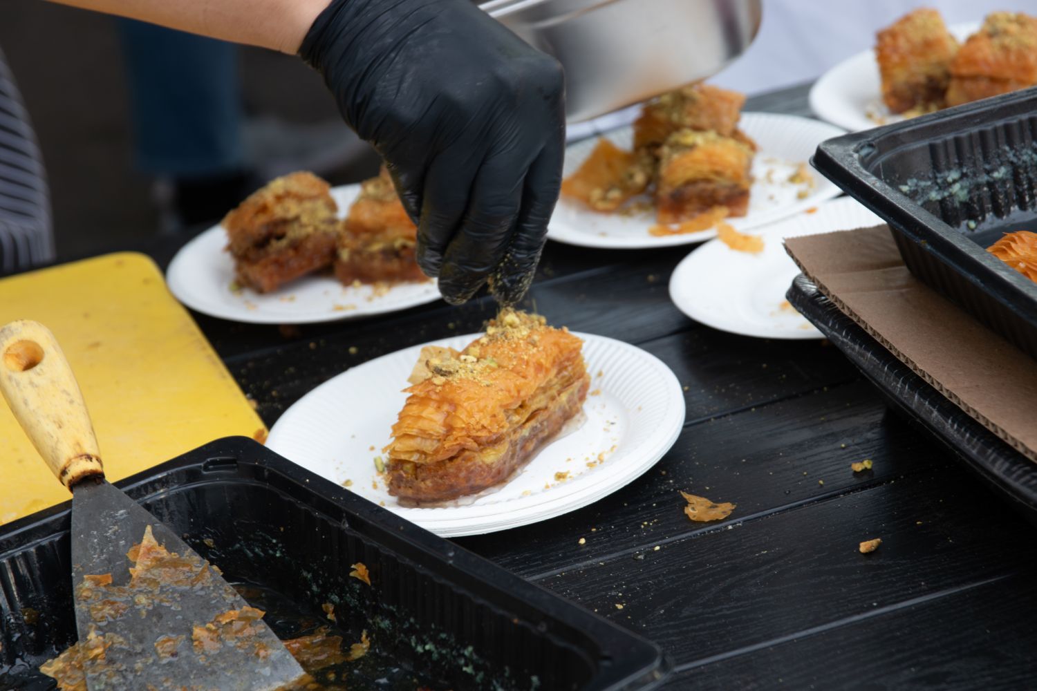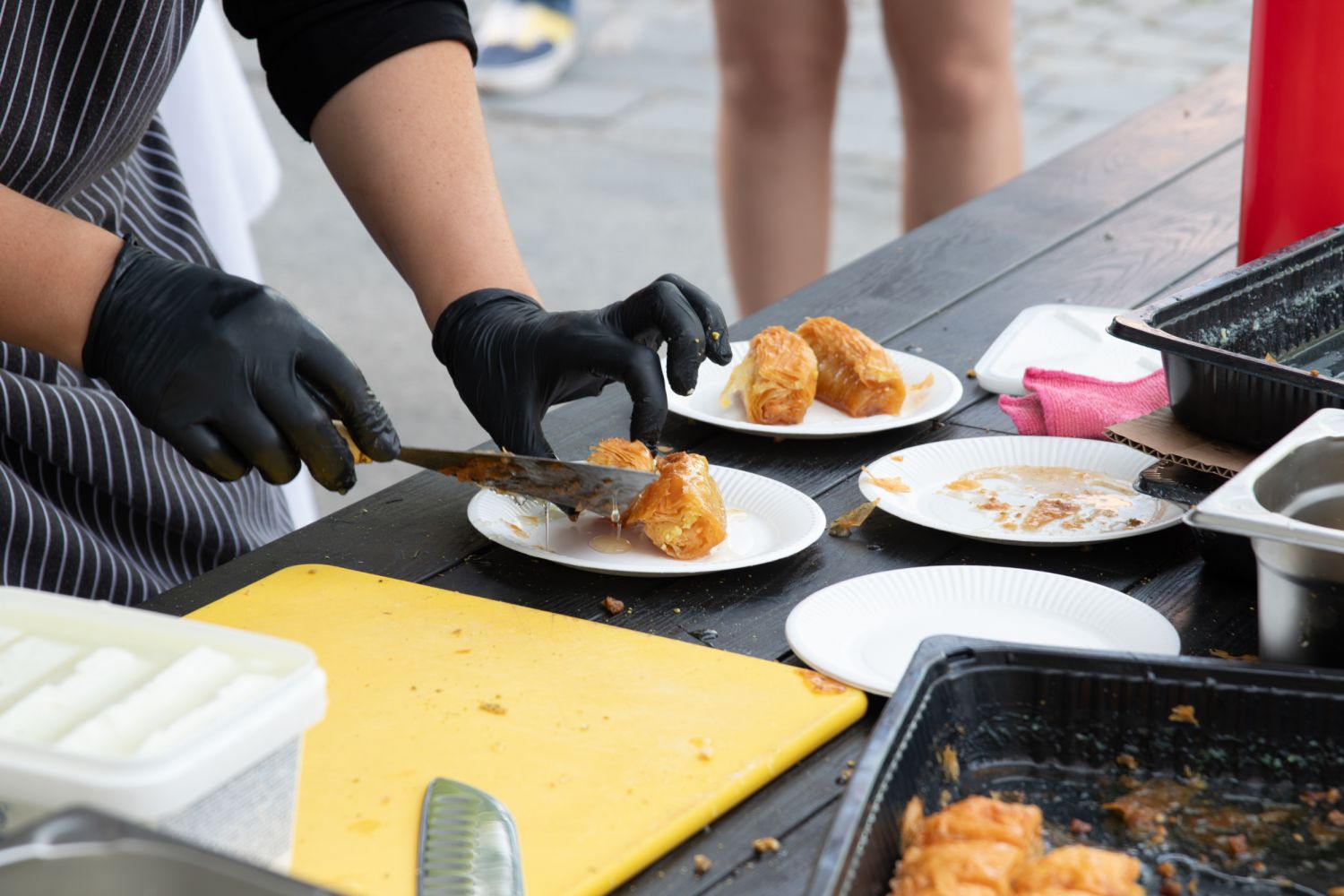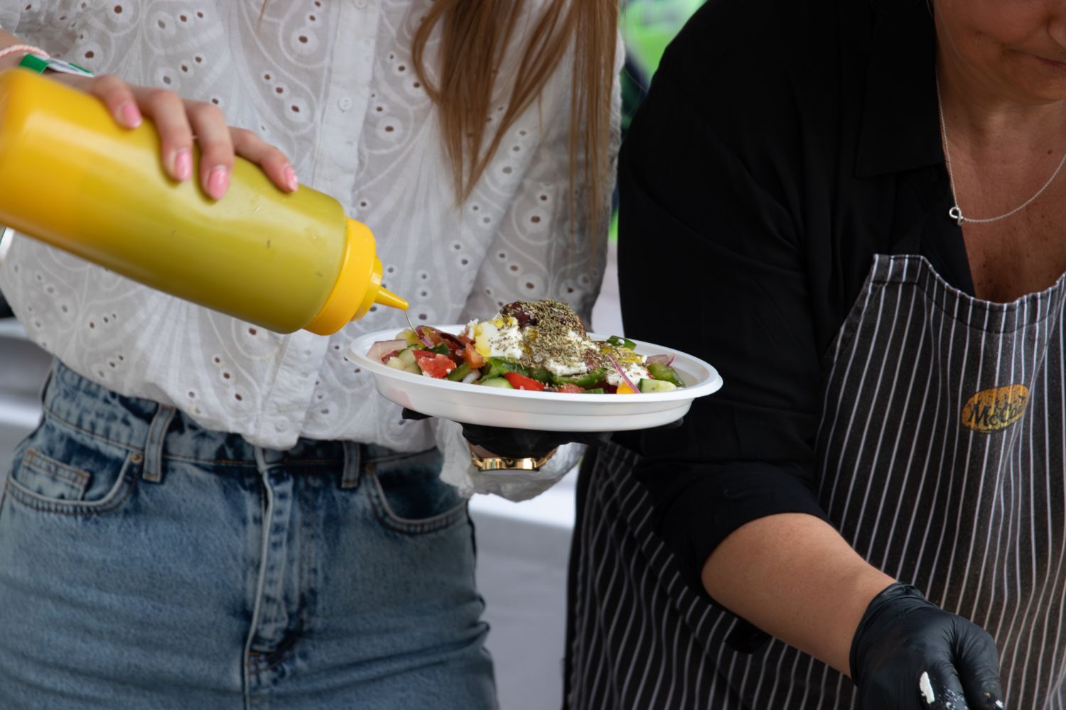 Občerstvení byla spousta a vybral si snad každý. V nabídce byl například zeleninový salát choriatiki salata s fetou a kalamata olivami, sladké dezerty jako baklava nebo třeba souvlaki s pita chlebem a tzatziki. K zakoupení byla i pravá řecká vína, která si snad každý pochvaloval.
