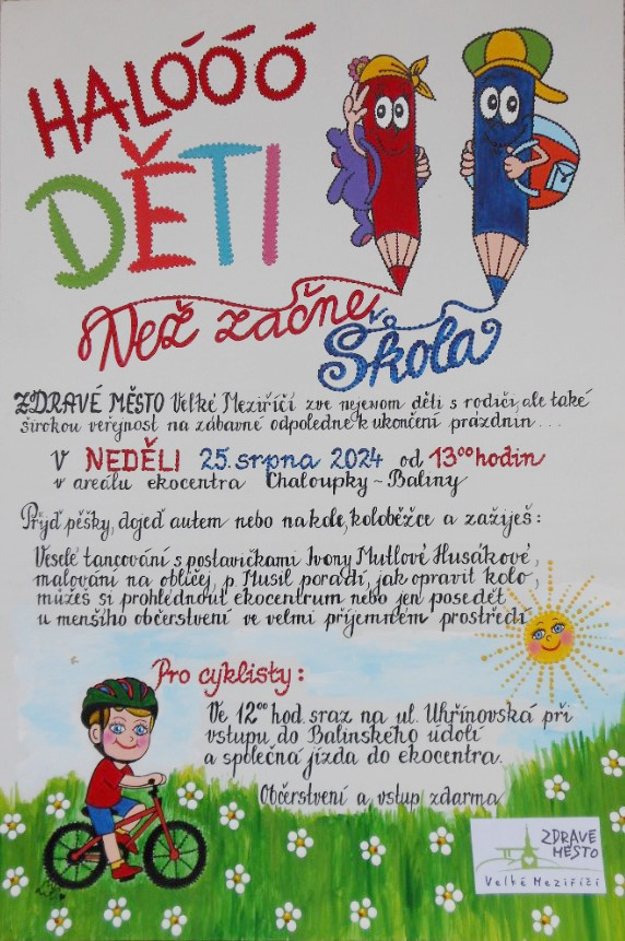 Ekocentrum Baliny bude v neděli 25. srpna hostit akci Zdravého města Velké Meziříčí s názvem Halóóó děti, než začne škola. Těšit se můžete na příjemné prostředí, které nabídne malování na obličej, tancování pro děti, rady, jak na opravu kola, či můžete jen posedět a užít si přírodní krásy ekocentra. Využít můžete i společné vyjížďky na místo konání, sraz je ve 12:00 u vstupu do Balinského údolí.