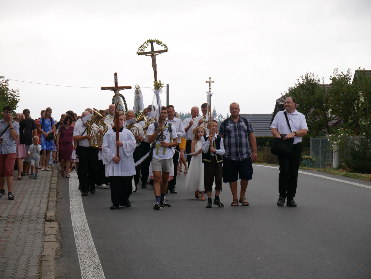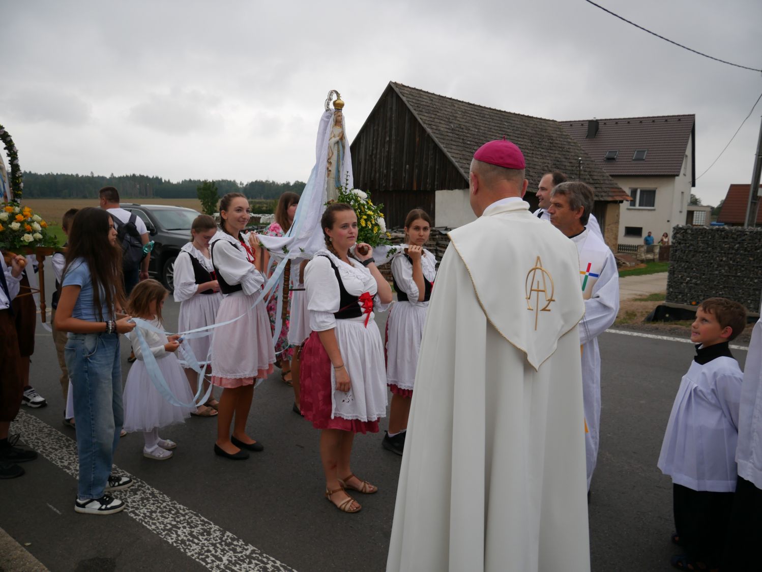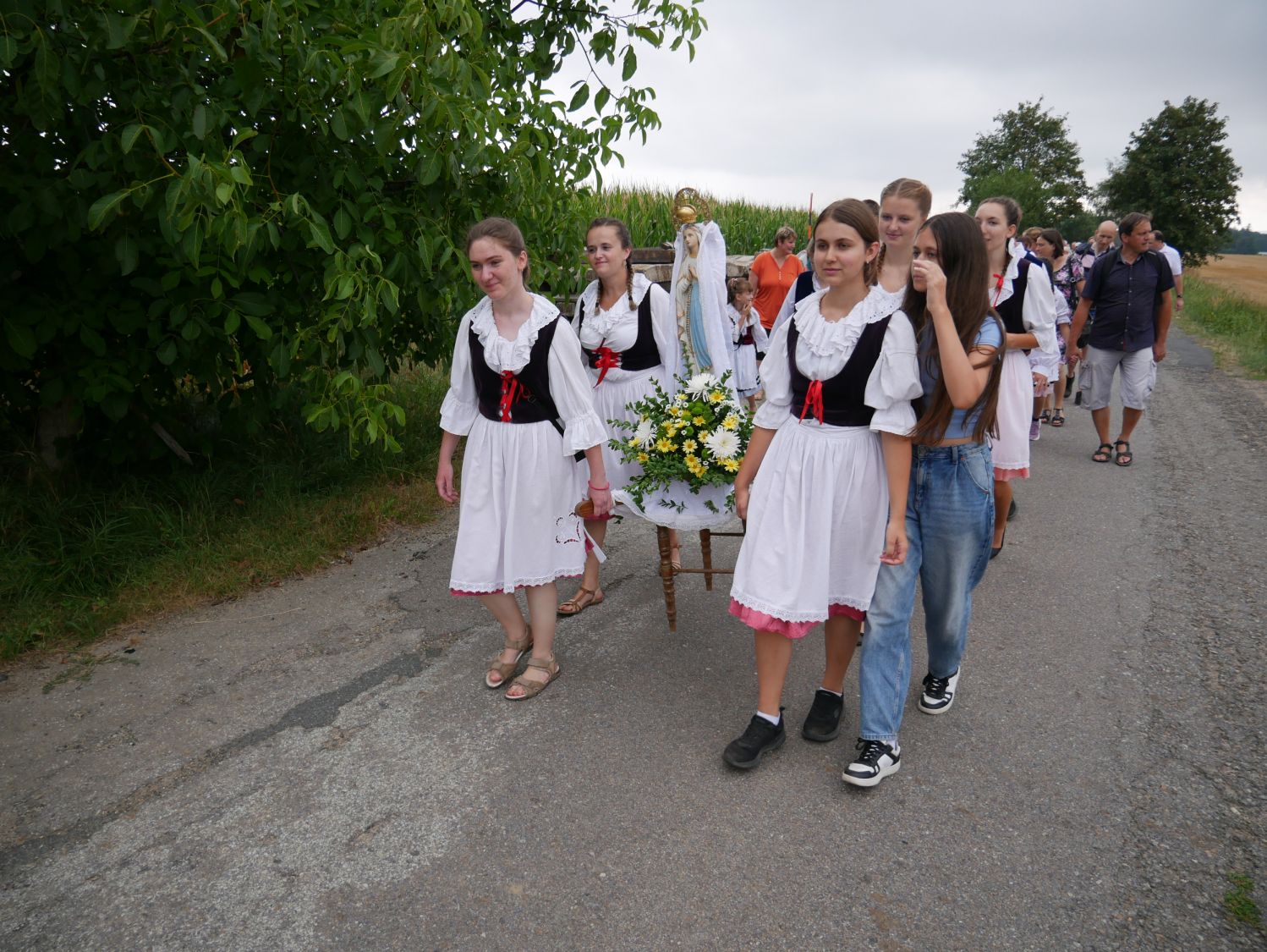 Vrcholem netínské pouti pak byla neděle. Už v půl osmé ráno sloužil novokněz P. Daniel Martinek v kostele mši svatou. V 9 hodin pak sloužil další mši svatou na farní zahradě. V té době už byli na cestě poutníci z okolních farností. Průvod poutníků z Velkého Meziříčí vyšel už v půl sedmé ráno. Před sebou měli deset kilometrů. Procesí s Pannou Marií vedl P. Jaroslav Mrňa.