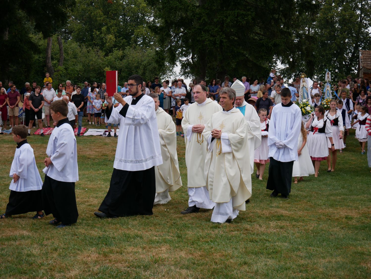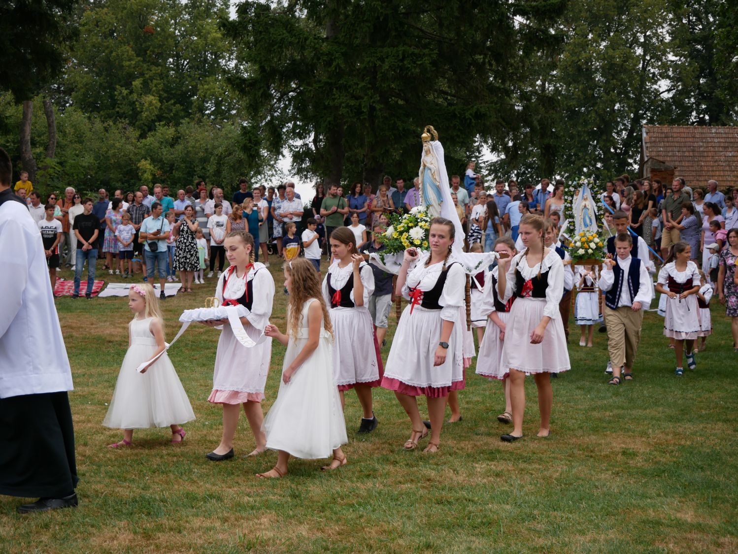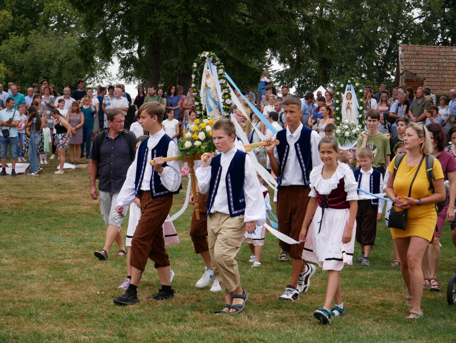 Vrcholem netínské pouti pak byla neděle. Už v půl osmé ráno sloužil novokněz P. Daniel Martinek v kostele mši svatou. V 9 hodin pak sloužil další mši svatou na farní zahradě. V té době už byli na cestě poutníci z okolních farností. Průvod poutníků z Velkého Meziříčí vyšel už v půl sedmé ráno. Před sebou měli deset kilometrů. Procesí s Pannou Marií vedl P. Jaroslav Mrňa.