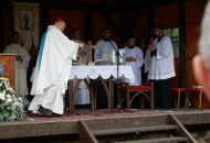V půl jedenácté se poutníci sešli na okraji Netína u tzv. Černého kříže, kde se k nim připojil velkomeziříčský děkan Jiří Kaňa a pomocný biskup pražský Zdenek Wasserbauer. Průvod prošel vsí až ke kostelu Nanebevzetí Panny Marie, kde proběhlo přivítání poutníků. V 11 hodin pak biskup Zdenek Wasserbauer celebroval mši svatou na farní zahradě.