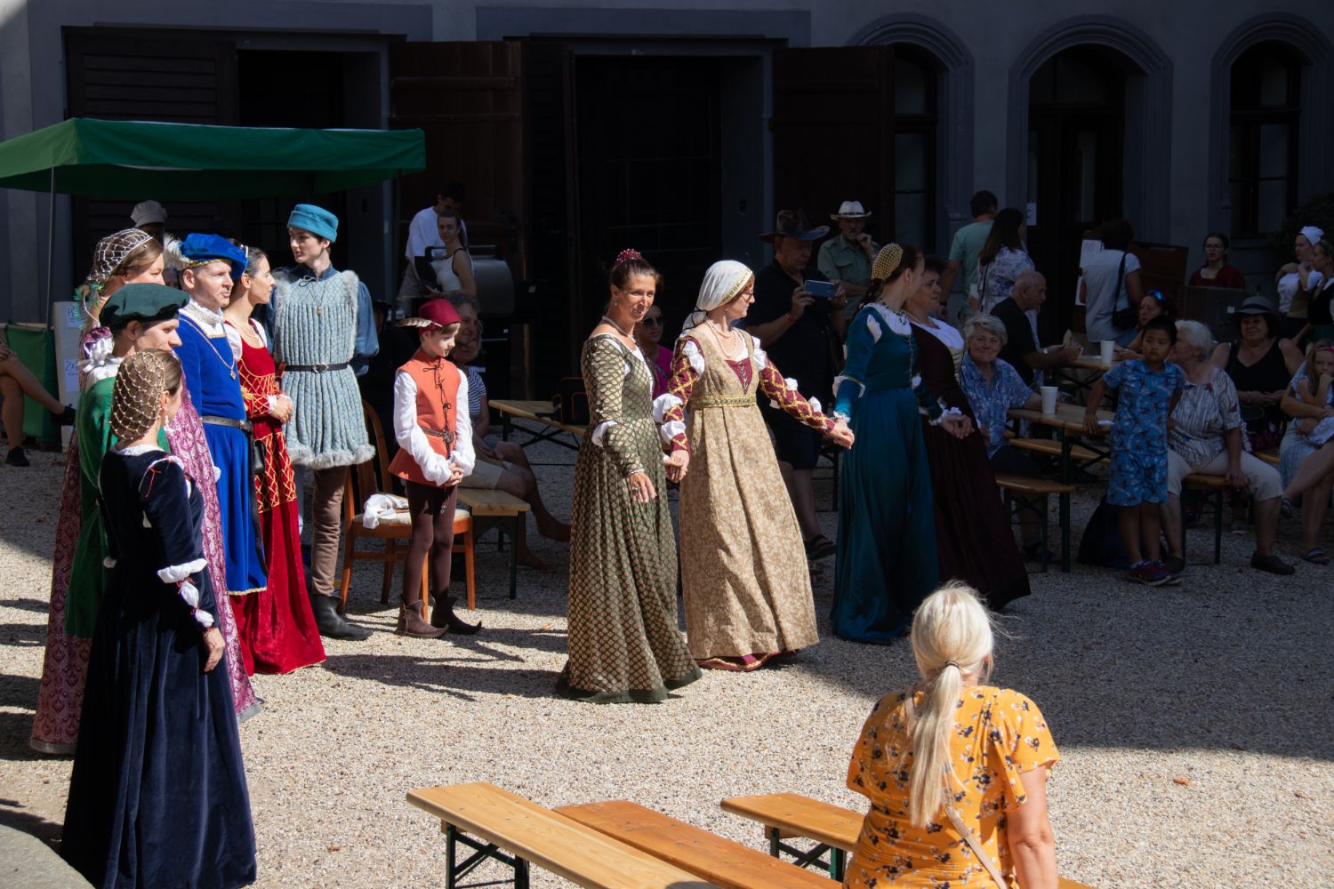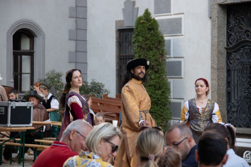 Muzeum Velké Meziříčí si připravilo bohatý doprovodný program od hudebních a divadelních představení, přes dobovou přehlídku, šermířské vystoupení, kostýmovaný příjezd současné rady města, až po vojenskou šarvátku v parku. Kapela Alioquin předvedla především hru na dudy a bubny, Zanyka mimo bubny a píšťaly i zazpívala. Roseta si připravila dobové tance spojené s divadelními scénkami. Divadelní scénky ostatně nechyběly ani když přišla řada na vystoupení TAS. K zakoupení bylo slané i sladké občerstvení, suvenýry jako náramky, náhrdelníky, kamínky apod., káva či osvěžující nápoje. Mimo jiné byla možnost využít kostýmovaných prohlídek zámku za zvýhodněnou cenu. Nejvíce diváků však přilákala vojenská šarvátka v zámeckém parku. Na akci zavítali i zástupci našeho partnerského města, Českého Meziříčí.