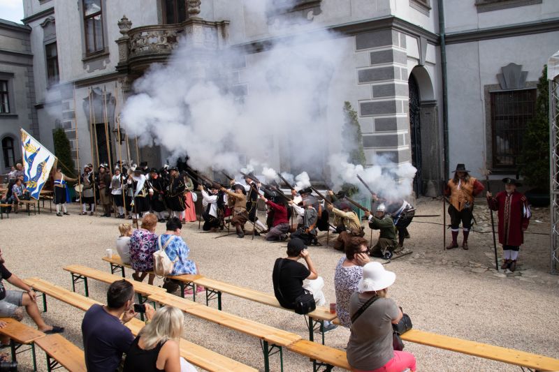 Historické slavnosti letos přítomné přenesly do doby třicetileté války. Na místě tak nemohl chybět ani sám Albrecht z Valdštejna.
