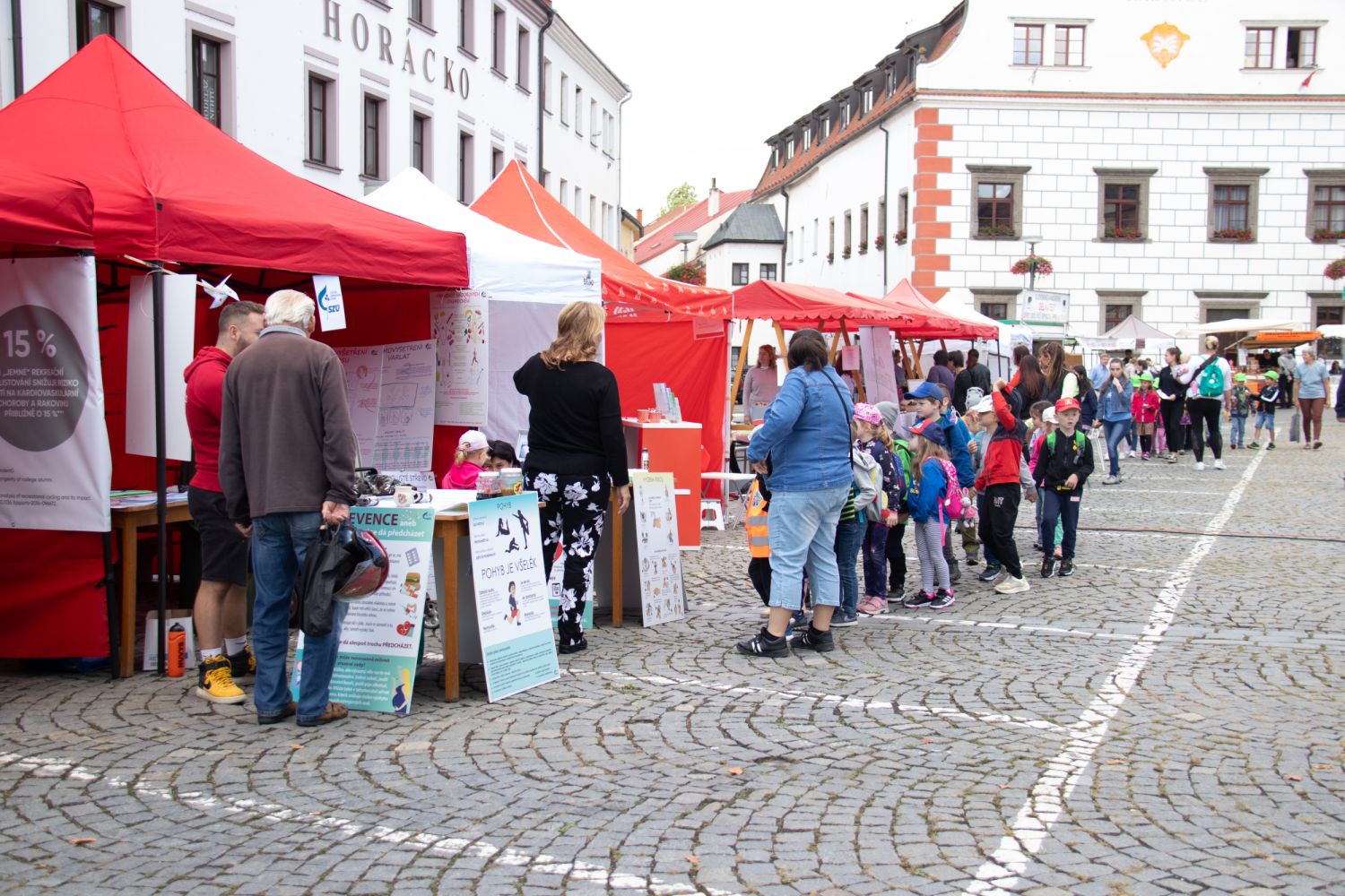 V rámci Dne zdraví se na velkomeziříčské náměstí sjeli stánkaři s různými regionálními potravinami. Nejen k zakoupení, ale i k ochutnání zde byly různé koláče, burčák, dezerty, káva, sýry a spousta dalšího. Nechyběl ani prodej tradičních dřevěných hraček, česneku, čajů a bylinek, medu...Jako doprovodný program bylo pro malé i velké připravené představení Brněnských písničkových tetin či ukázka práce se psem od Kynologického klubu Velké Meziříčí, který slavil letos 40 let od založení. Svůj stánek na náměstí mělo i město. Místostarosta Martin Kaman v něm představil plány v cyklodopravě, cyklostezky, nabídl pocitové mapy apod. Zájemci si mohli vyzkoušet i jízdu na elektrokole.