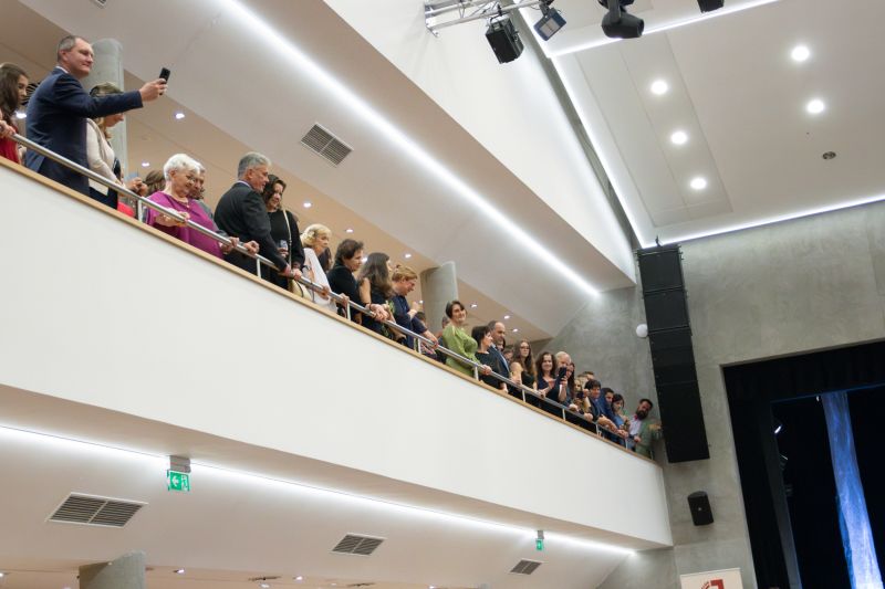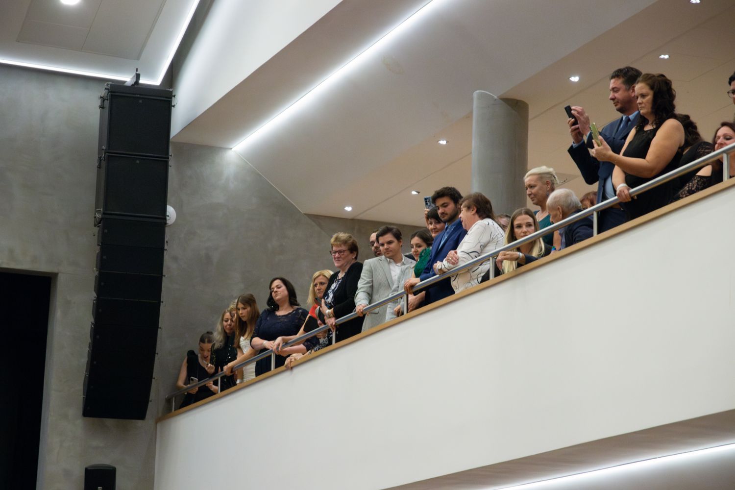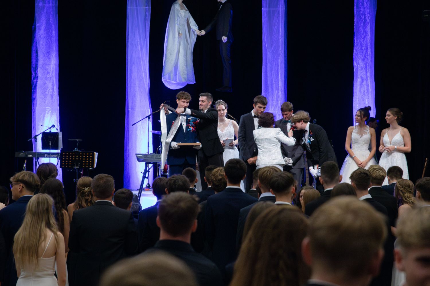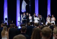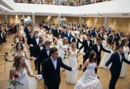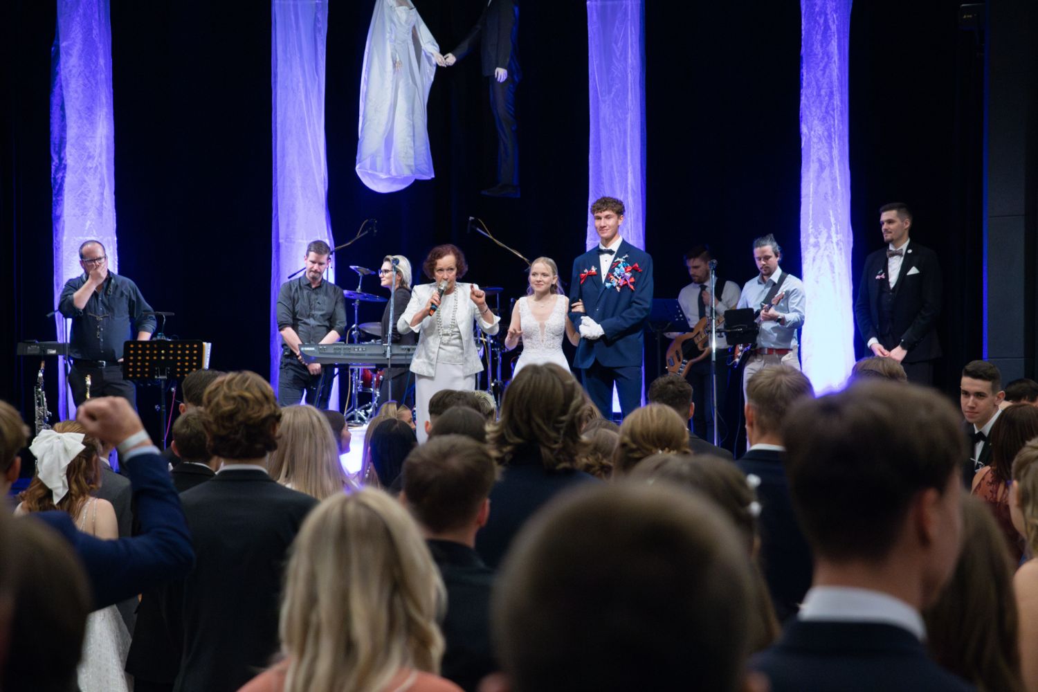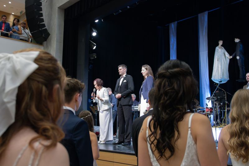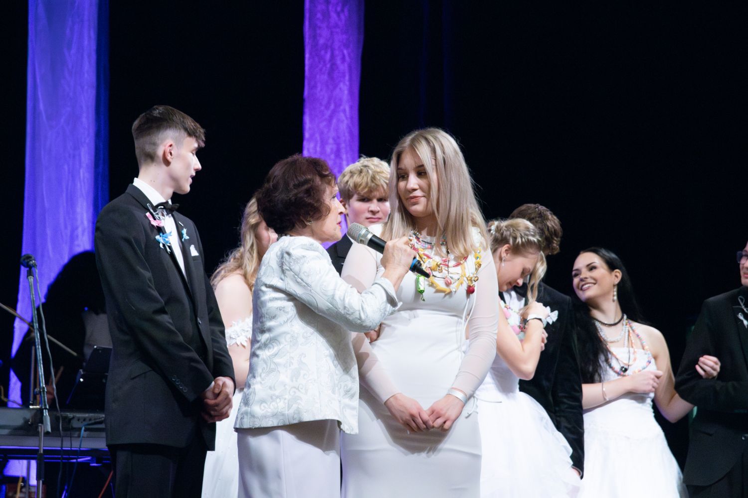 Ve velkém sále se kolem tři čtvrtě na sedm začalo do závěsu štosovat přes 100 tanečnic a tanečníků. Přehlídku nacvičených tanců zahájila polonéza, kterou žáci na posledním kurzu před plesem trénovali. Následovaly ty ostatní, k vidění tak byl jive, čača, waltz, polka a podobně.