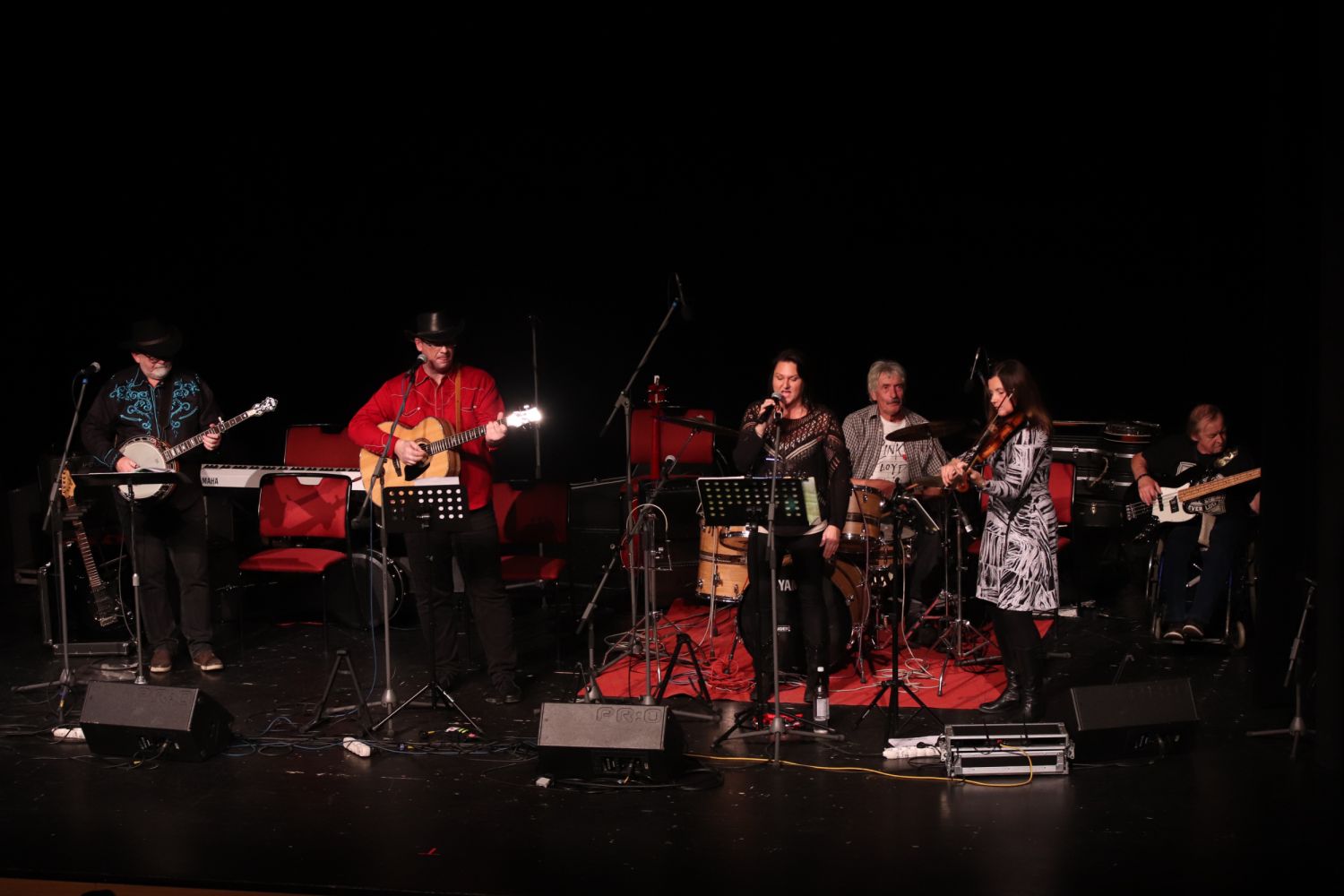 „Přijeli jsme vám zahrát nějaké ty vykopávky. Paní, nedívejte se tak udiveně, že jsem ještě živej,“ zahájil vystoupení Banjo Bandu Ivan Mládek a jedním dechem dodal: „Zahrajeme vám dvakrát tři čtvrtě hodiny i s jedním přídavkem, který si vynutíte.“ A pak chrlil jeden vtip za druhým a prokládal jimi všechny známé hity – Láďa jede lodí, Pochod Praha Prčice, Rychlík jede do Prahy, Medvědi nevědí, Včera večer u sila a další a další, které v sále znali snad všichni. Zdatně mu sekundovali i jeho kolegové jako třeba Lenka Šindelářová. Banja skvěle zněla, kapela svižně šlapala, lidé se dobře bavili. Byl to country večer říznutý dixielandem i dechovkou, a hlavně plný smíchu.