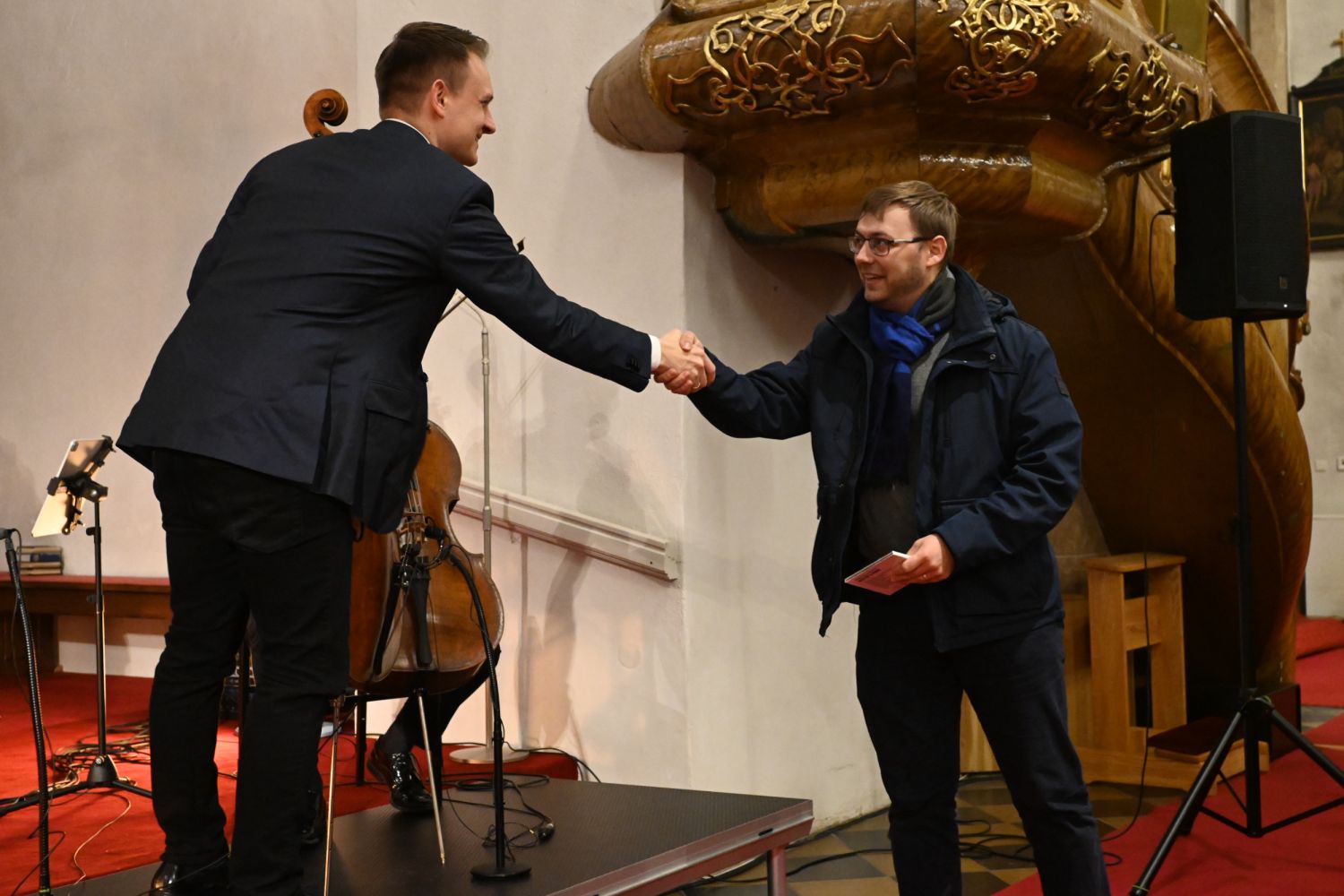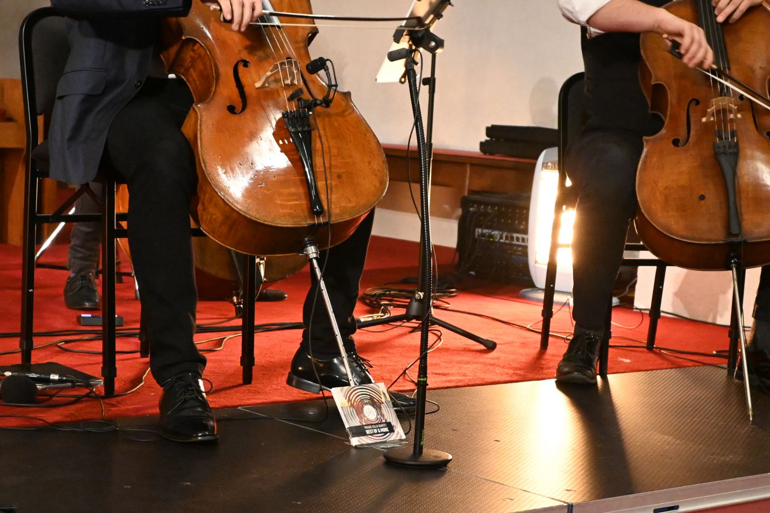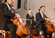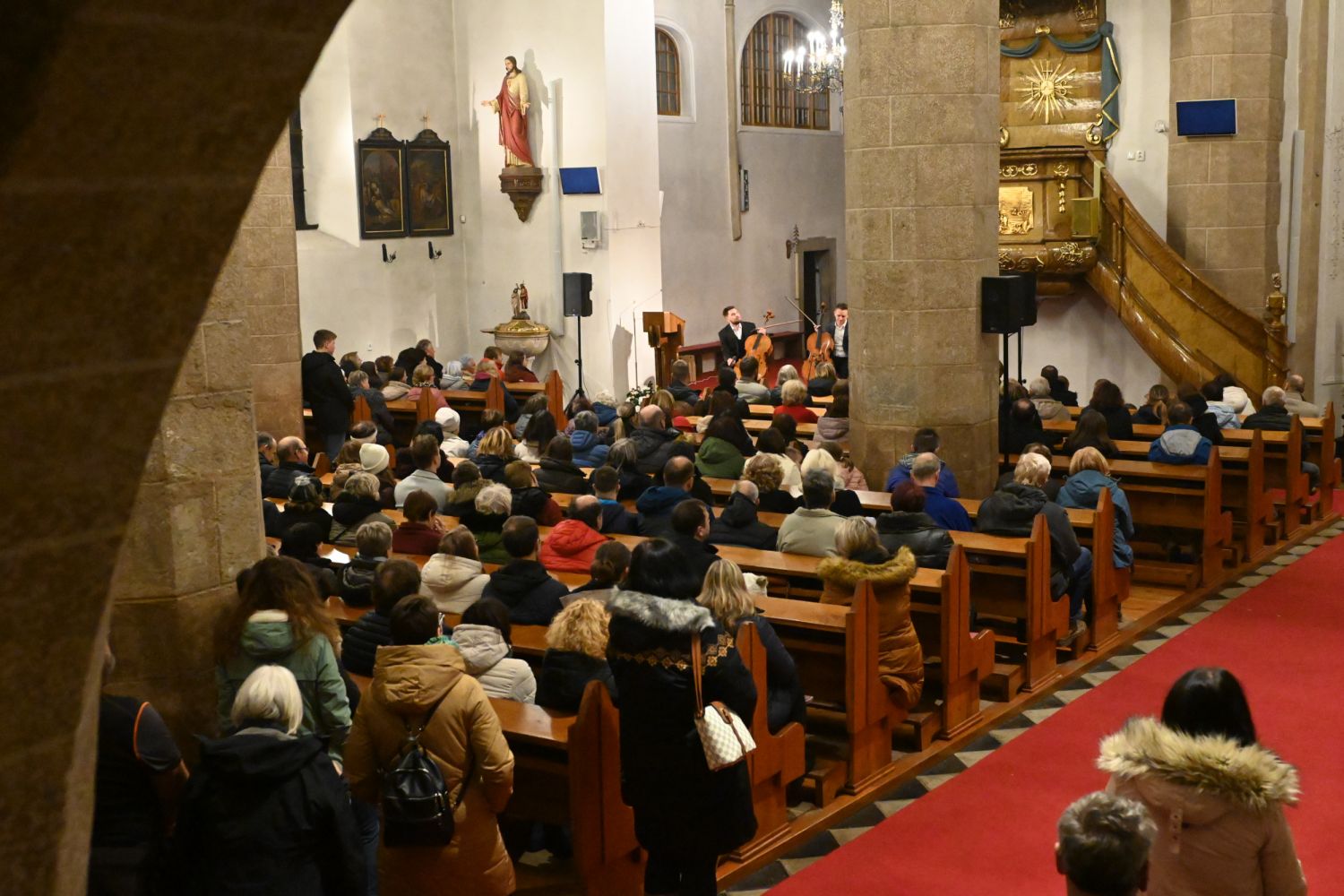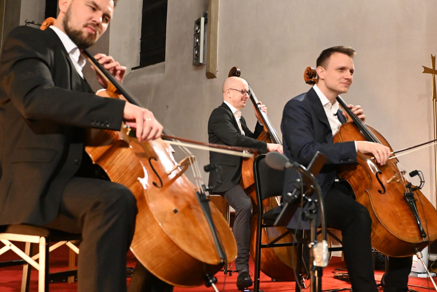 Plný kostel lidí přivítal Prague Cello Quartet. Jan Zvěřina, Štěpán Švestka, Michal Haring na violoncella a Tomáš Otevřel na kontrabas zahráli Šostakoviče, Ježka i Queen či Metallicu.