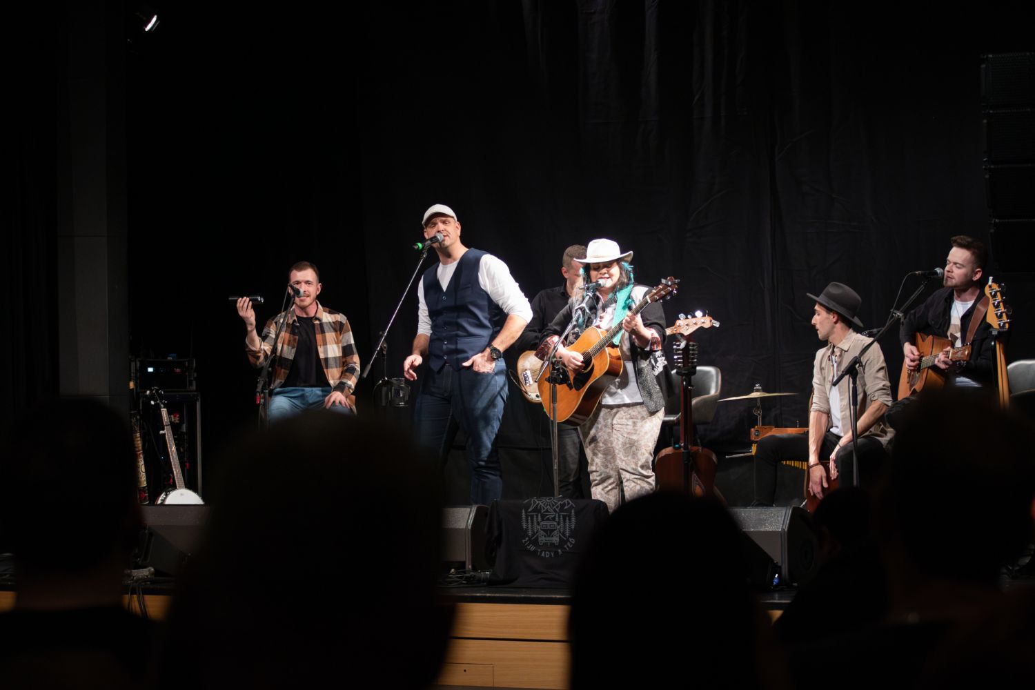Kolem desáté hodiny nastalo v sále ticho a zhasla i světla. To byla však jen příprava na bouřlivé vystoupení HangOverů, kteří předvedli písně autorské, přezpívané do českého jazyka i známější v originálním znění jako například Cotton Eye Joe, Jolene, Proud Mary, Take me home, country roads...