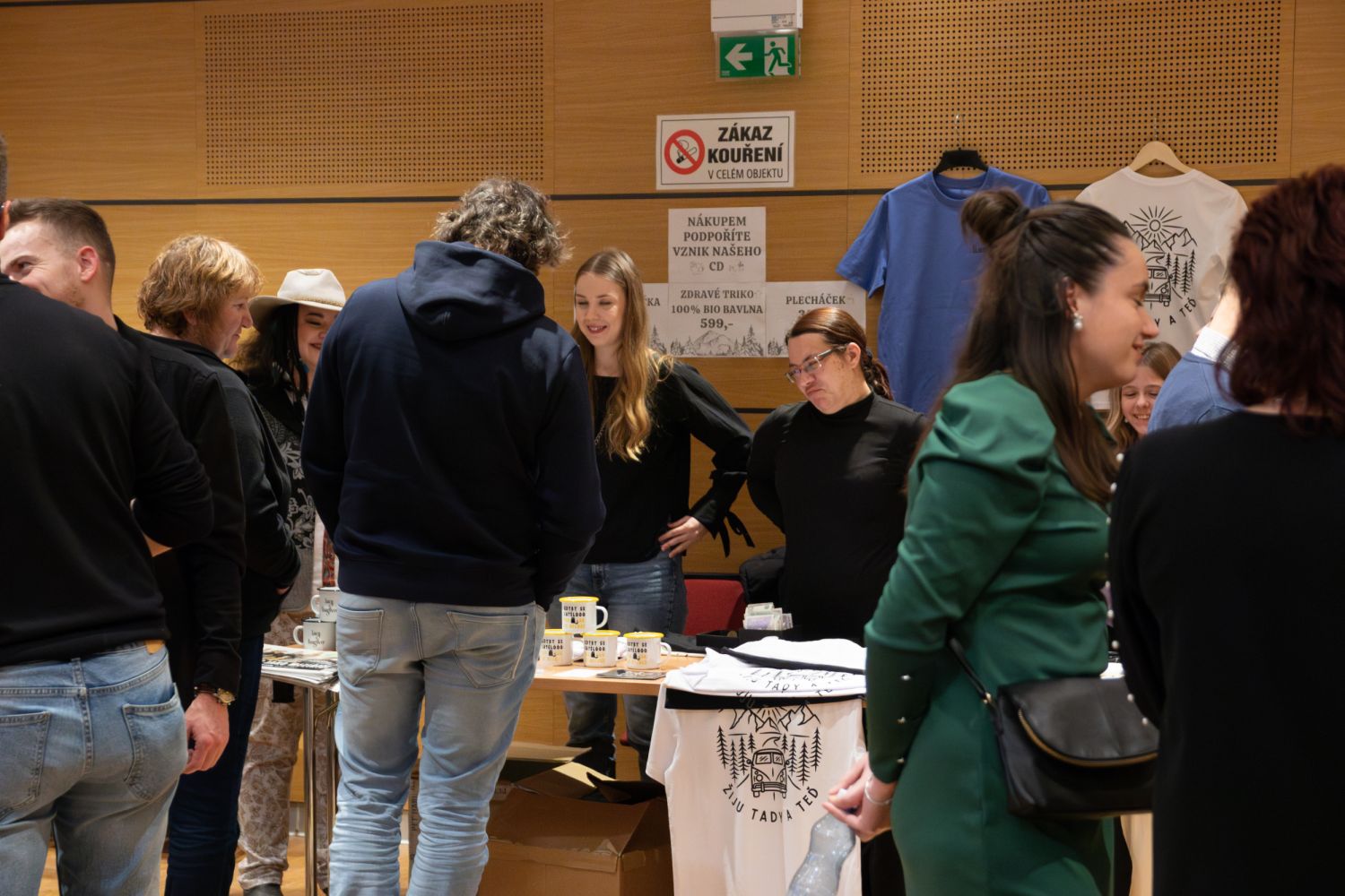Na konci koncertu se uskutečnilo i společné focení s fanoušky a nechyběl zde ani stánek s merchem.