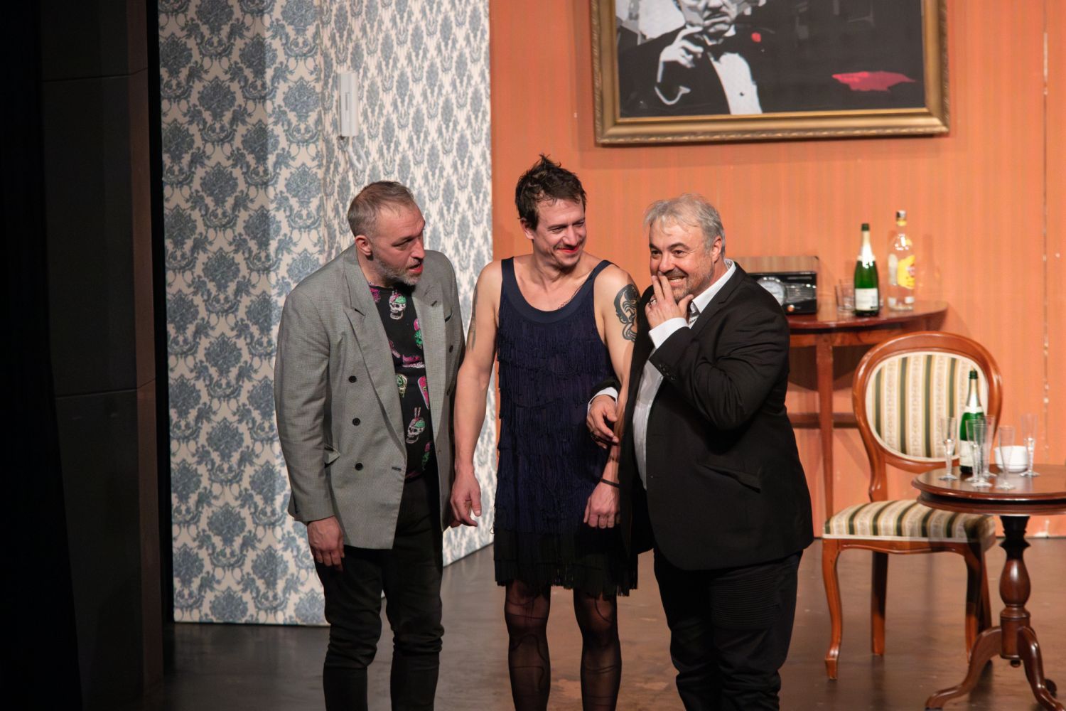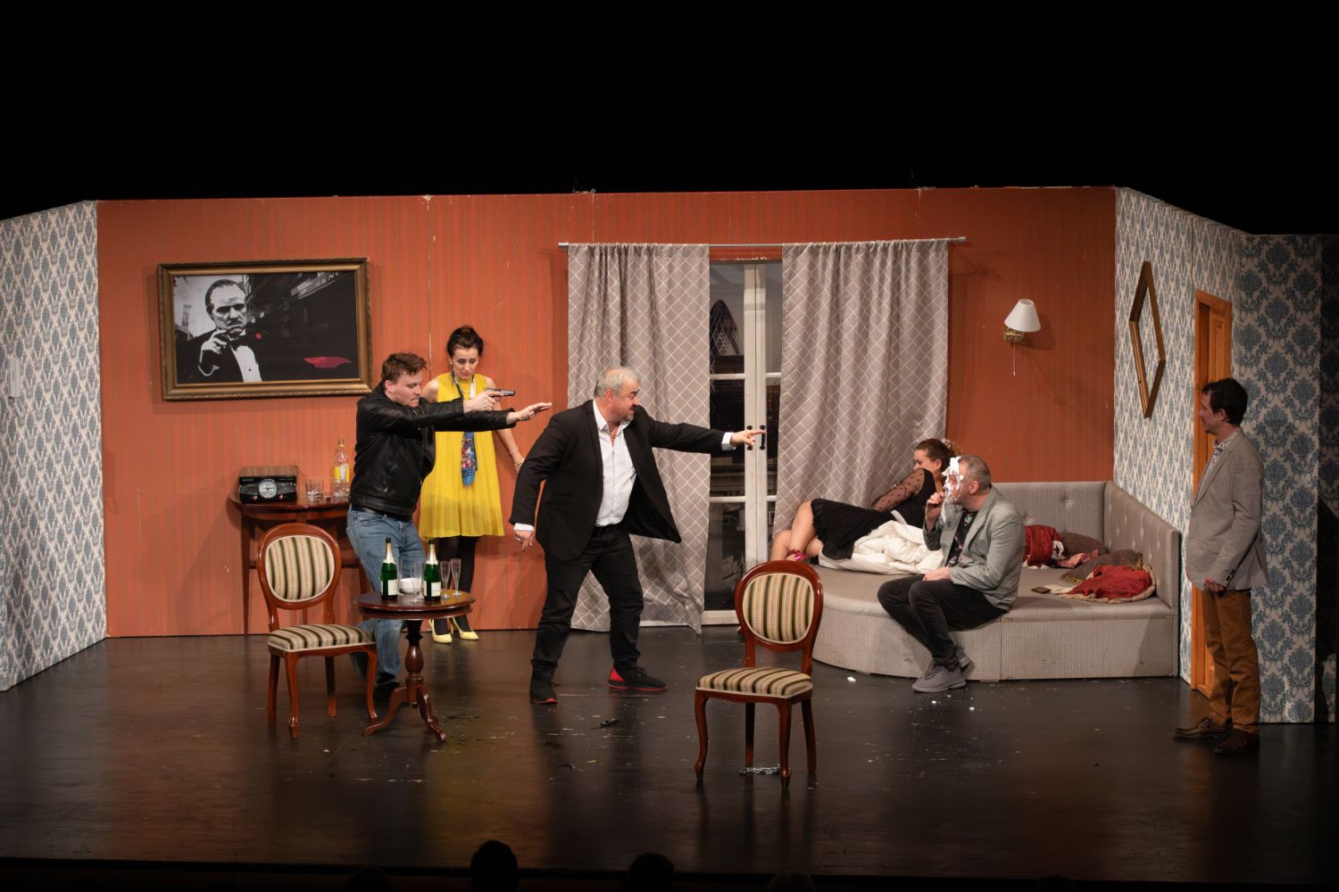 Ukradené peníze z tržby, gambling, či vztahové intriky, to a mnohem více na pódiu předvedli Martin Zounar, Martin Kraus, Zdeněk „Denny" Ratajský, Robert Hájek, Markéta Procházková a Kateřina Pechová. Během představení si herci několikrát vyměnili role, Garry byl chvíli Terry a potom snad dokonce možná i Larry. Kolotoč emocí nakonec ukončila policie a berňák.