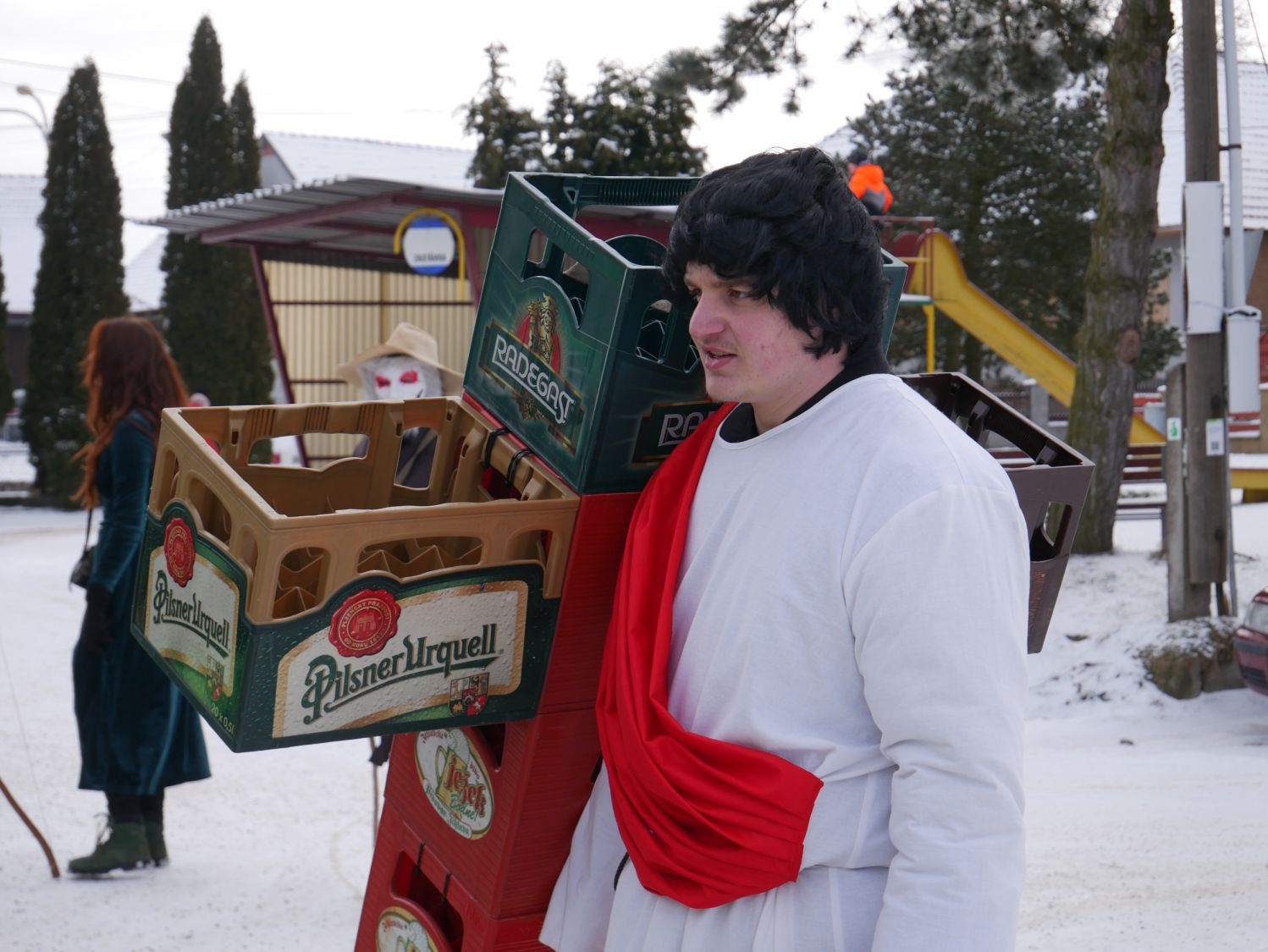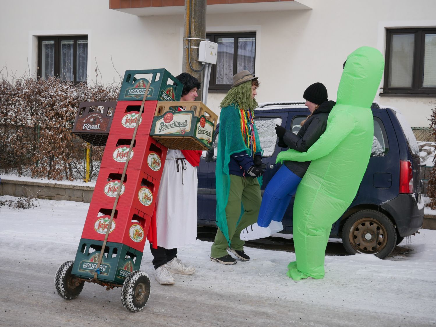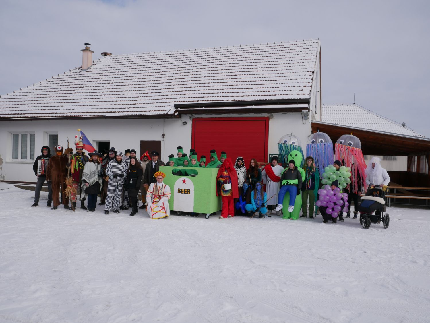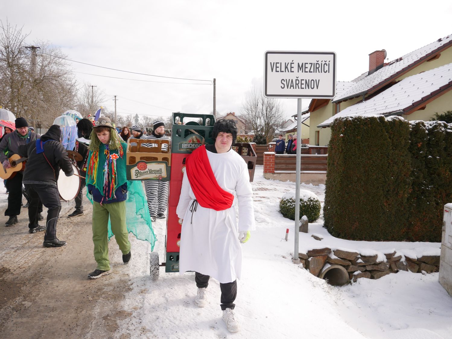 V čele průvodu samozřejmě nechyběli muzikanti, kteří na kytaru, harmoniku a buben zahráli prakticky cokoliv, a tak si na své přišli vyznavači všech hudebních stylů. Zkušeně jim přizvukovala dvojice mexických hudebníků. Za nimi jela s lehkým cinkáním basa piv neurčité značky a chuti. V rytmu hudby se zručně vlnily sličné medúzy, které doprovázel nesmělý vodník. Modré postavy nebyli Šmoulové, ale Avatarky. Nemohla chybět Marfuška, slepice, mimozemšťan nesoucí svou oběť, balónkoví lidé, blonďatá čertice či kriminálníci v doprovodu sličné policistky. Značnou pozor budil i muž převtělený v jakousi alegorii naší doby, na jeho kostýmu tak nechyběl pták snad čáp či husa, plechovka piva a bobr. Duchovní ráz pak celému průvodu dodal Kristus vlekoucí svůj kříž.