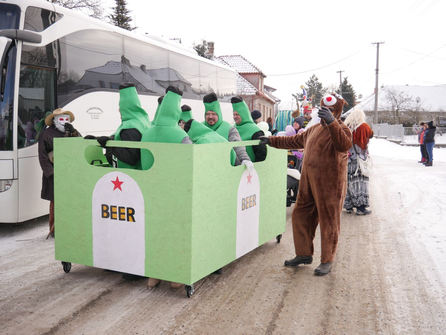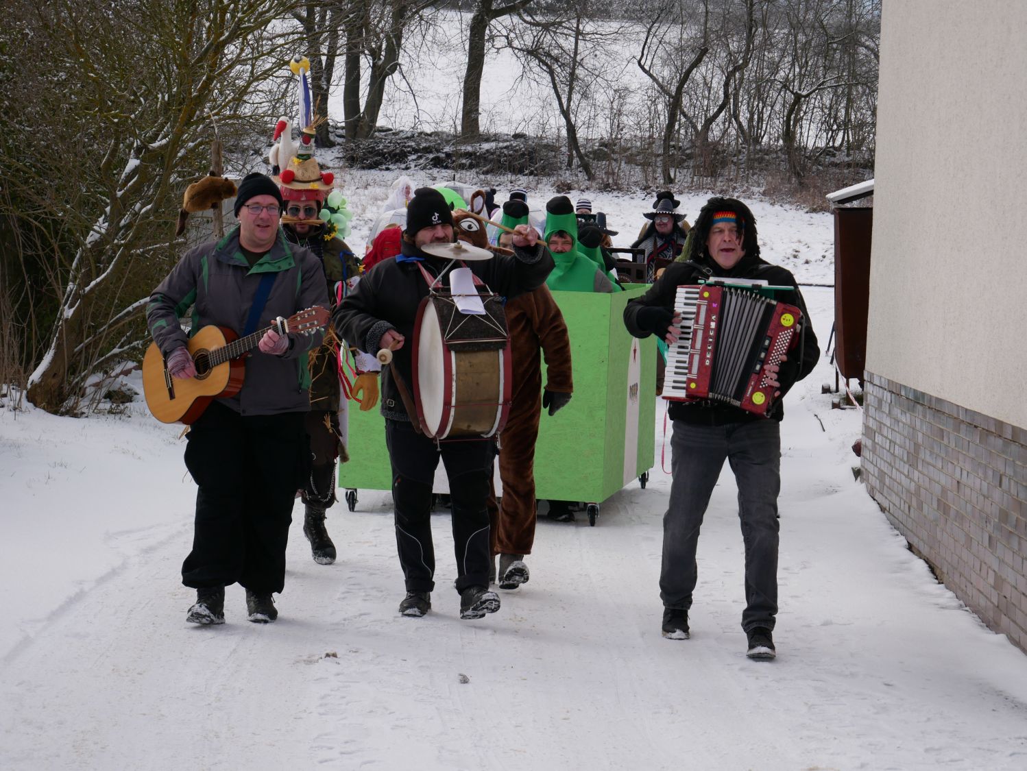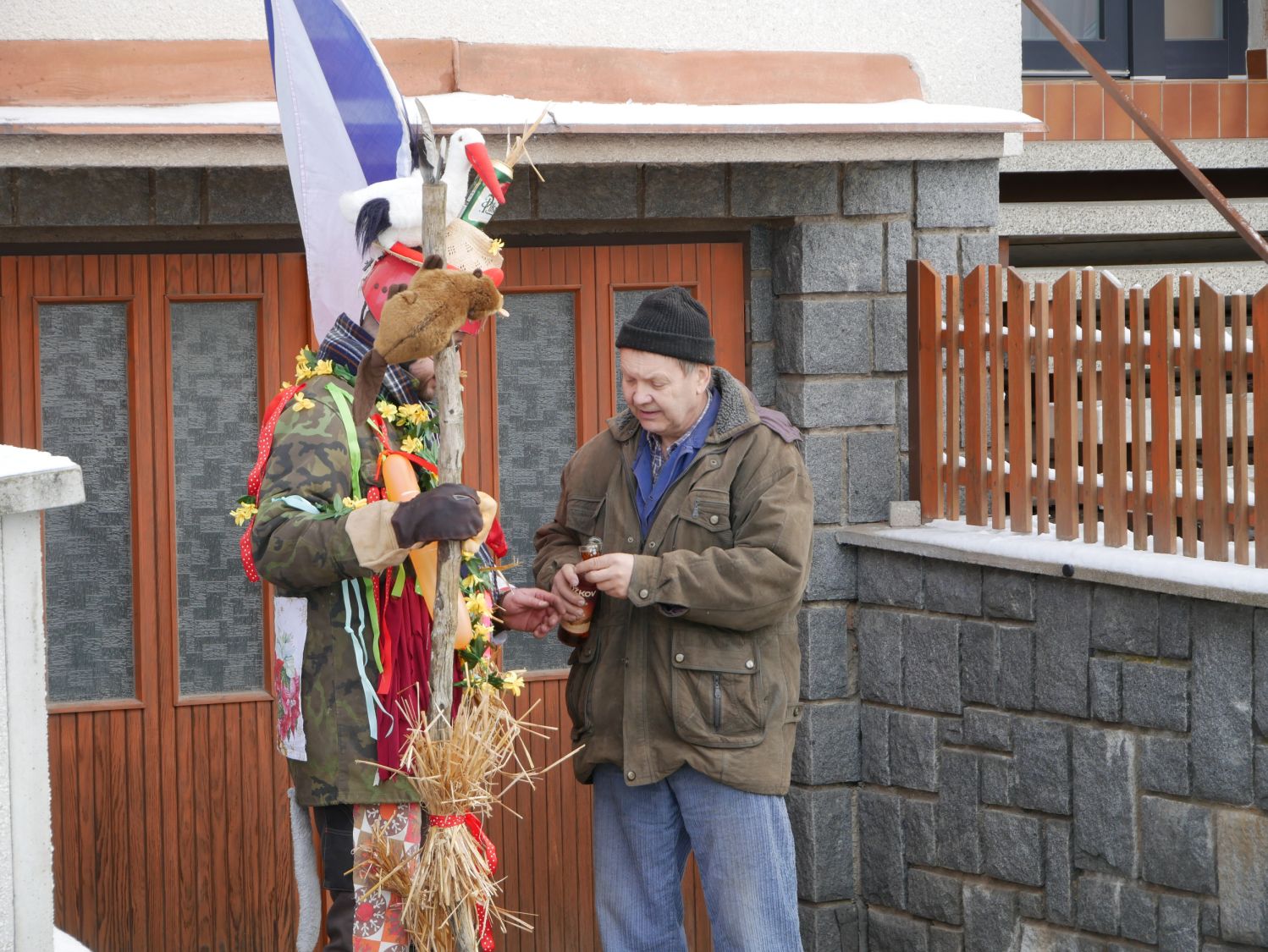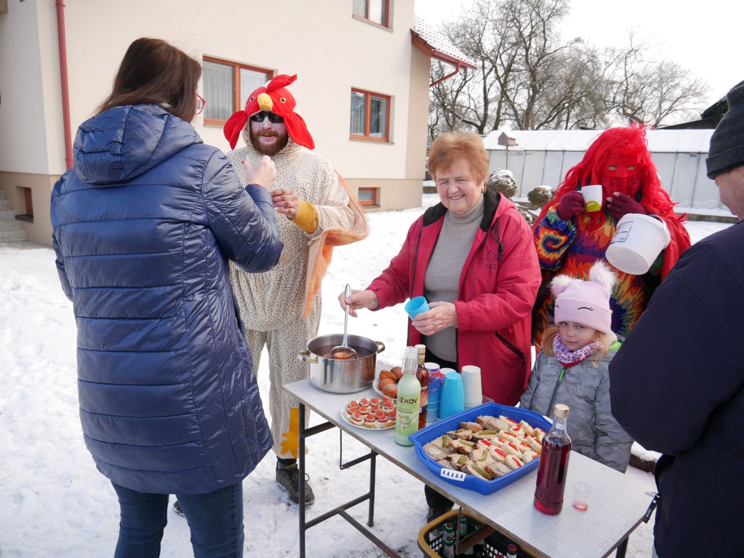 Průvod šel dům od domu a postupně se k němu přidávali další a další lidé v maskách i bez masek. V každém domě byly tyto roztodivné postavy vítány ne chlebem a solí, ale různými pochutinami v tuhém i tekutém stavu.