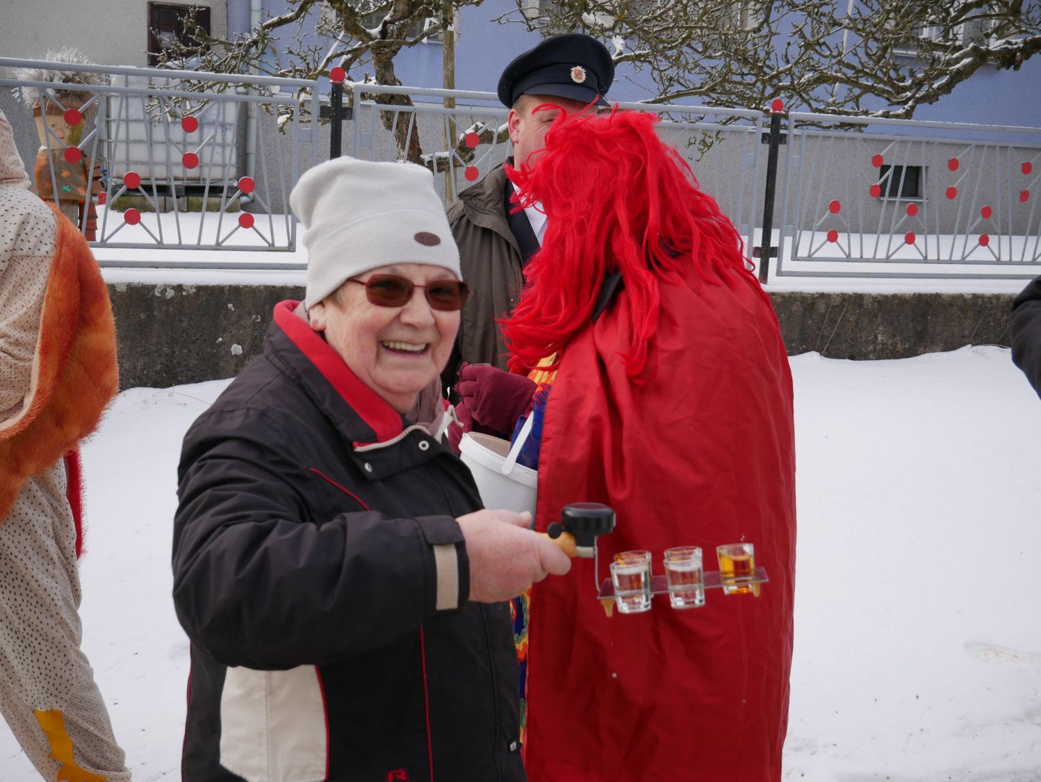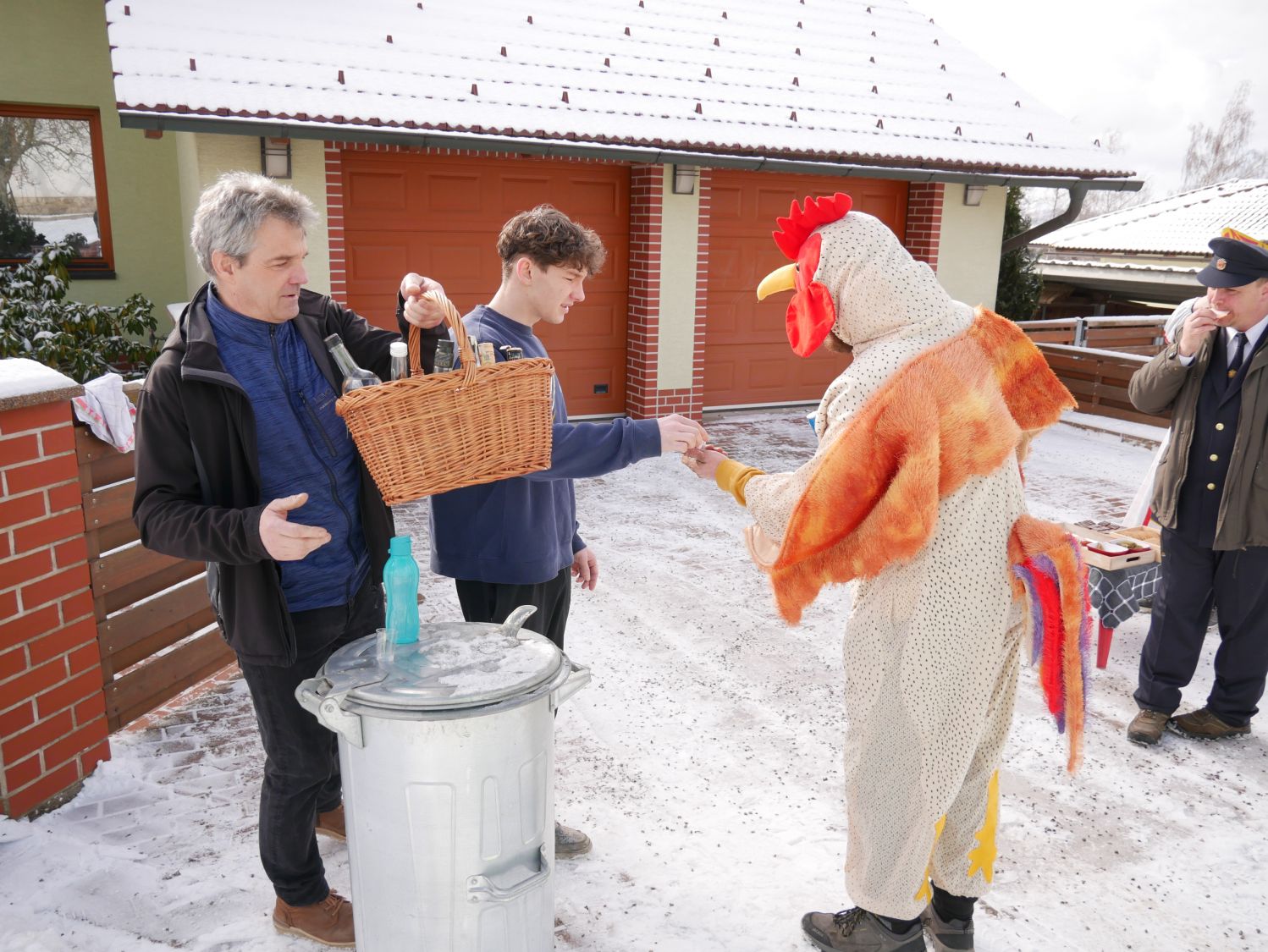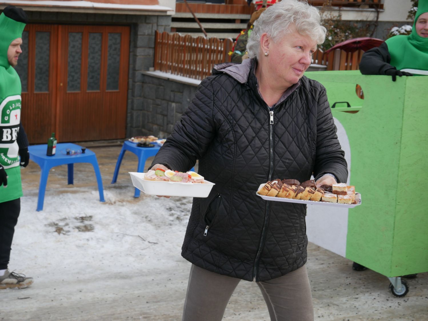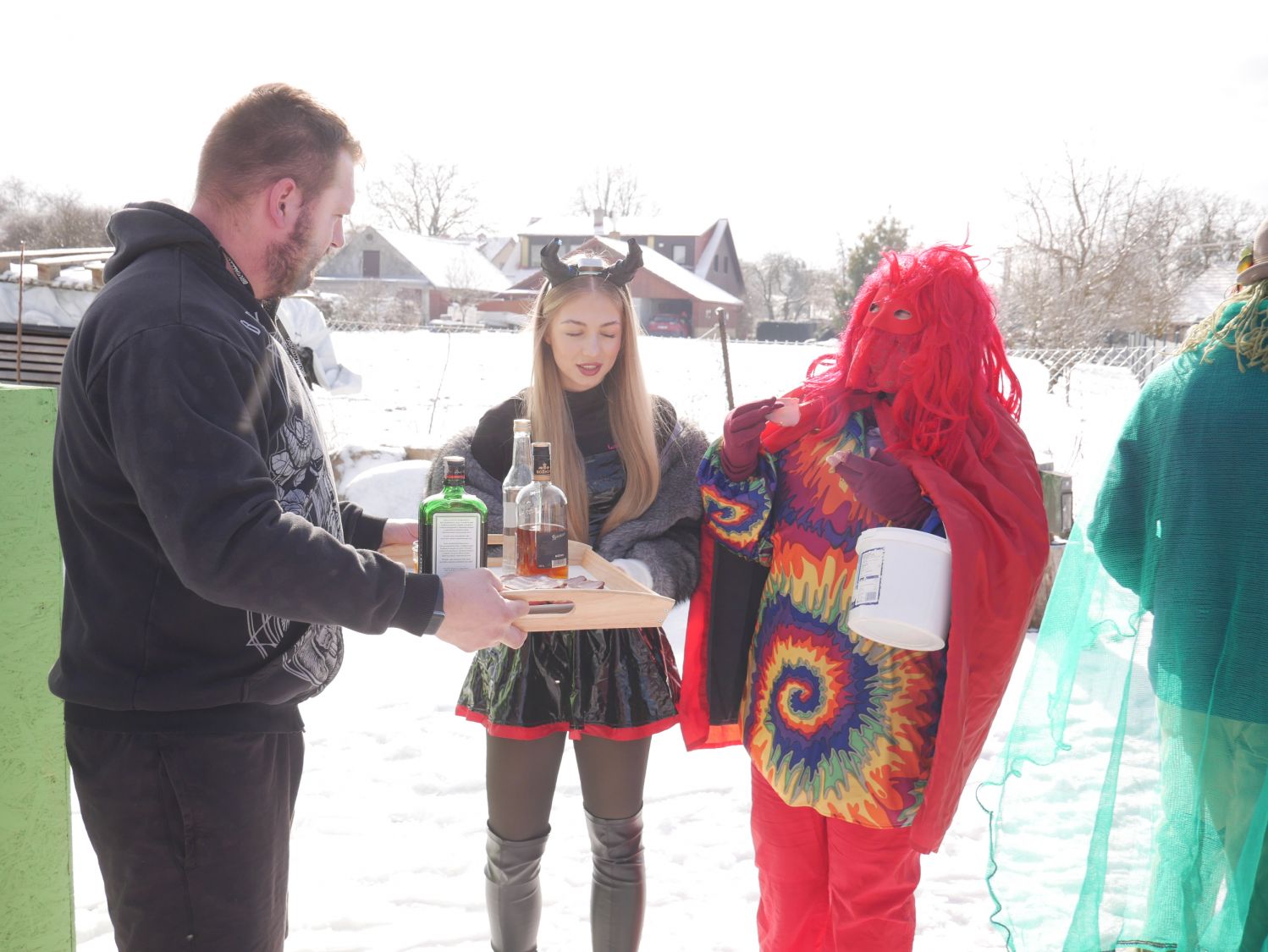 Průvod šel dům od domu a postupně se k němu přidávali další a další lidé v maskách i bez masek. V každém domě byly tyto roztodivné postavy vítány ne chlebem a solí, ale různými pochutinami v tuhém i tekutém stavu.