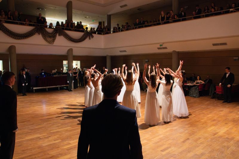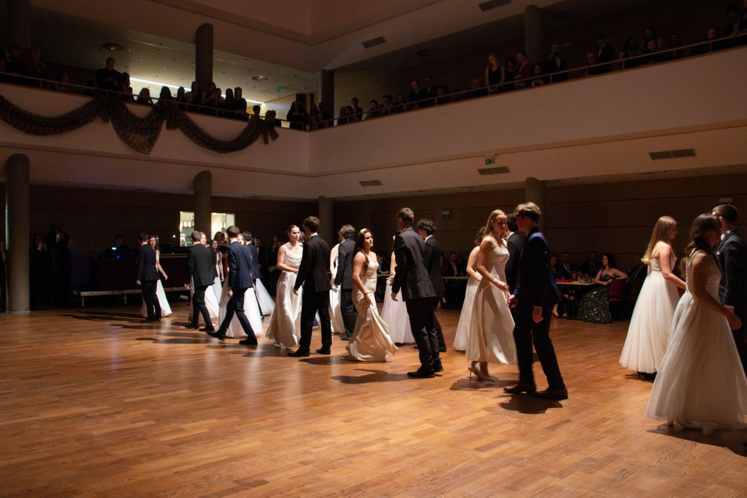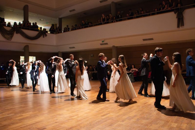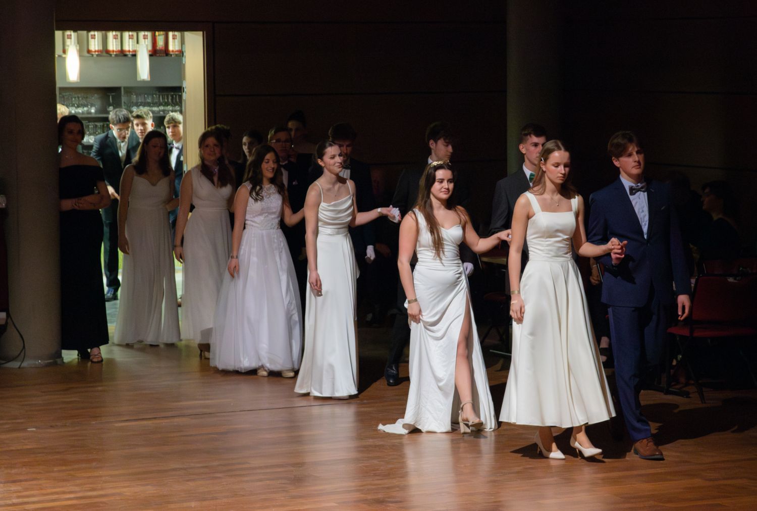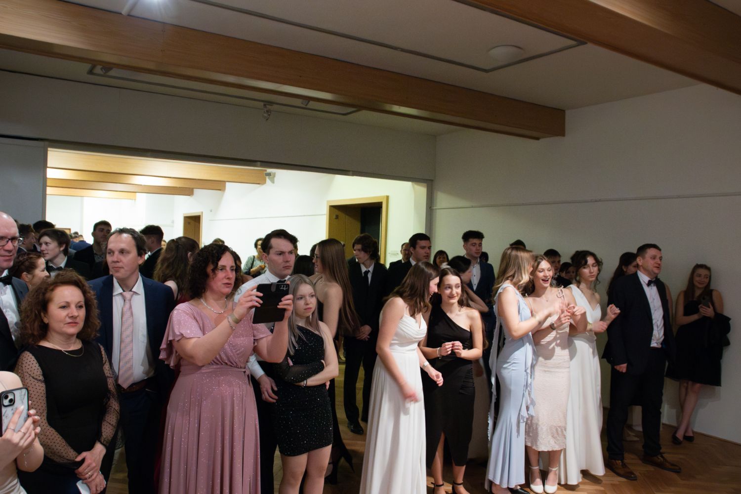 Úvodních slov se ujala ředitelka Ilona Pokorná společně s Petrem Špačkem, který vystoupil za sdružení rodičů. Ředitelka všem poděkovala za účast a popřála jim krásný večer plný tance a hudby. Následovala polonéza, které se účastnili žáci ze všech čtyř ročníků vyššího gymnázia, zhlédnout podruhé ji lidé mohli kolem 23. hodiny.