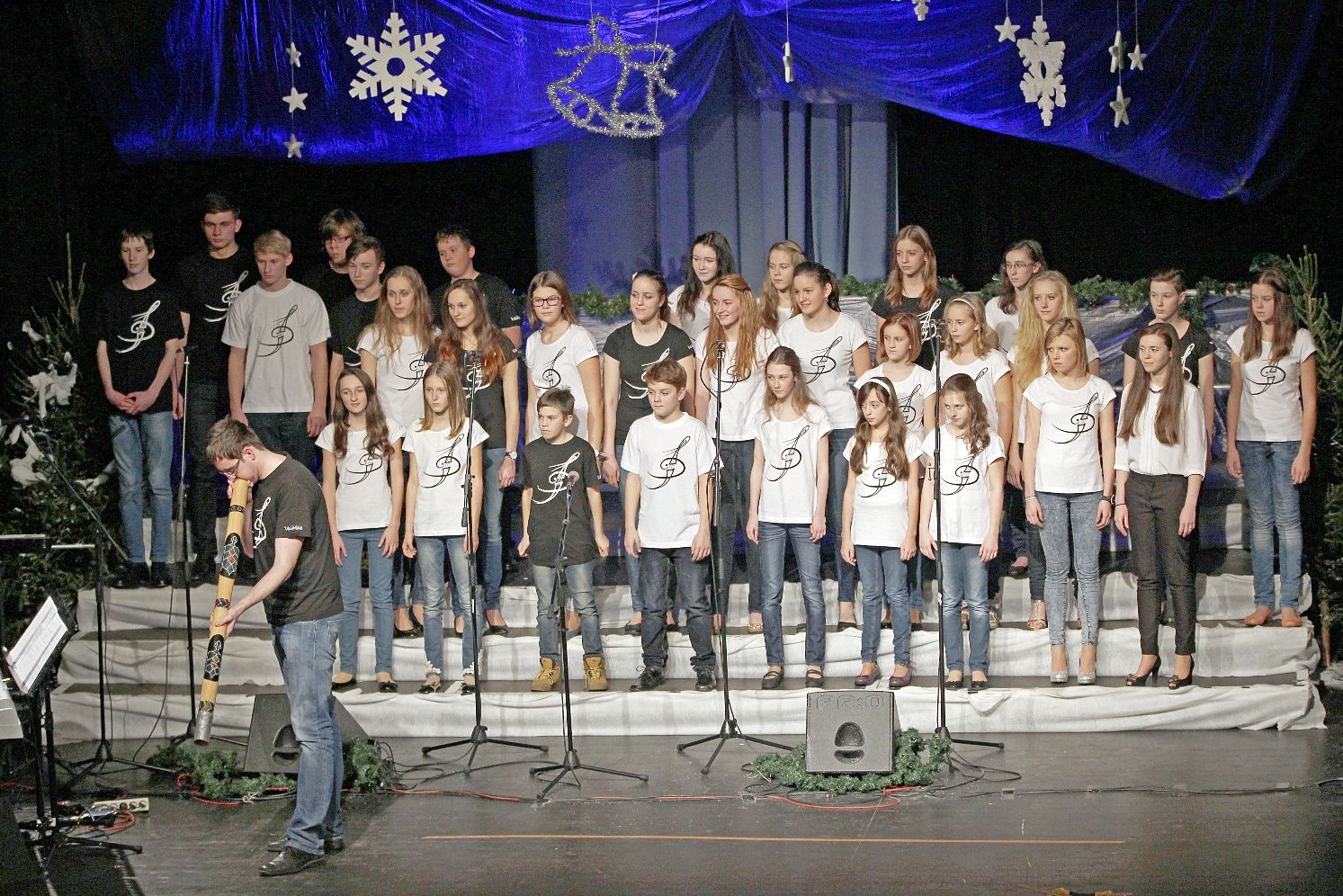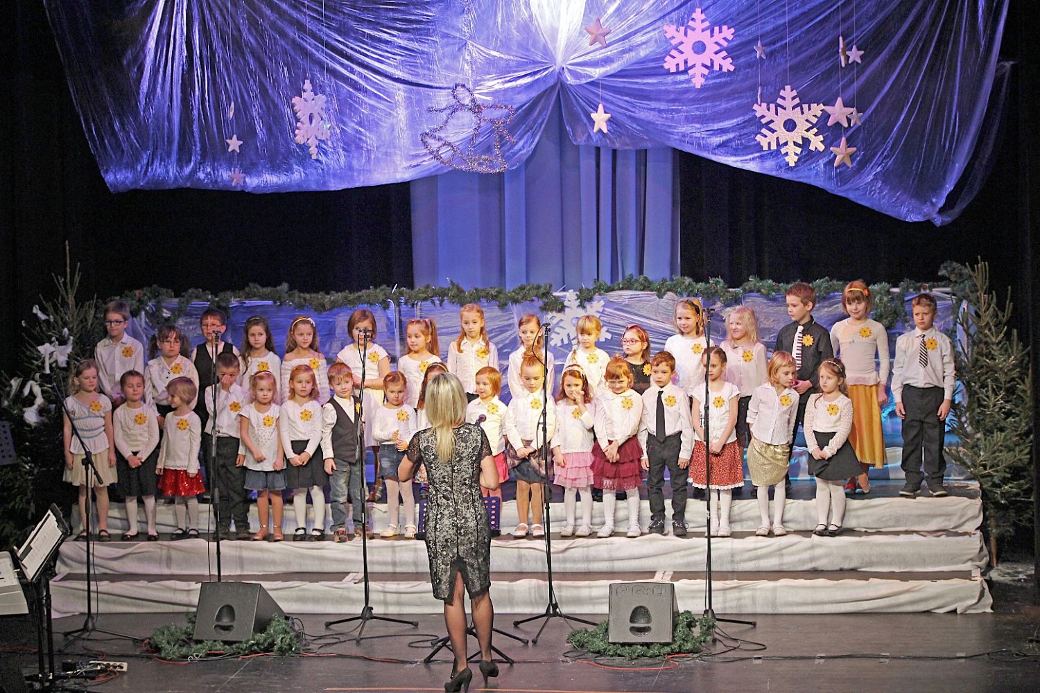 Na letošních vánočních koncertech se podílí na 230 účinkujících, především dětí z velkomeziříčských základních škol. V první polovině zpívají sbory Sluníčko, Slunko a Harmonie pod vedením Věry Havlišové, Barbory Rösslerové, Andrey Svobodové a Olgy Ubrové. Mají na programu něco z vánoční klasiky, ale i moderní písně, třeba od kapely Kryštof Srdcebeat, či báseň ve znakové řeči.