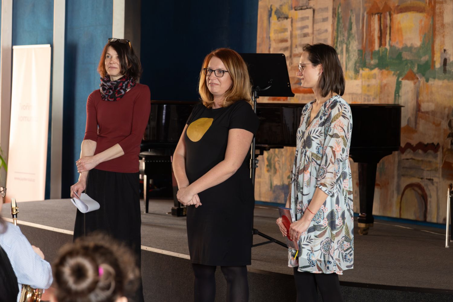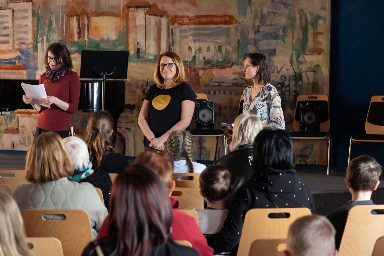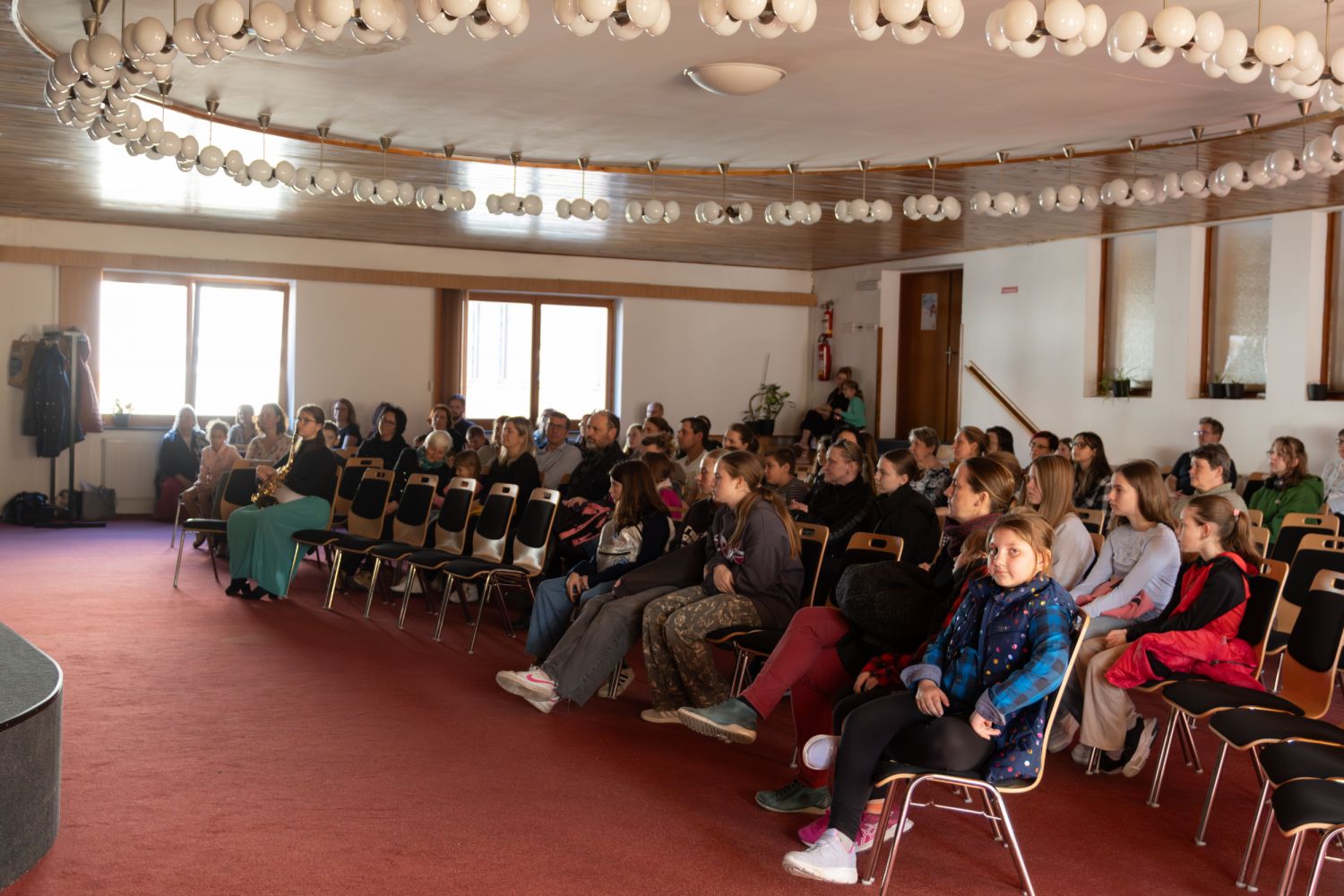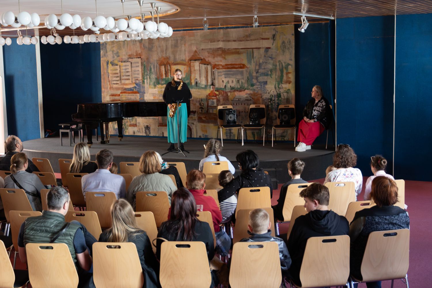 Začátek akce připadl na 16. hodinu, kdy se všichni přítomní přesunuli do koncertního sálu na slavnostní zahájení. Na úvod zahrála jedna z žákyň Kláry Kostelníkové na saxofon a poté již zahájily výstavu učitelky výtvarného oboru Jana Štursová, Marie Kudláčková a Alice Trojanová. „Čas utíká jako voda, ale my mu utéct nedokážeme," zaznělo sálem z úst výše zmíněných učitelek. „Nikdy nevíme, kolik času nám zbývá, a proto bychom si měli užívat každou přítomnou chvilku," doplnily. Na závěr zazněly ještě dvě písně, opět na saxofon.