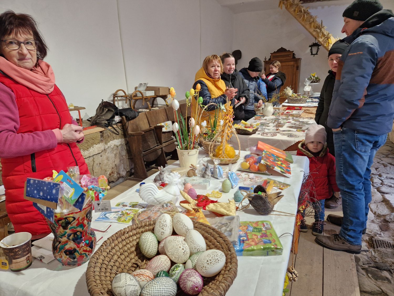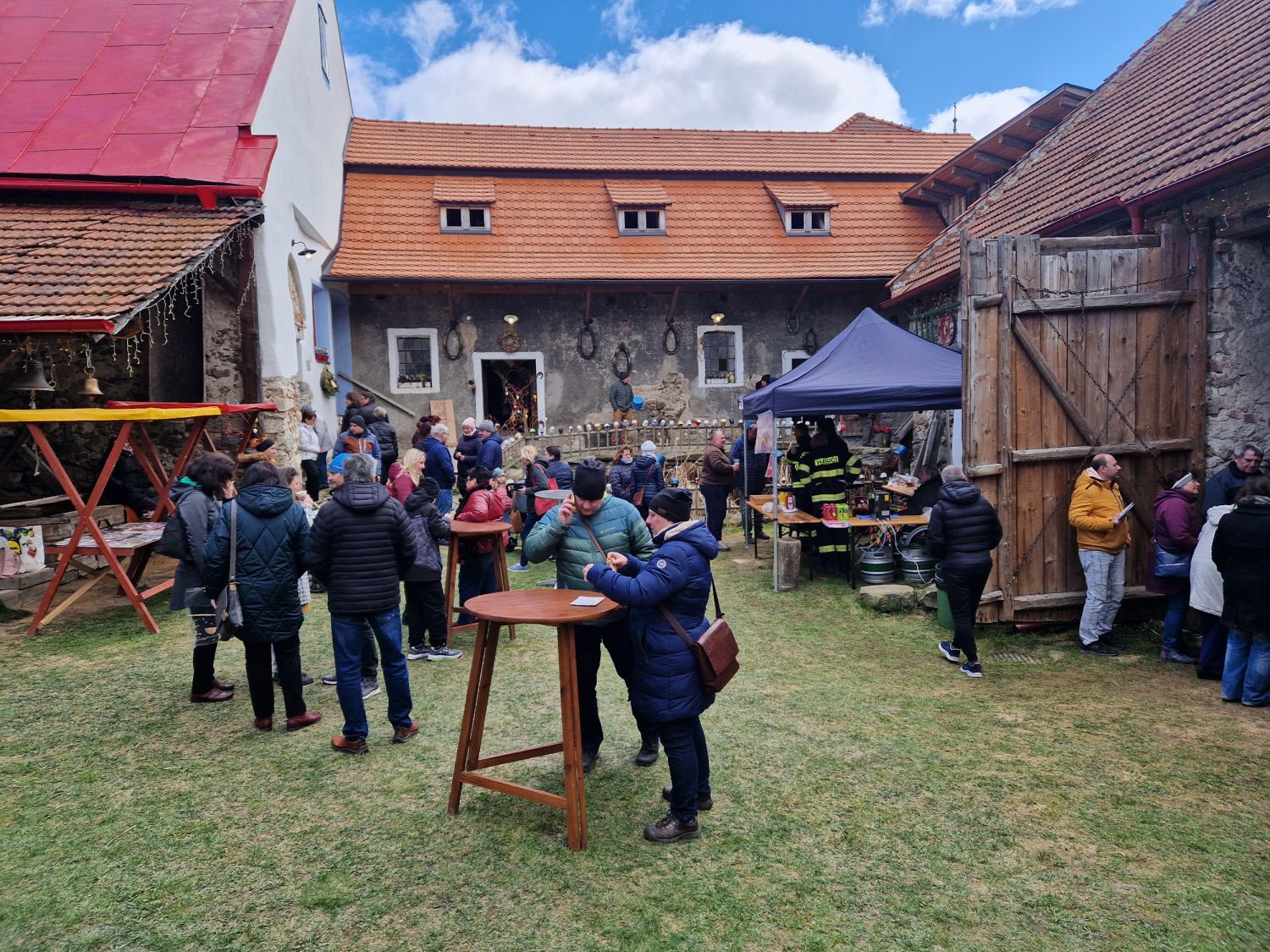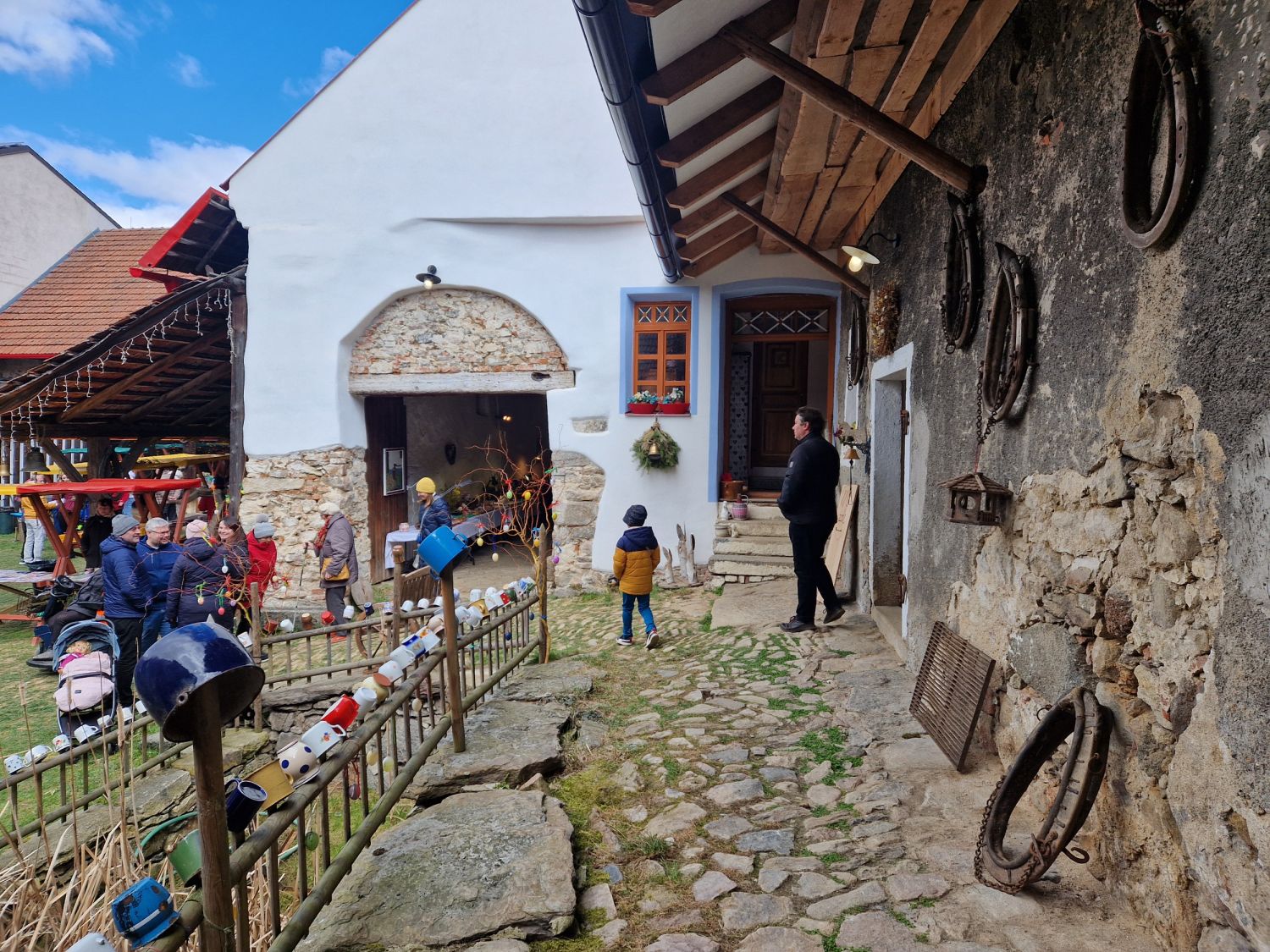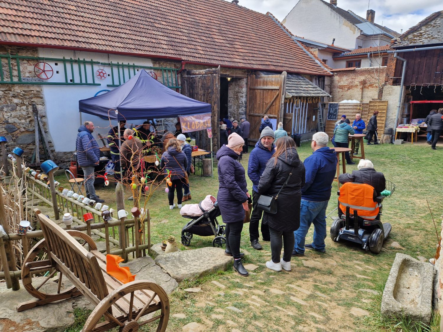 Davy lidí v neděli 6. dubna zaplnily dvůr, stodolu a všechny světnice velikonočně vyzdobeného statku. Nic jim nevadilo nevlídné počasí řezané ledovým větrem, dali si klobásu, svařák, horkou kávu, čaj a bylo jim fajn. Písničky Staropražských pardálů se nesly celým prostorem, návštěvníci prohlíželi velikonoční dekorace a výrobky, okukovali práci kováře, malování vajíček voskovou batikou nebo pletení košíků, mohli si koupit rozličně zdobené kraslice, dřevěné hračky, domácí vaječňák, makronky, perníčky… leckdo ani nevěděl, kam dřív. Ve všech prostorech statku se něco dělo a člověk si připadal, jako by se přenesl o sto let nazpět.