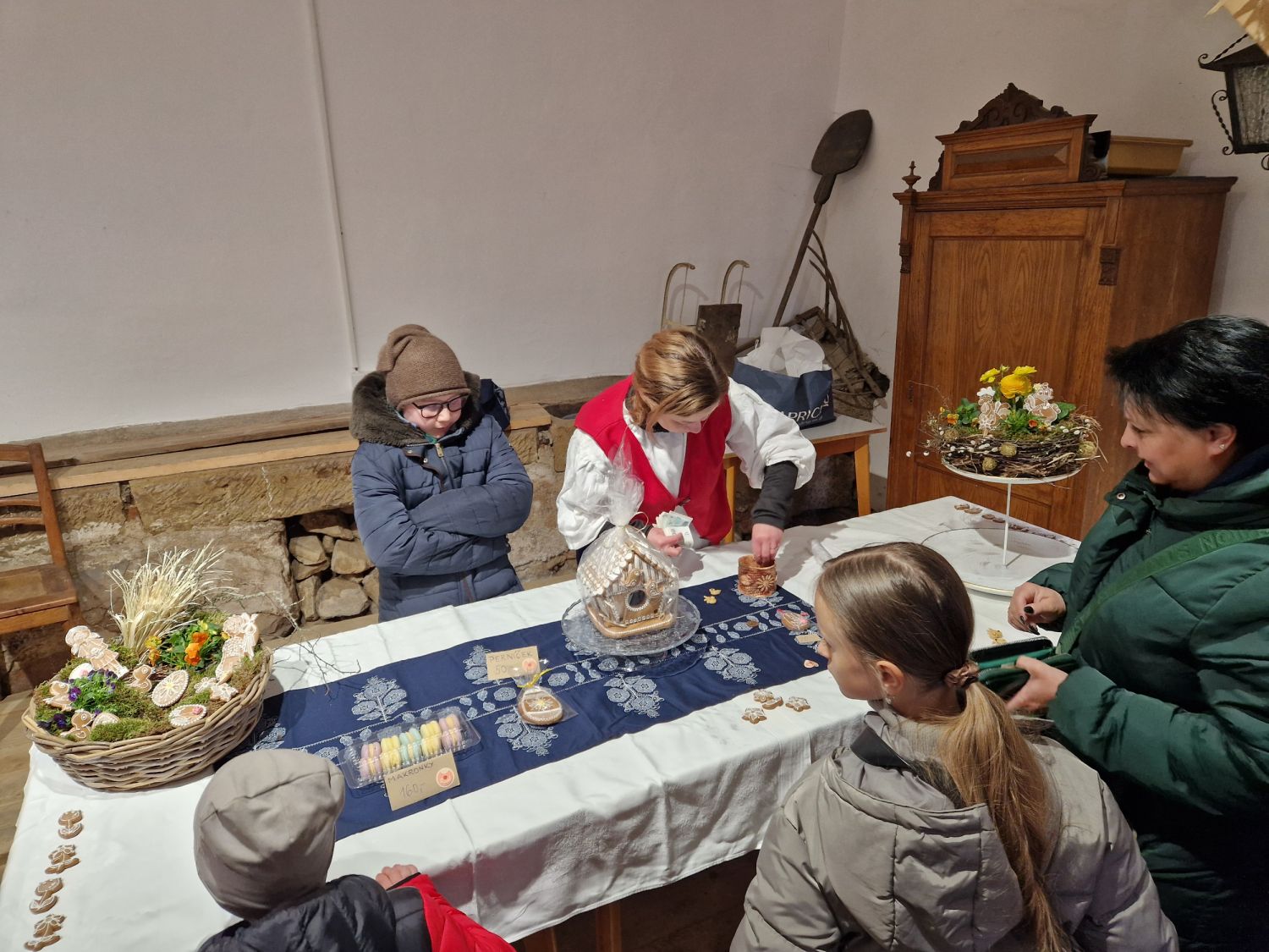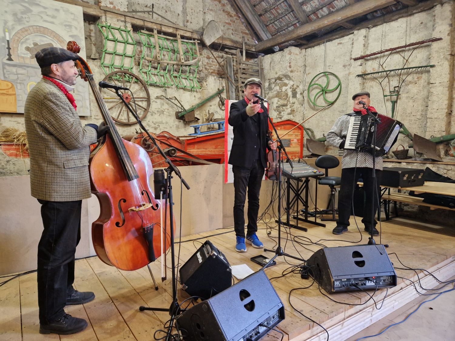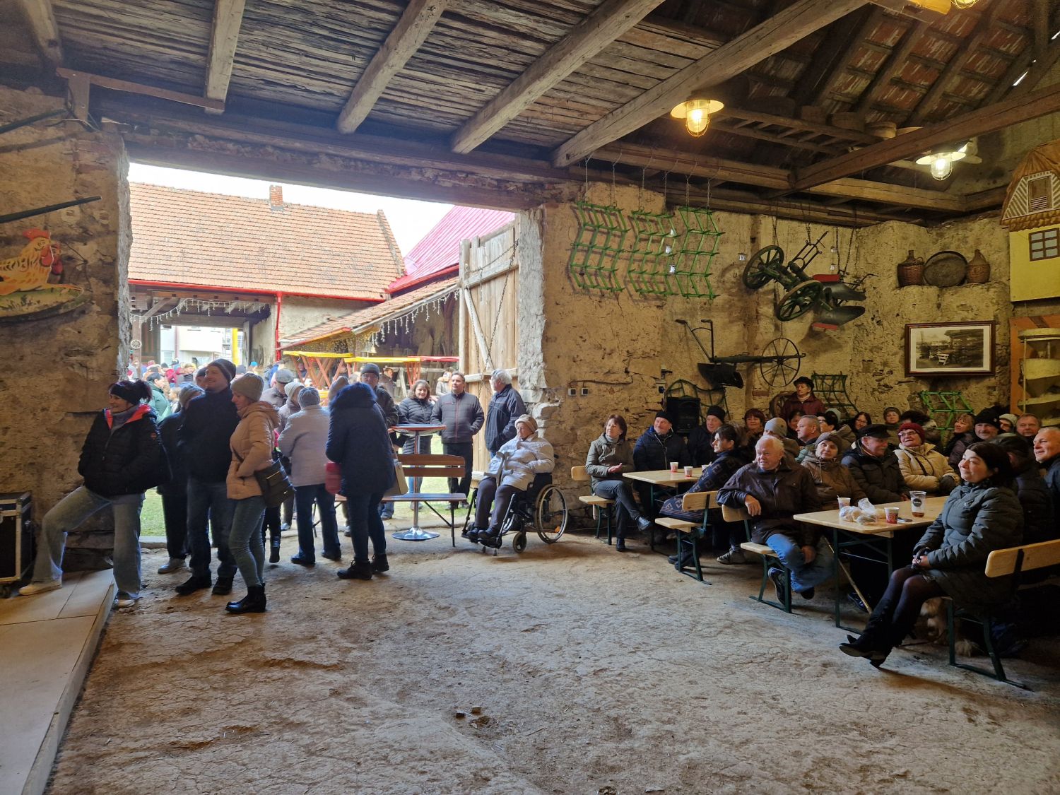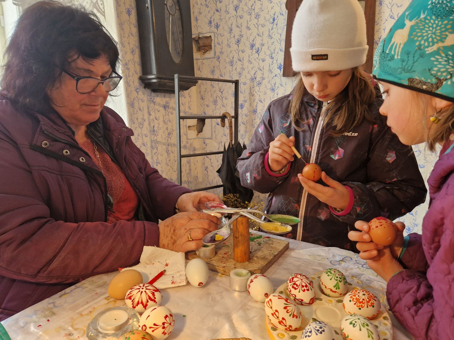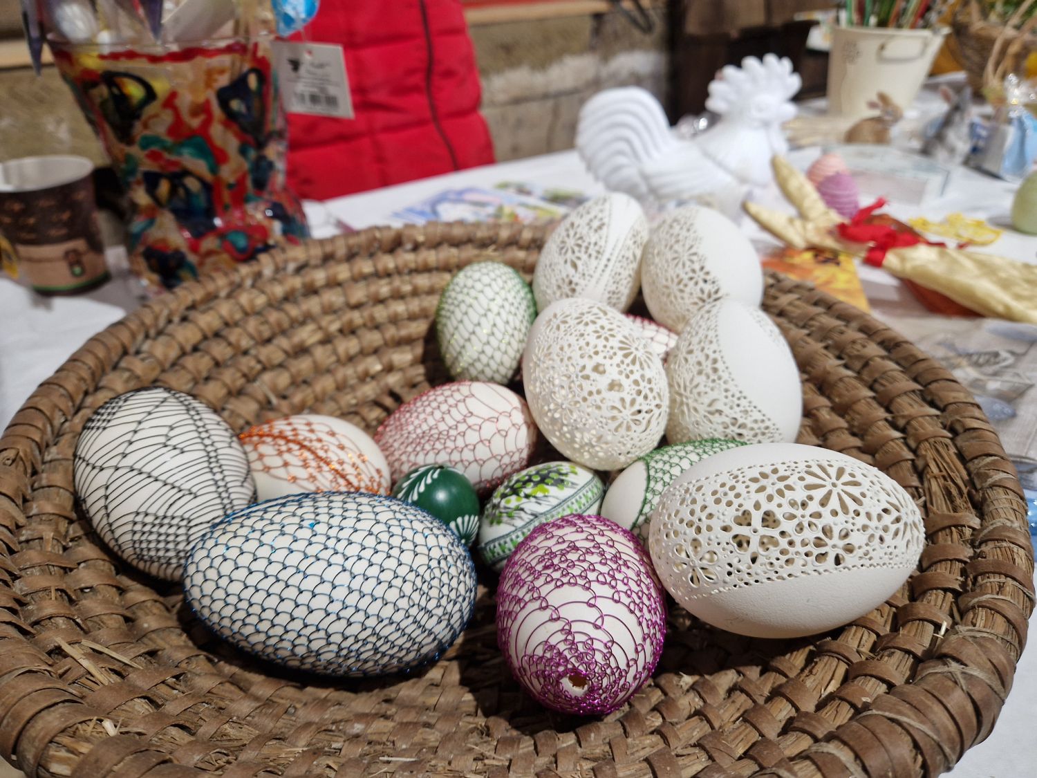 Davy lidí v neděli 6. dubna zaplnily dvůr, stodolu a všechny světnice velikonočně vyzdobeného statku. Nic jim nevadilo nevlídné počasí řezané ledovým větrem, dali si klobásu, svařák, horkou kávu, čaj a bylo jim fajn. Písničky Staropražských pardálů se nesly celým prostorem, návštěvníci prohlíželi velikonoční dekorace a výrobky, okukovali práci kováře, malování vajíček voskovou batikou nebo pletení košíků, mohli si koupit rozličně zdobené kraslice, dřevěné hračky, domácí vaječňák, makronky, perníčky… leckdo ani nevěděl, kam dřív. Ve všech prostorech statku se něco dělo a člověk si připadal, jako by se přenesl o sto let nazpět.