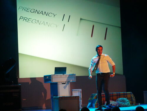 Během hry, která začíná jako fundovaná přednáška, se muži dozví spoustu rad, třeba o tom jak komunikovat s partnerkou krátce po seznámení, a třeba i to, že těhotenství je ideální způsob jak se vyhnout nechtěnému výletu do Indie.