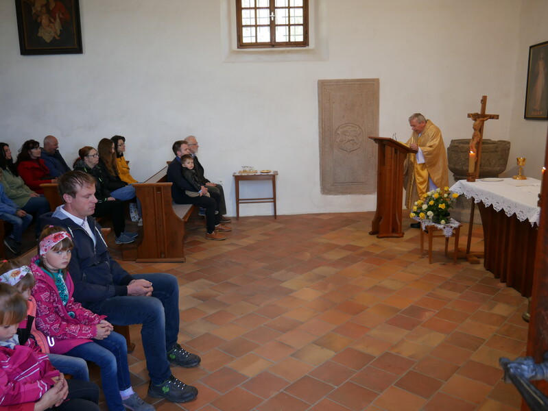 O oblíbenosti zdejší pouti svědčil zcela zaplněný kostel. Mši svatou sloužil P. Bohumil Poláček, výpomocný kněz velkomeziříčské farnosti.