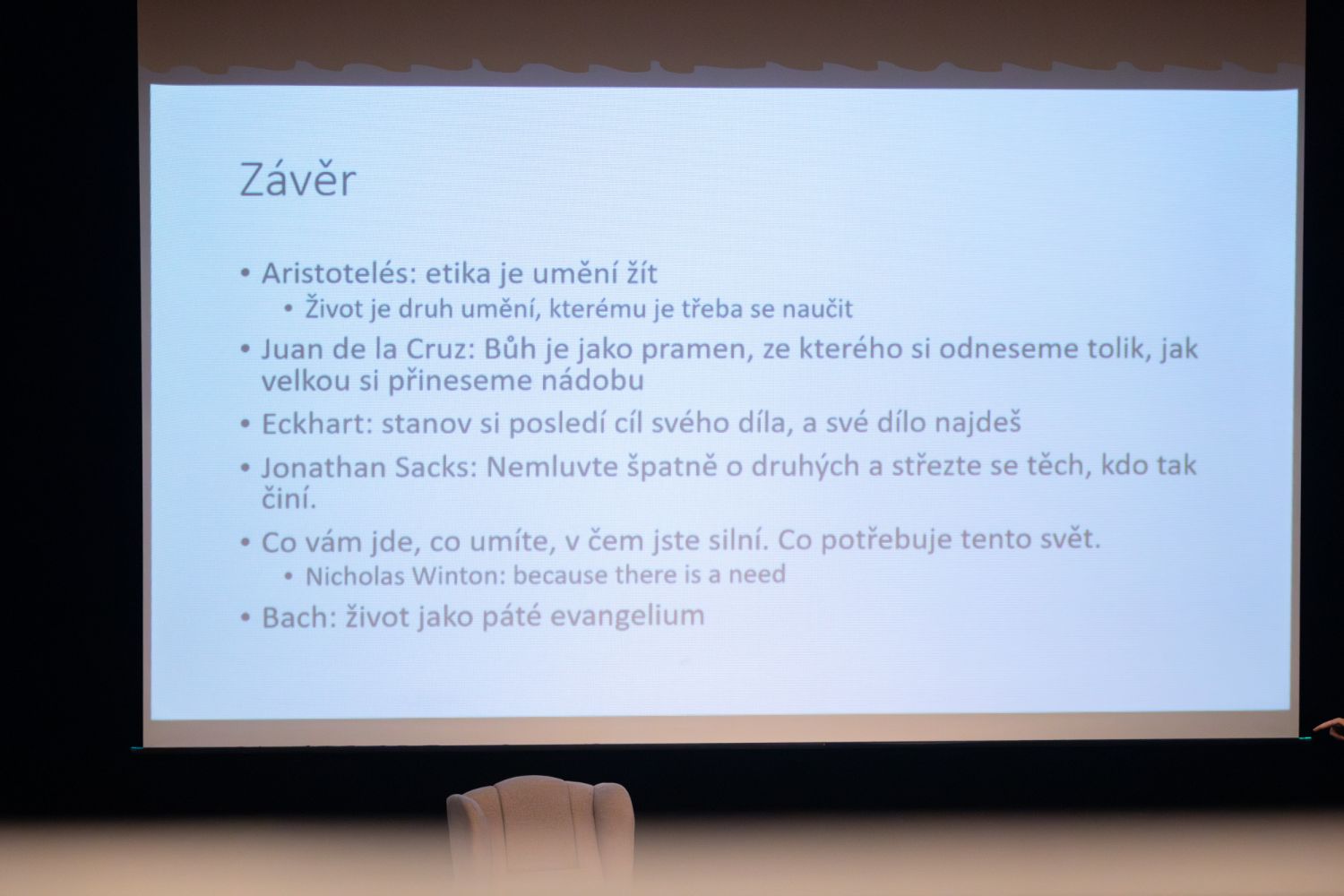Na samotný závěr se zmínil o siru Nicholasovi Wintonovi, ten za druhé světové války zachránil stovky židovských dětí (celkem 669), které odvezl do bezpečí do Anglie. „Byl to bankovní úředník. On pomáhat nemusel, jen prostě chtěl. Když se ho lidé ptali, proč to udělal a tolik riskoval, tak odpověděl: Because there is a need,“ vyprávěl Orko.