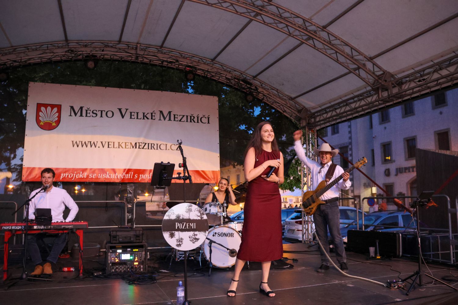 V páteční večer se náměstí ve Velkém Meziříčí zaplnilo posluchači, kteří si přišli užít pohodový letní večer s kapelou Pozemi. Zazněly covery známých hitů, nechyběla příjemná atmosféra, tanec ani letní nálada.